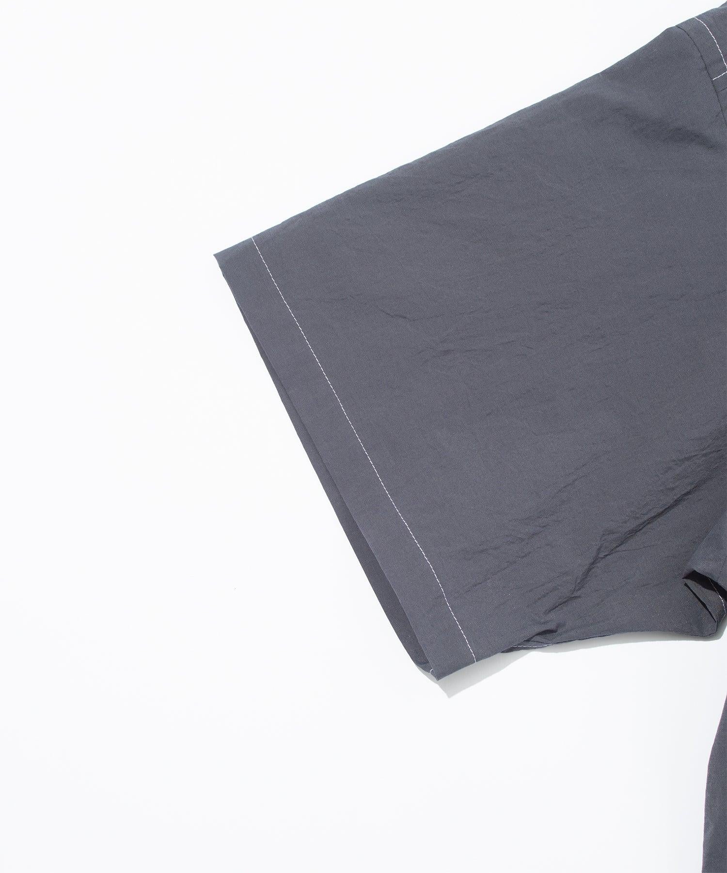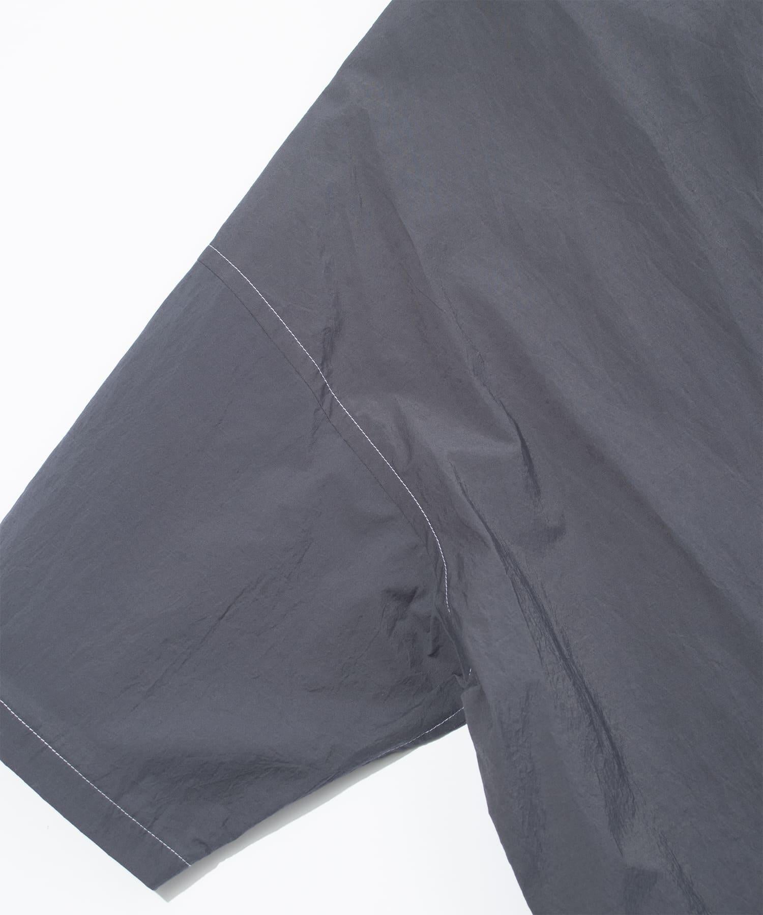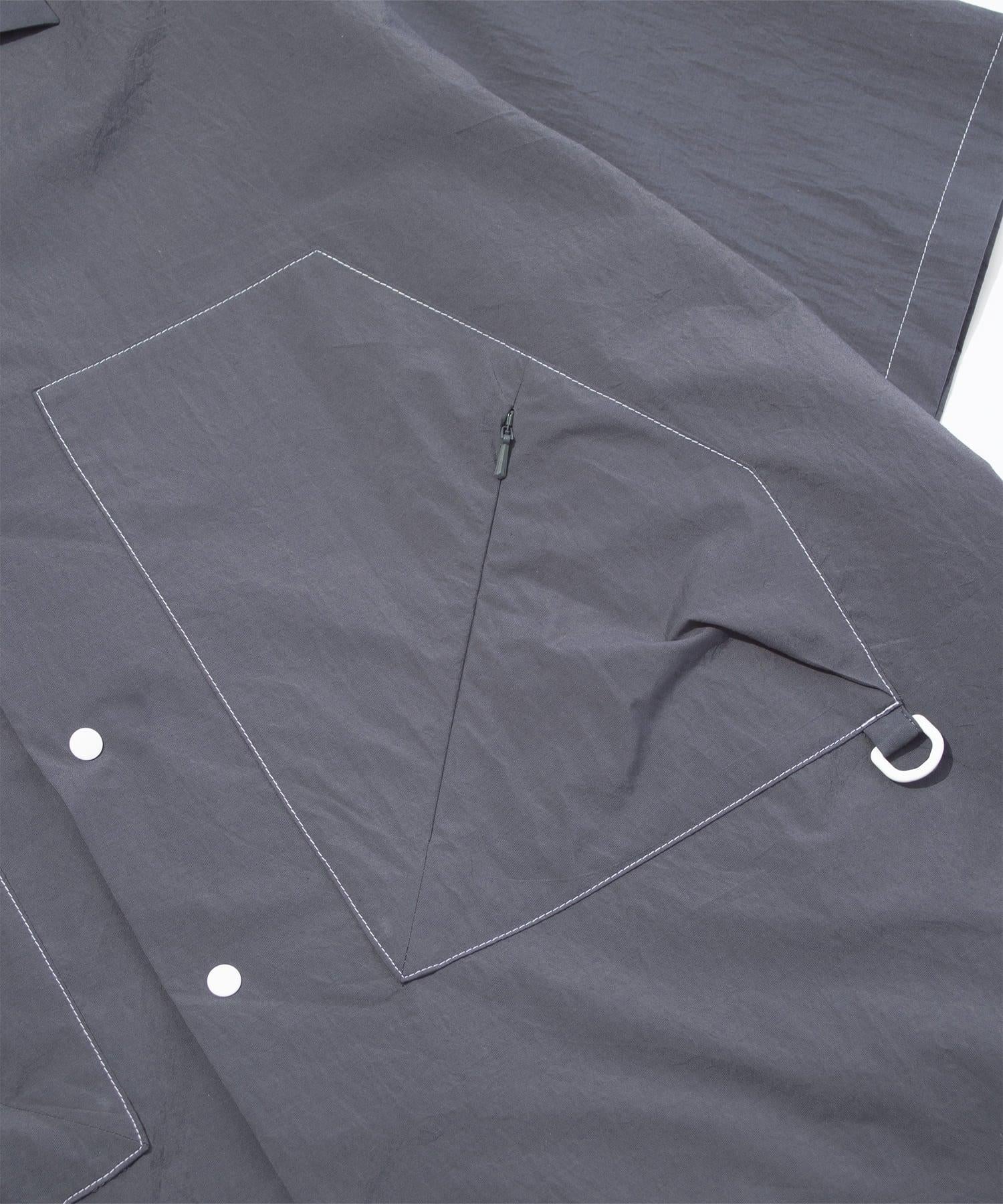 短袖襯衫採用輕質滌綸面料製成,透氣性強。開領剪裁、寬鬆廓形是其特點。