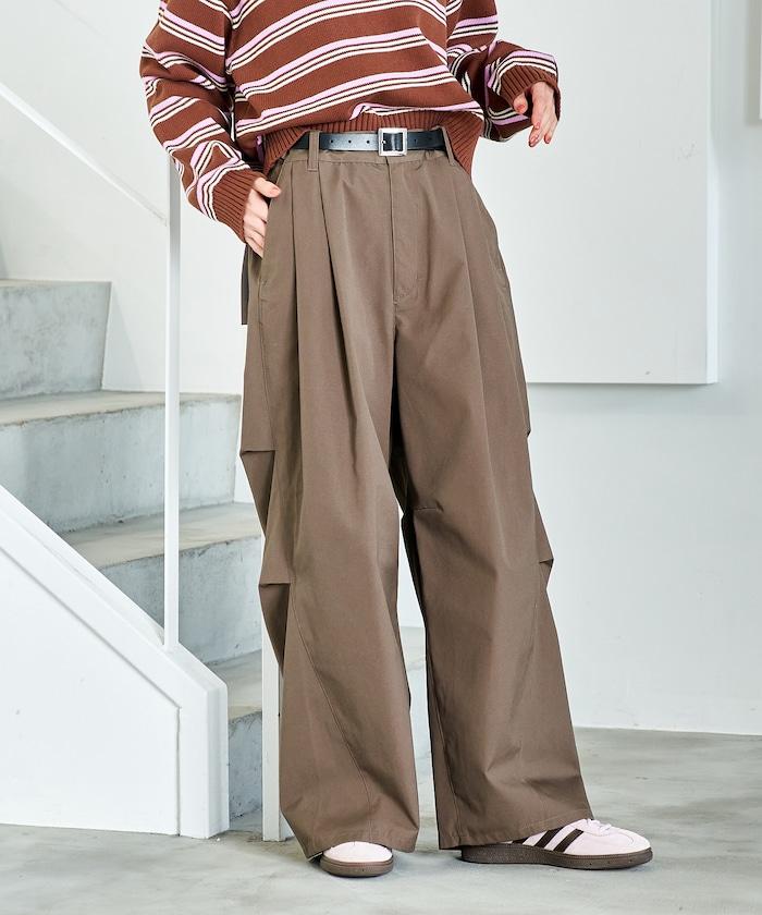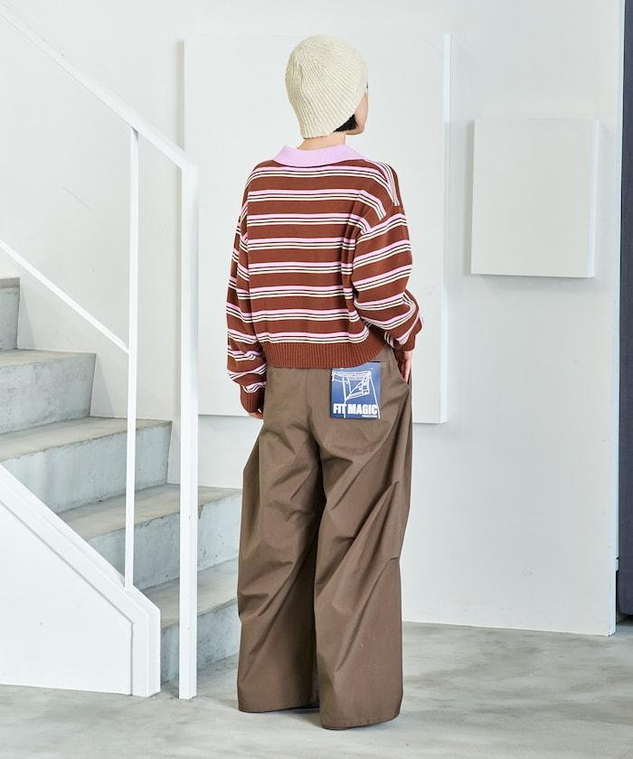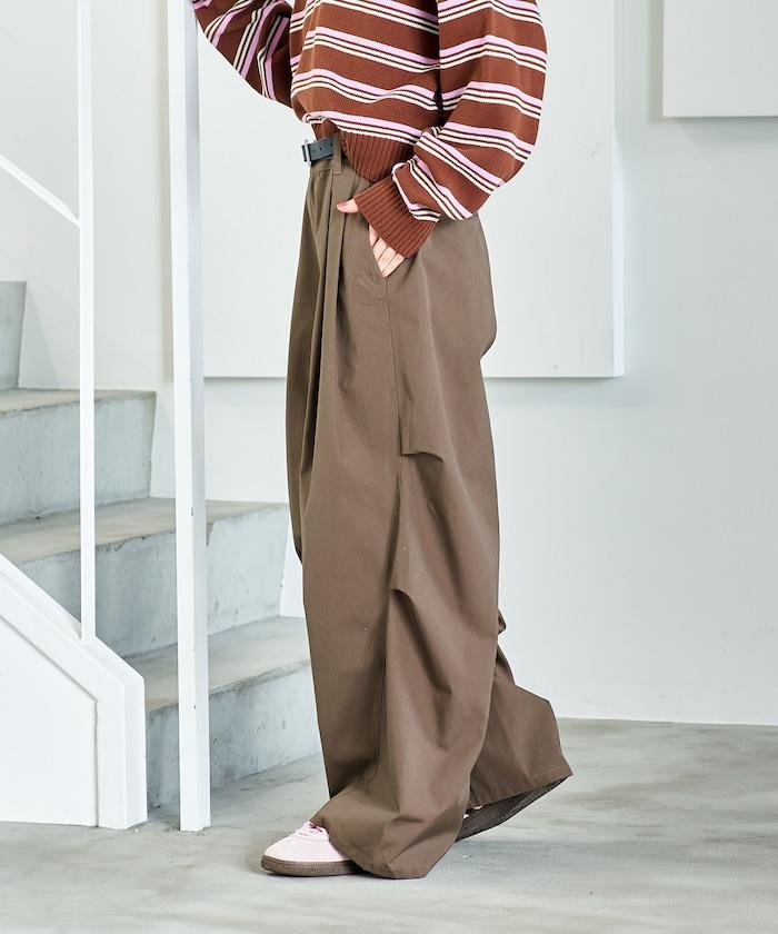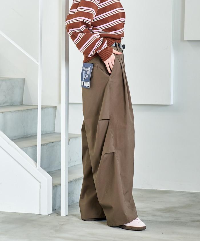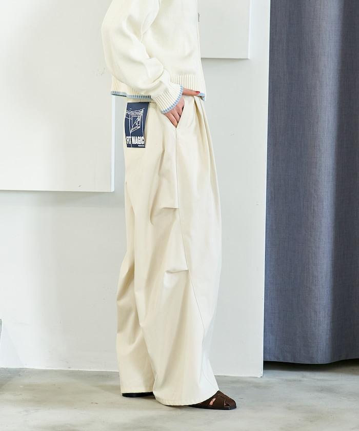 FIT MAGIC 防滑腰頭褶飾闊腿褲