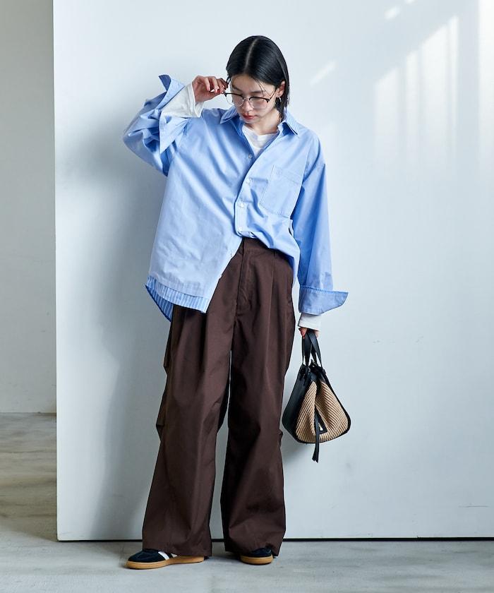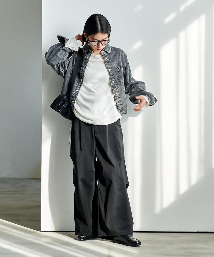 由於下身體積較大,可將上衣塞進下身,或選擇不太大的上衣,以達到良好的平衡。