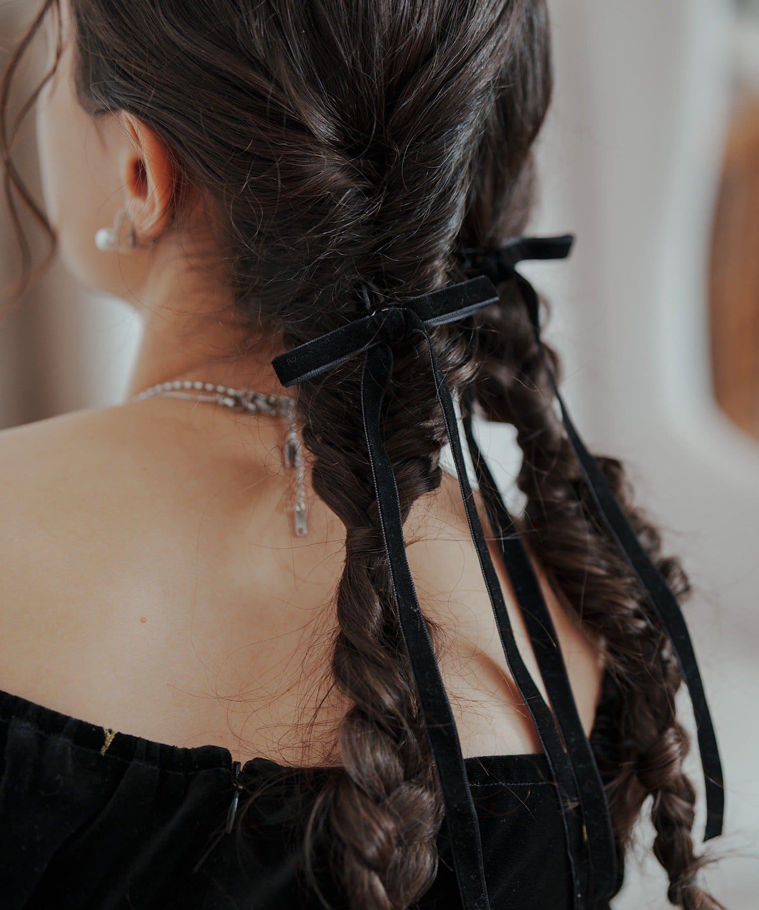 【/fiw.】天鵝絨蝴蝶結髮夾
