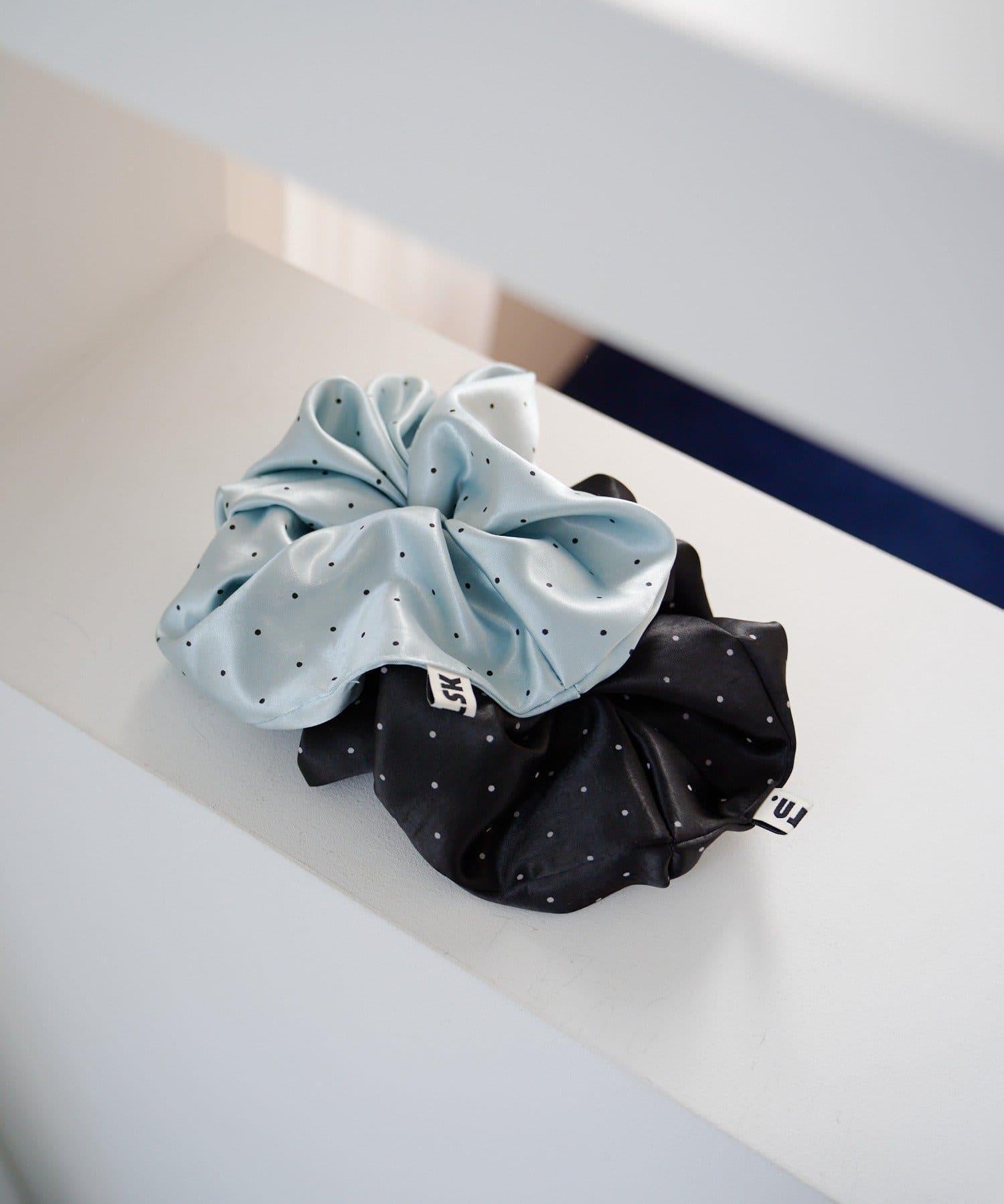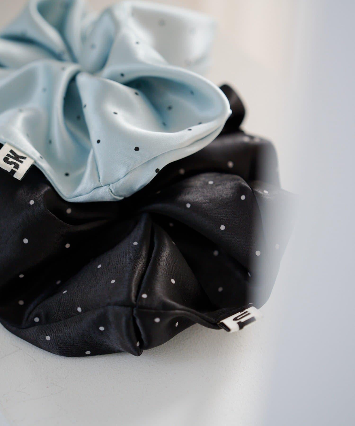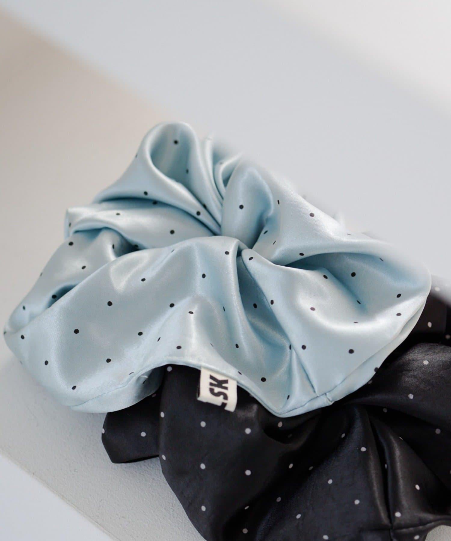 優雅的淺色緞面chou chou,帶有可愛的光澤和圓點。