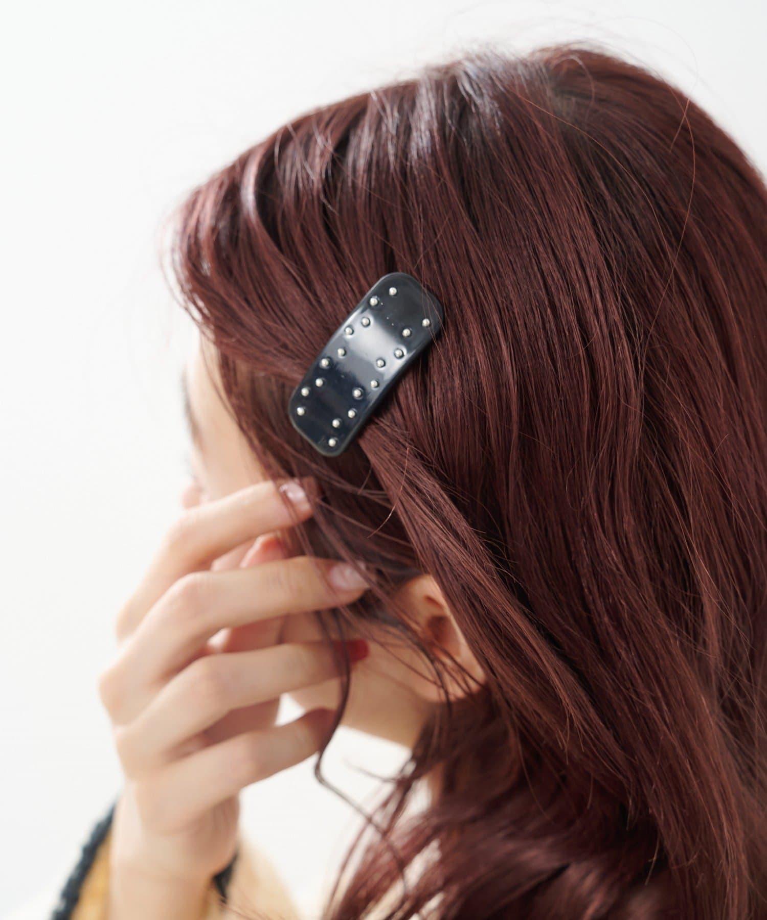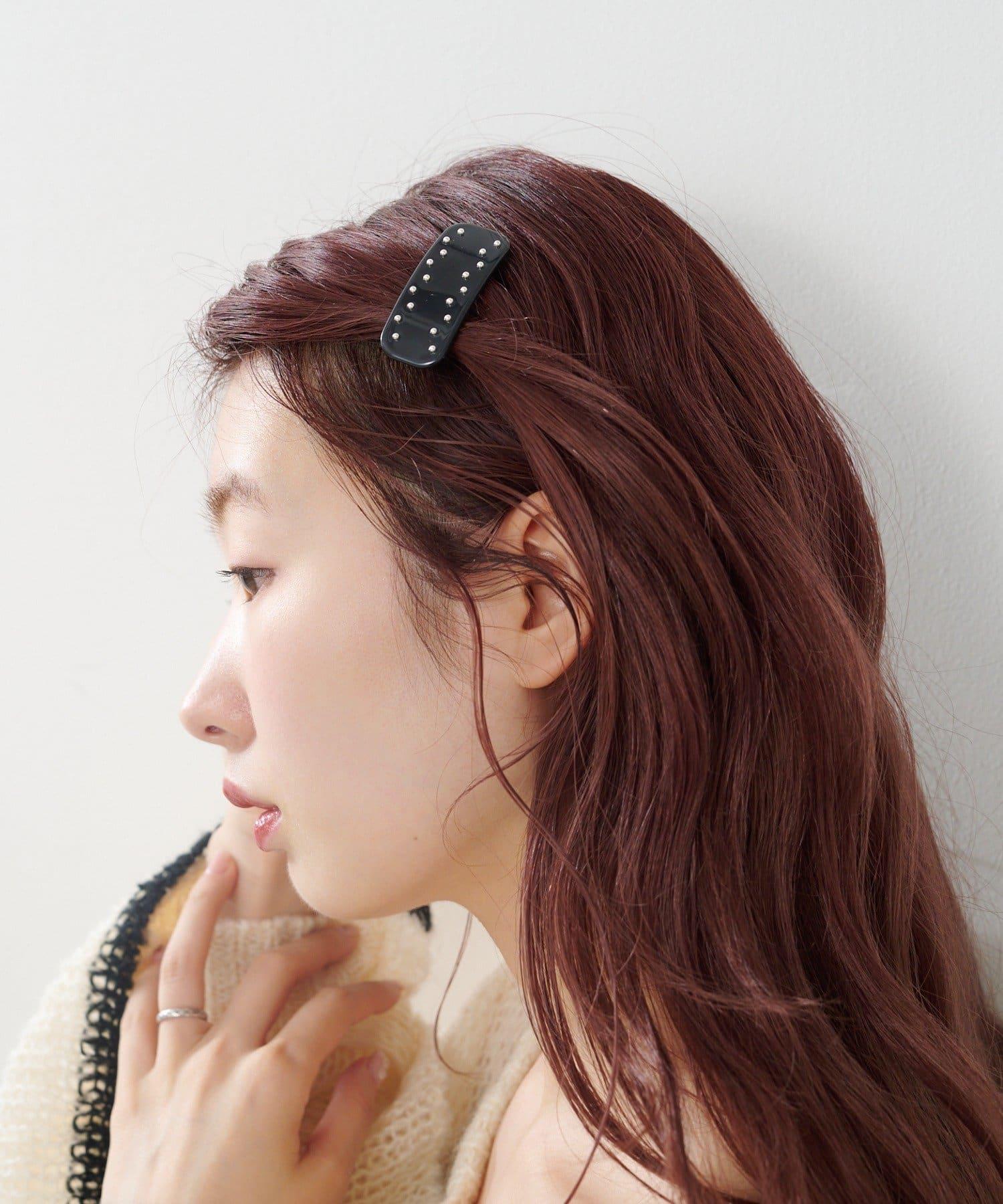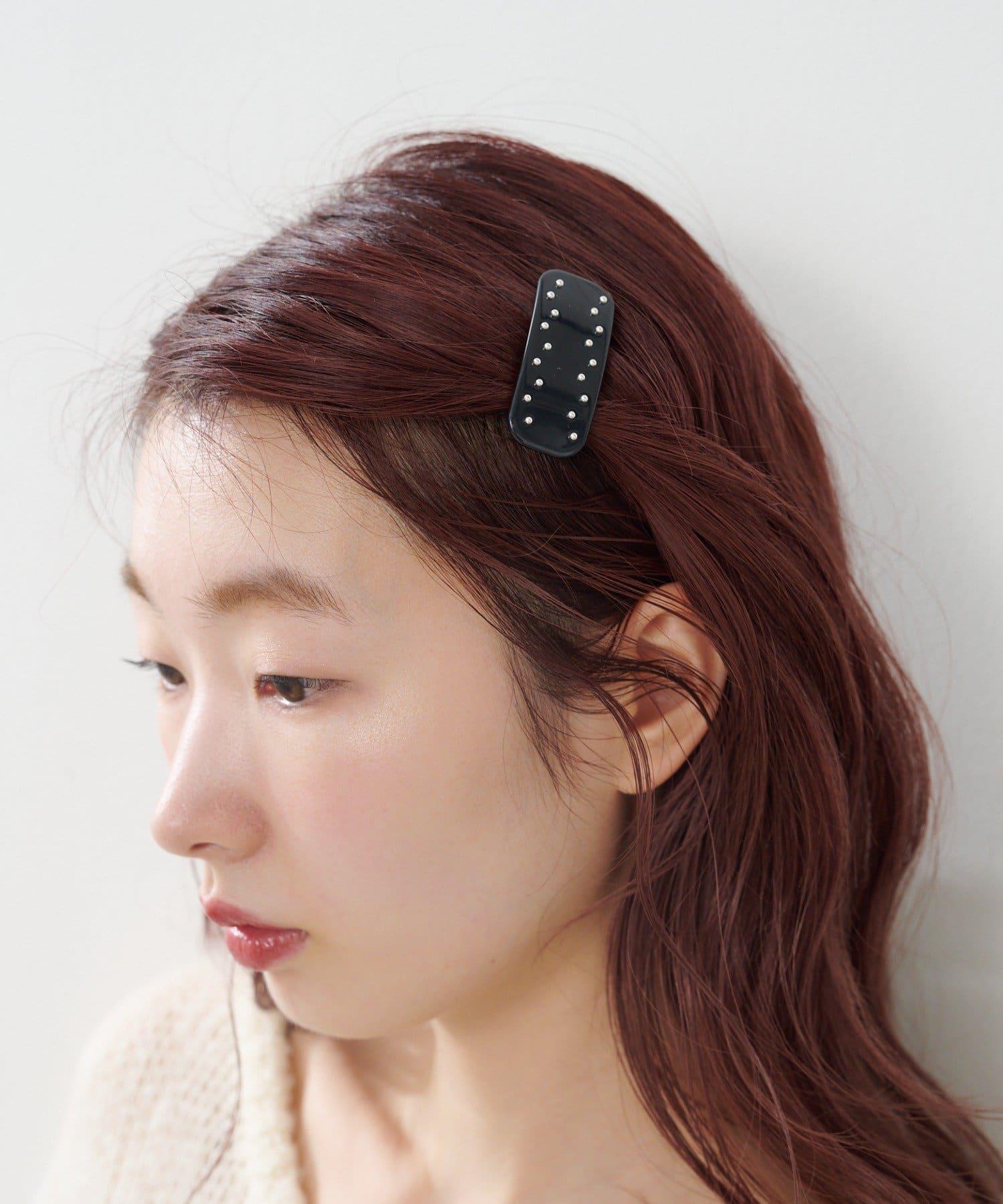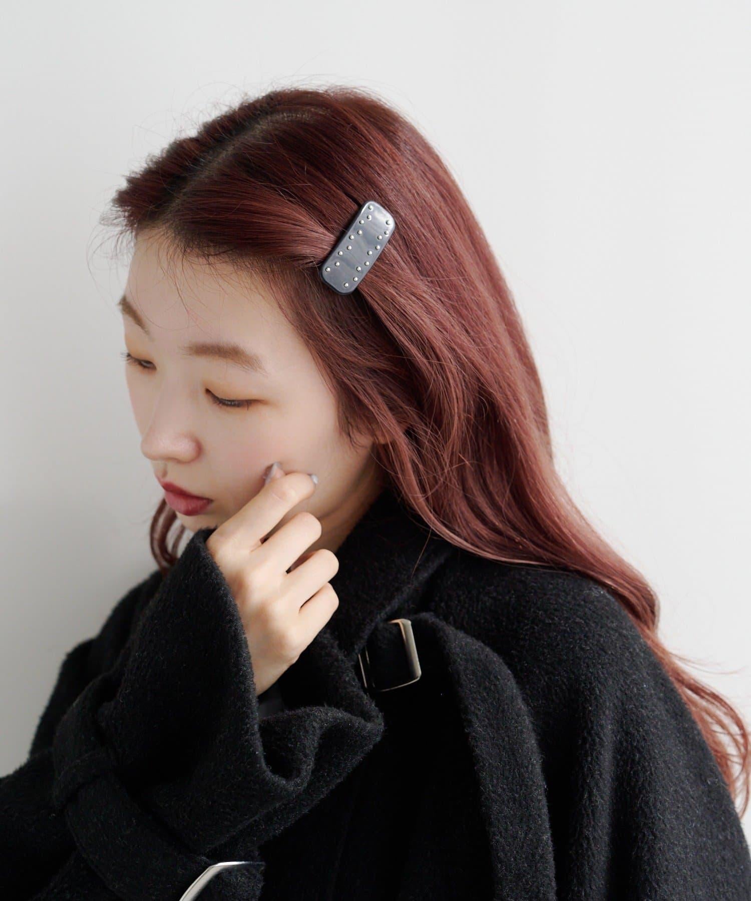 夾板上鑲有細小的鉚釘,為頭髮增添了微妙的點綴效果,同時又不會過於張揚。