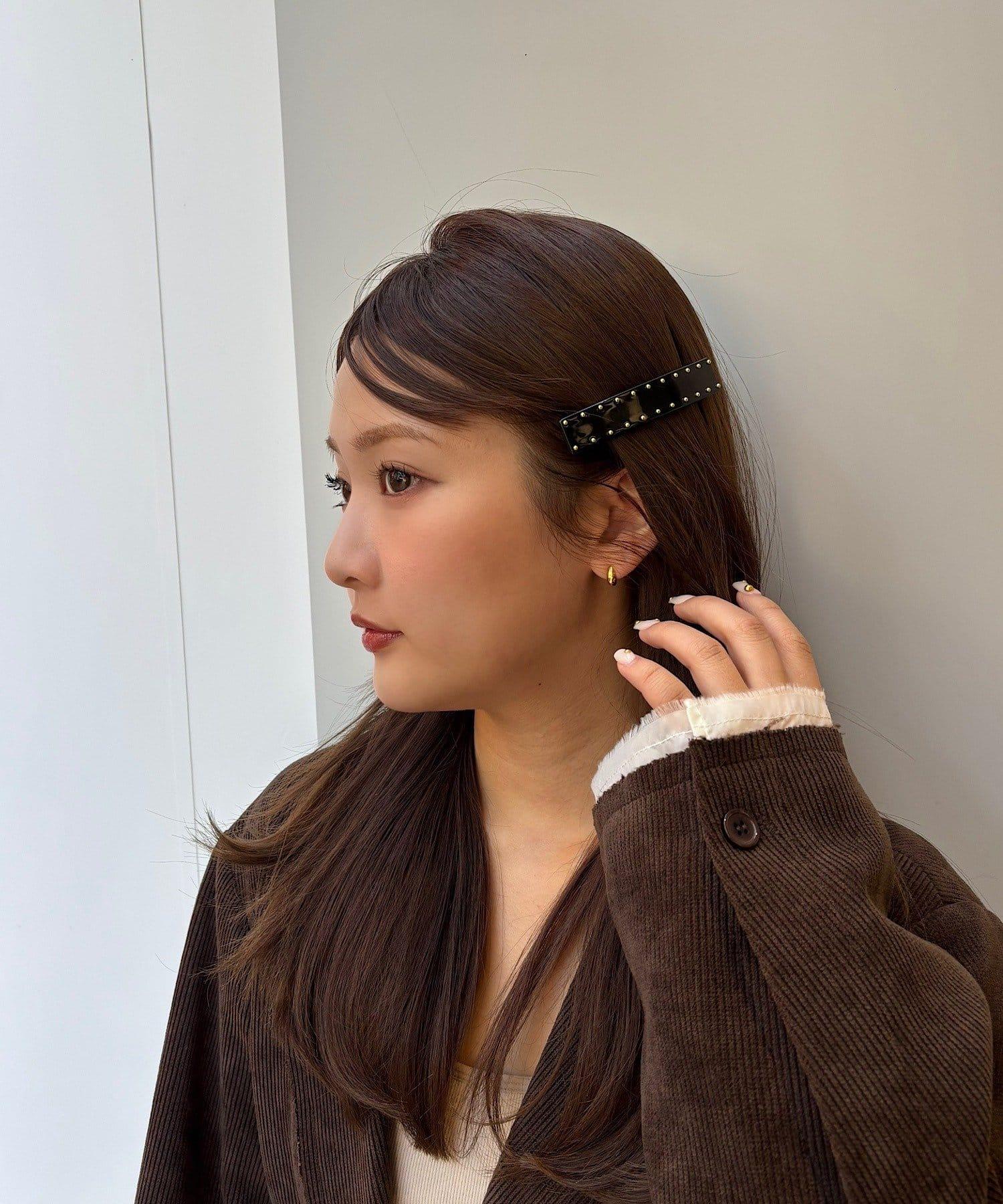 鉚釘的適度存在為髮型增添了亮點,使簡單的座標看起來更加緊湊。