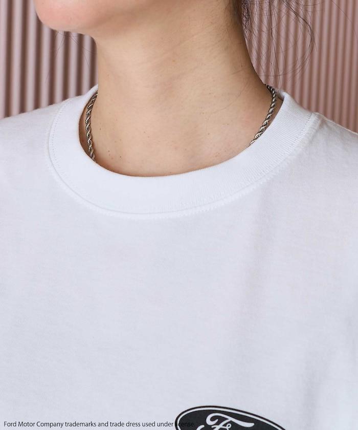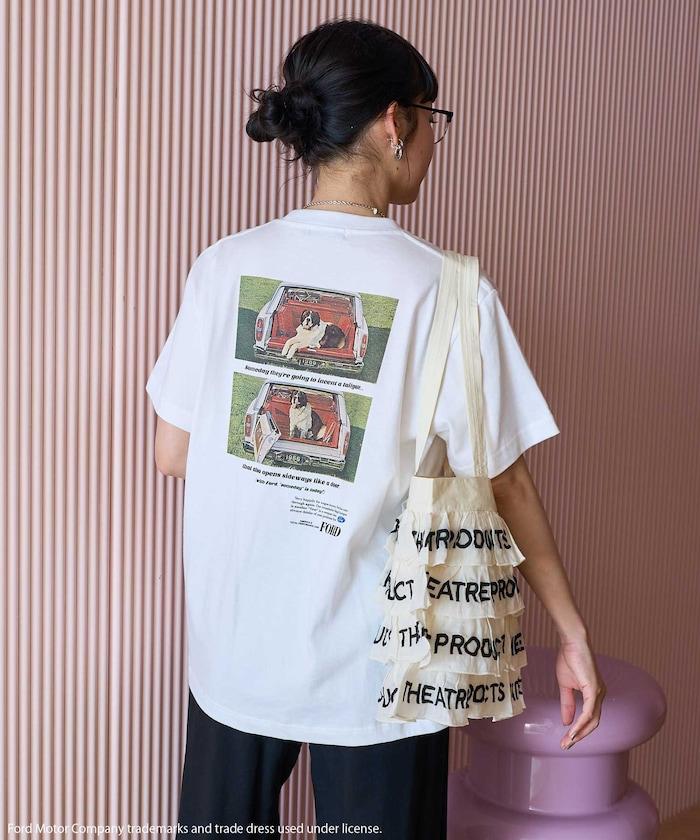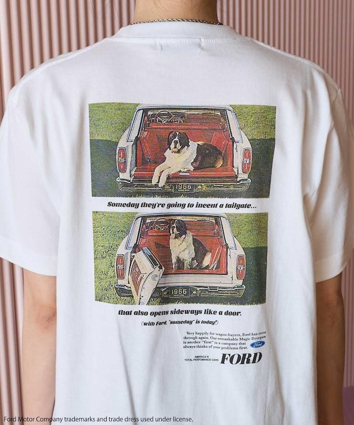 背面印有美國汽車製造商福特老爺車圖案的 T 恤。