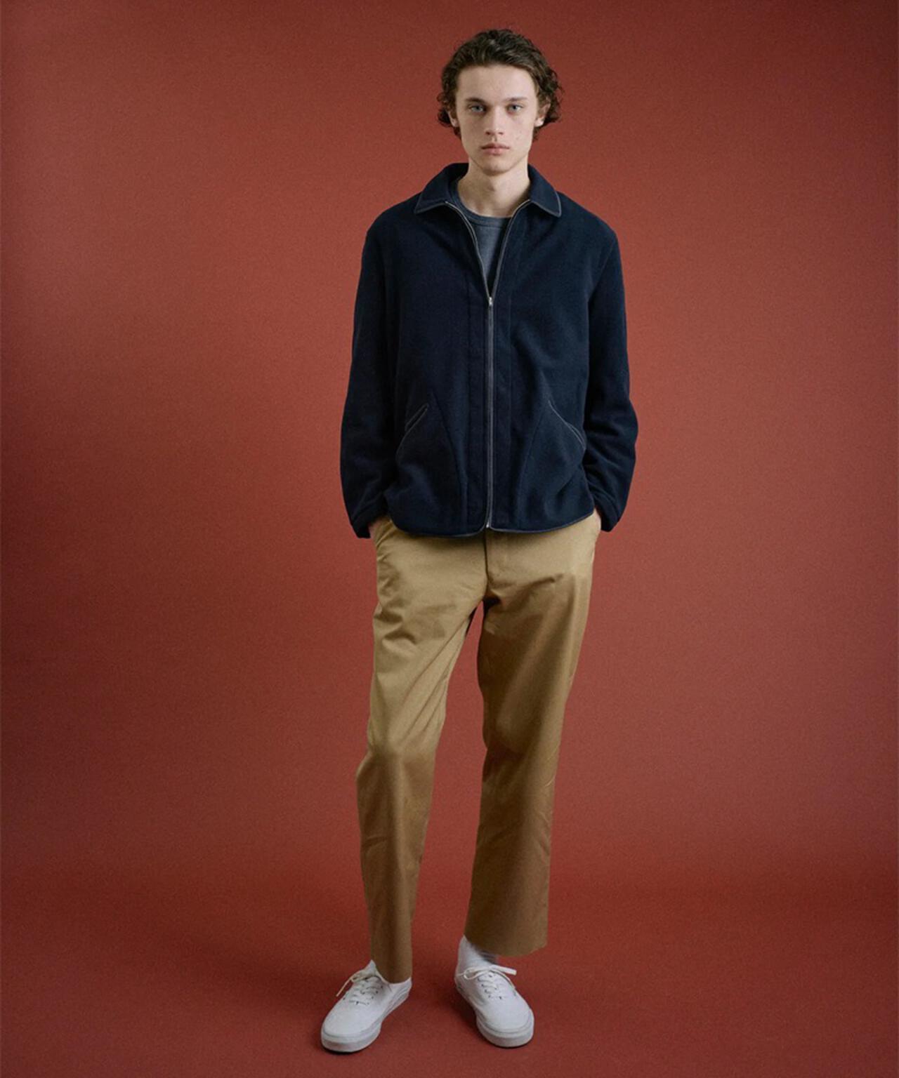 FOUNDOUR FLEECE ZIP BLOUSON 有一個品牌以其 "芝麻鹽 "面料而聞名,深受漁夫、獵人、伐木工人和其他戶外工作者的喜愛。這件夾克就是其中一個品牌的樣品。這種面料具有獨特的外觀和手感,👍適合現代世界的羊毛衫。它溫暖、輕便、觸感舒適。然而,其設計和細節卻保留了當時的經典外觀和感覺。諾福克夾克上精緻的滾邊和背部的褶皺設計依然存在。衣領也做了方形處理,這也是減少外觀柔軟度的一個特別注意的細節。這種圖案在當時是