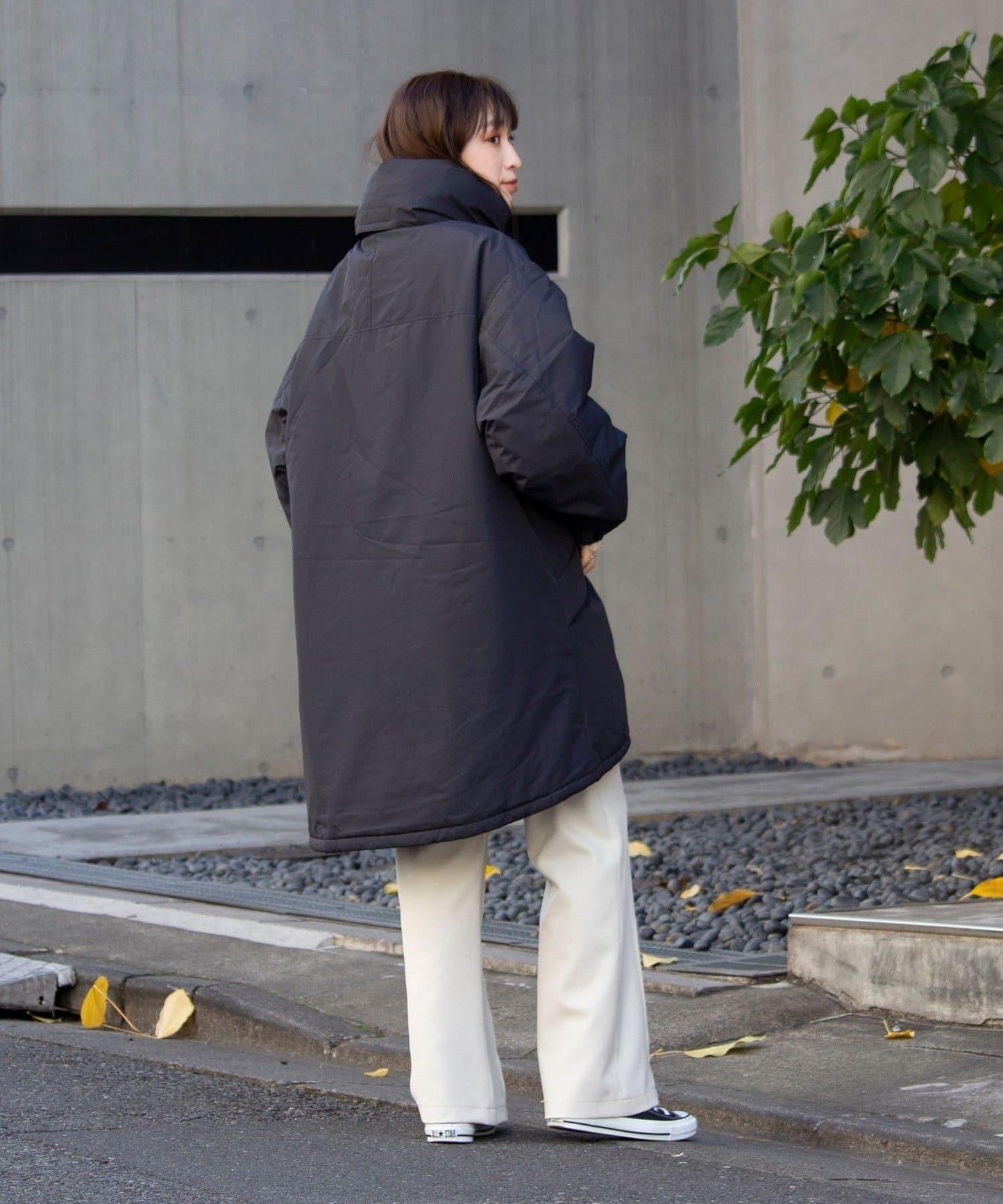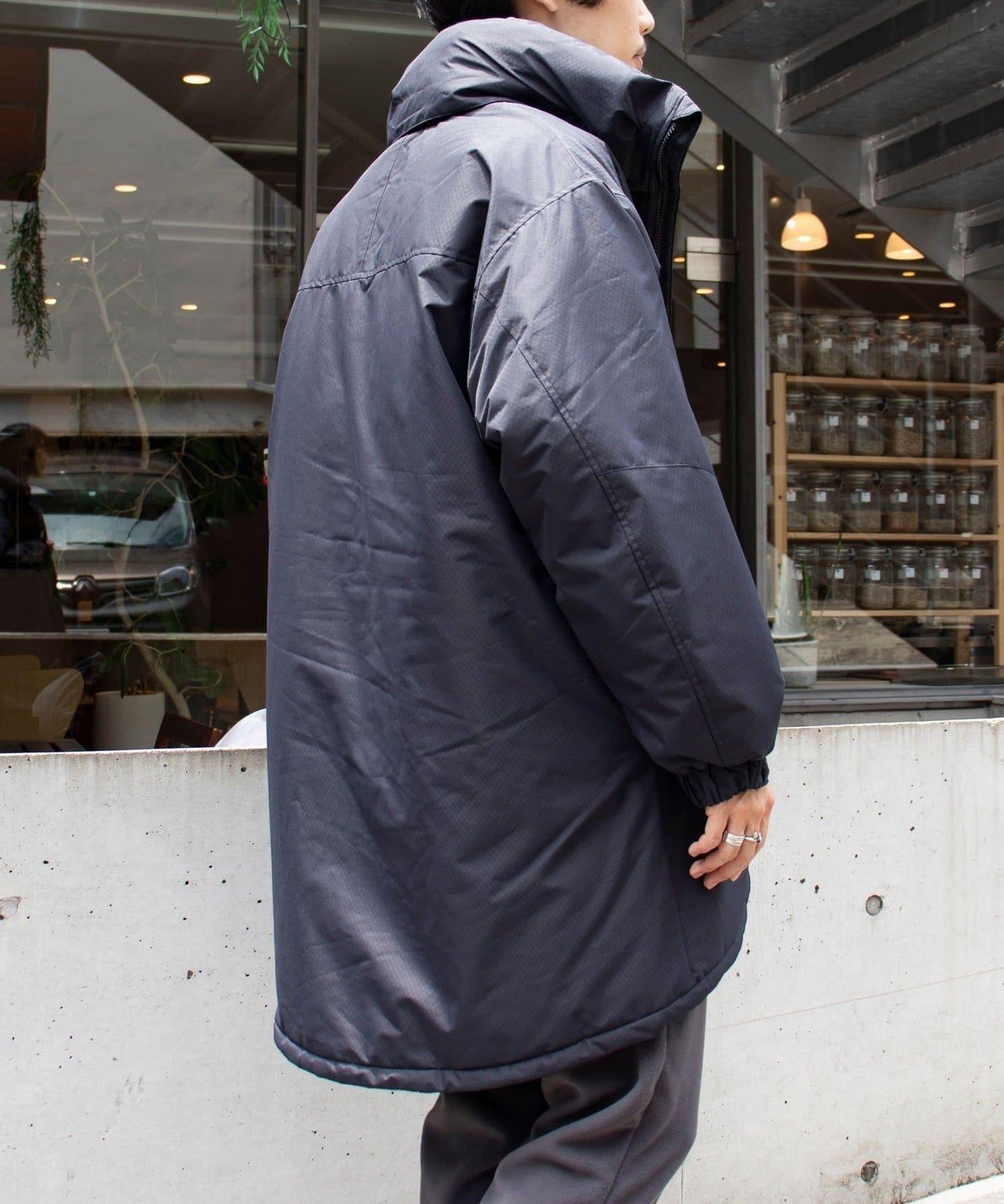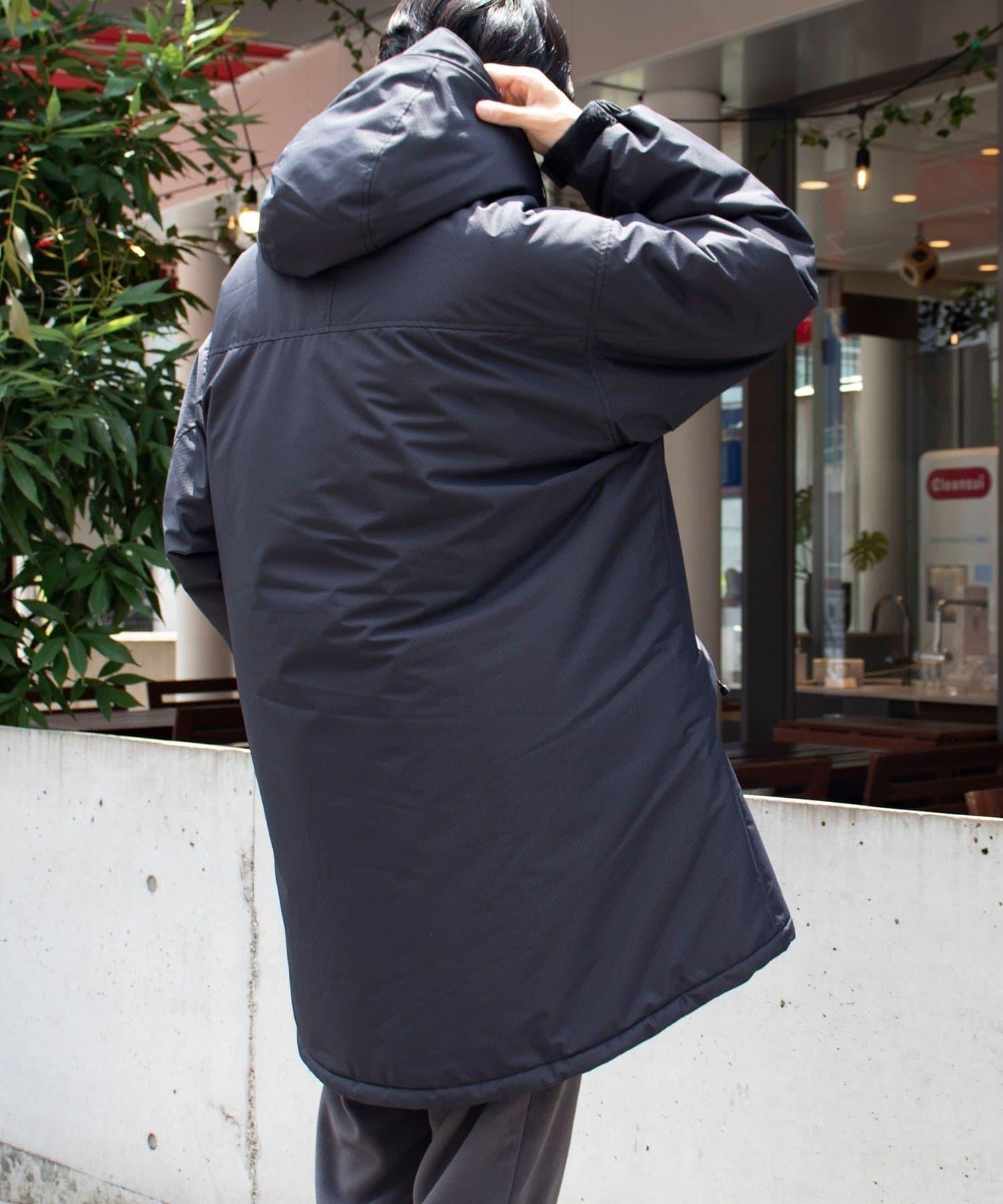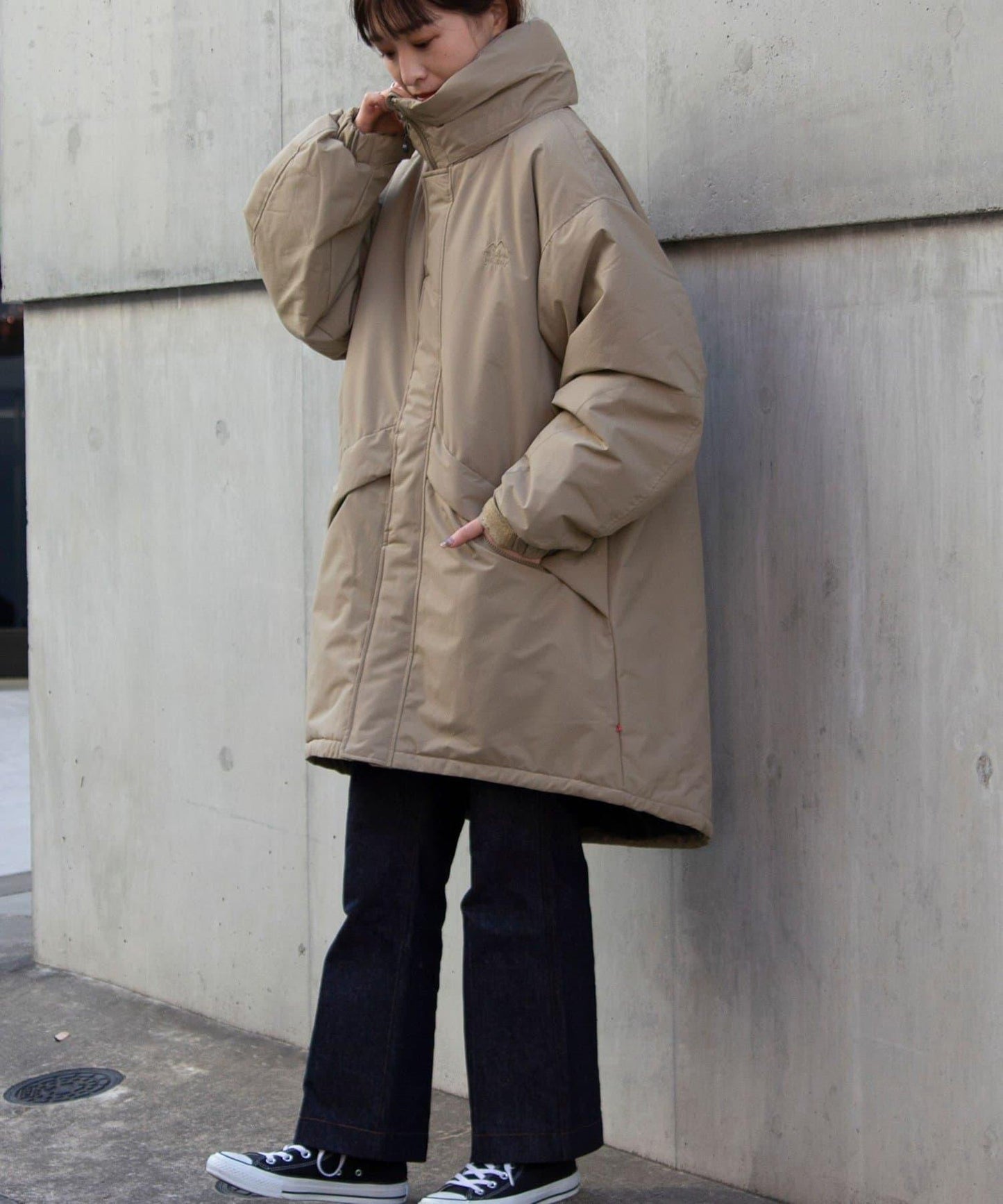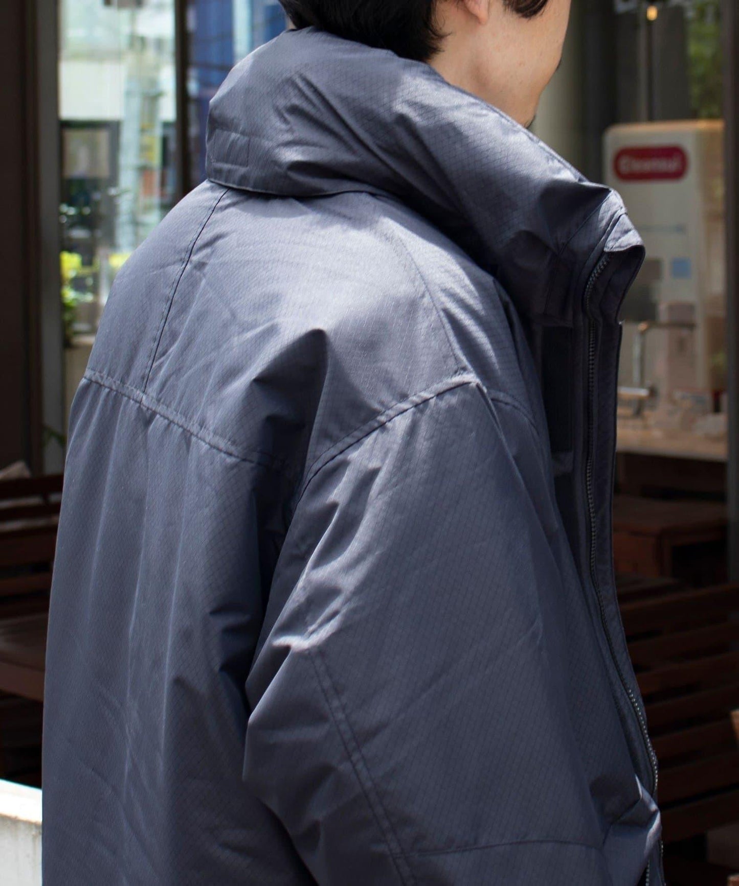 風帽收納在頸部,可根據天氣和造型使用。
