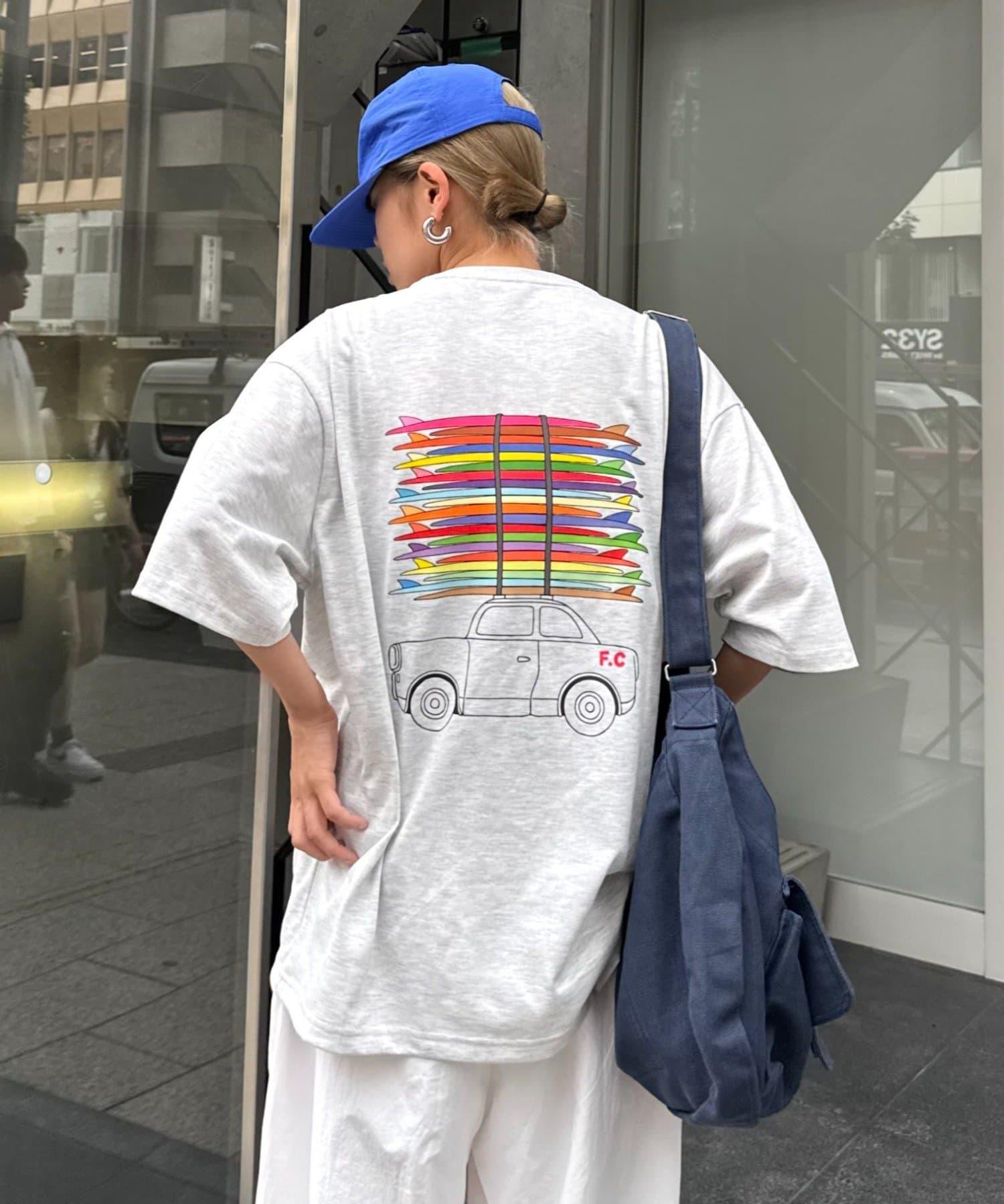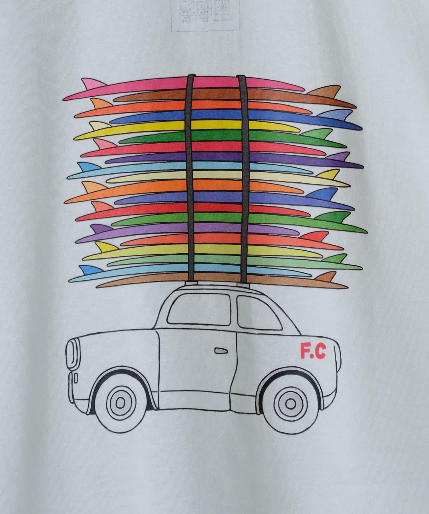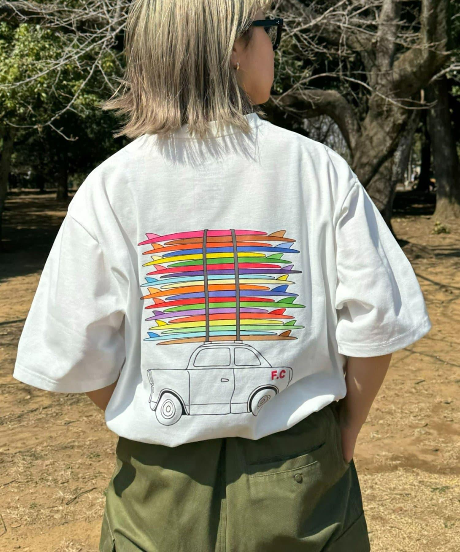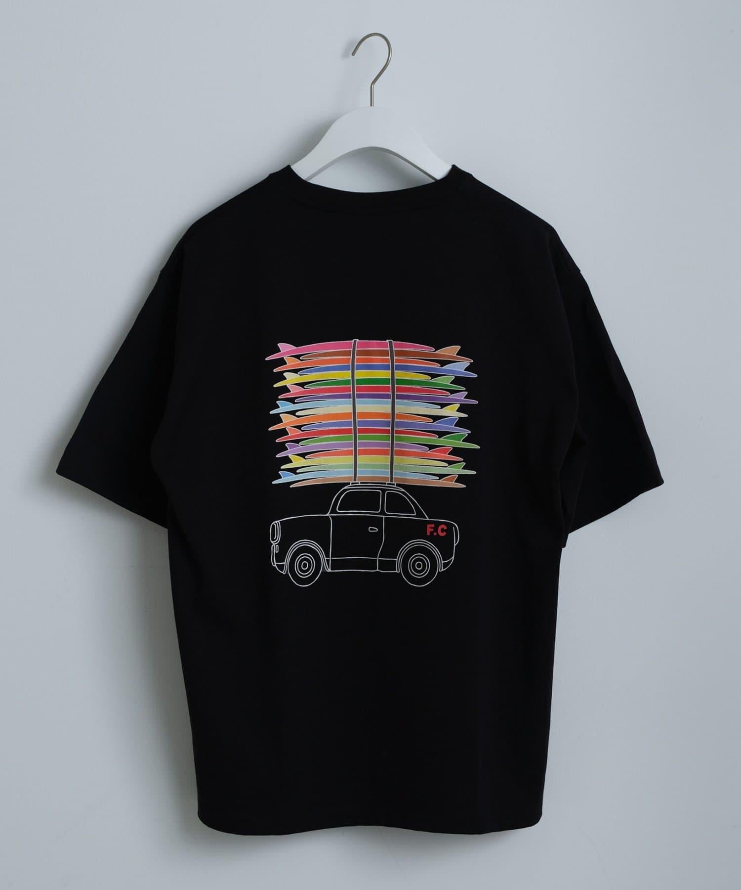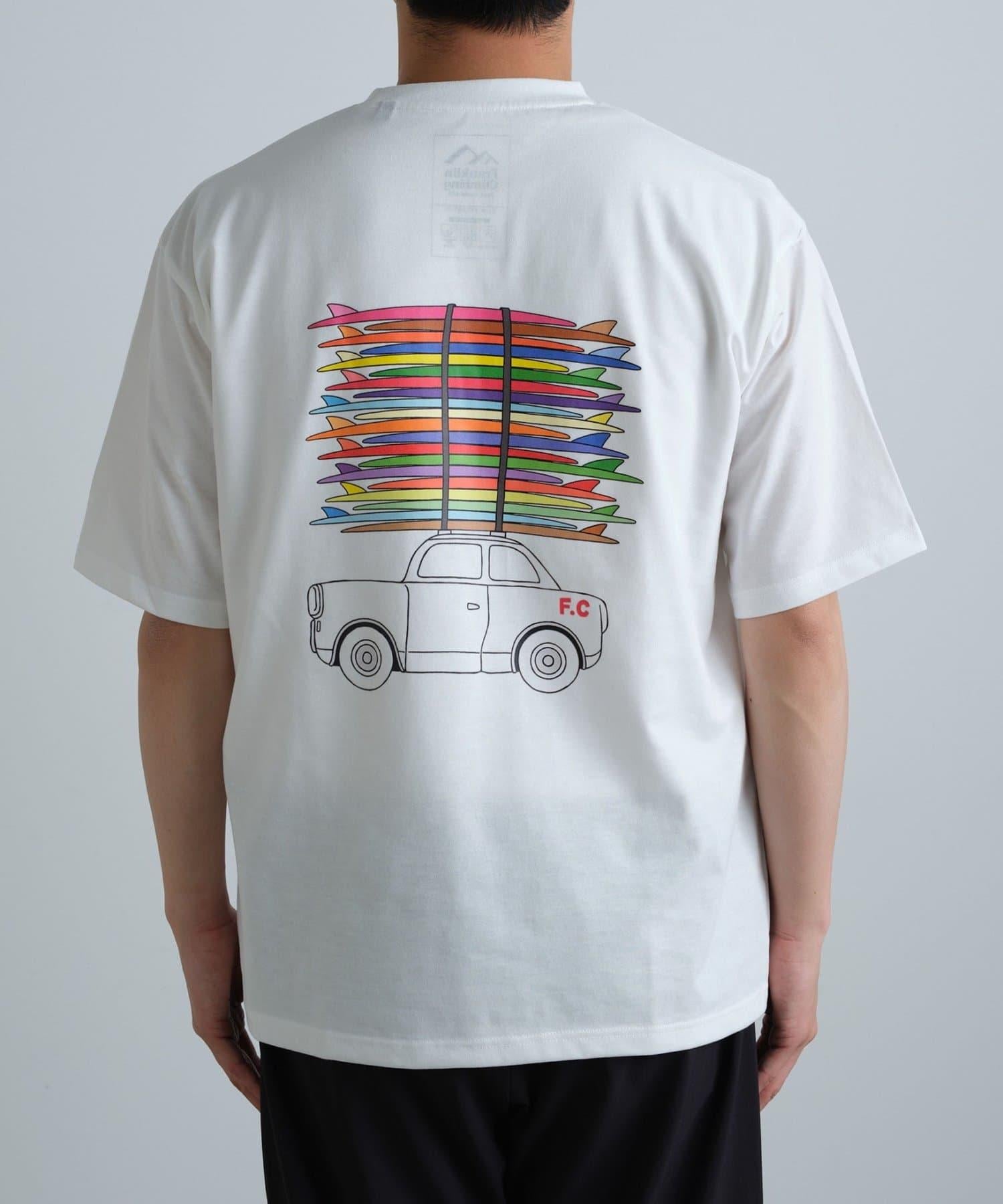 【Franklin Climbing】衝浪板和汽車背景印花T恤