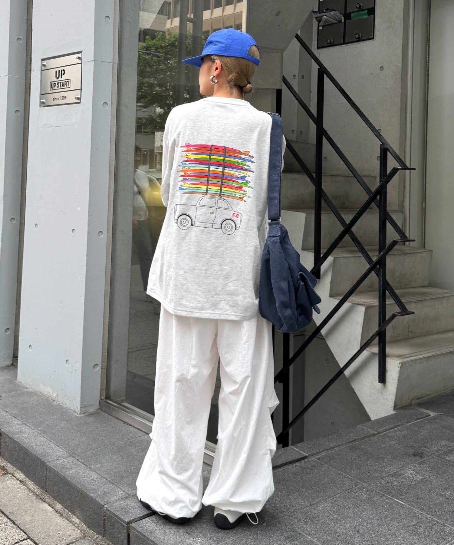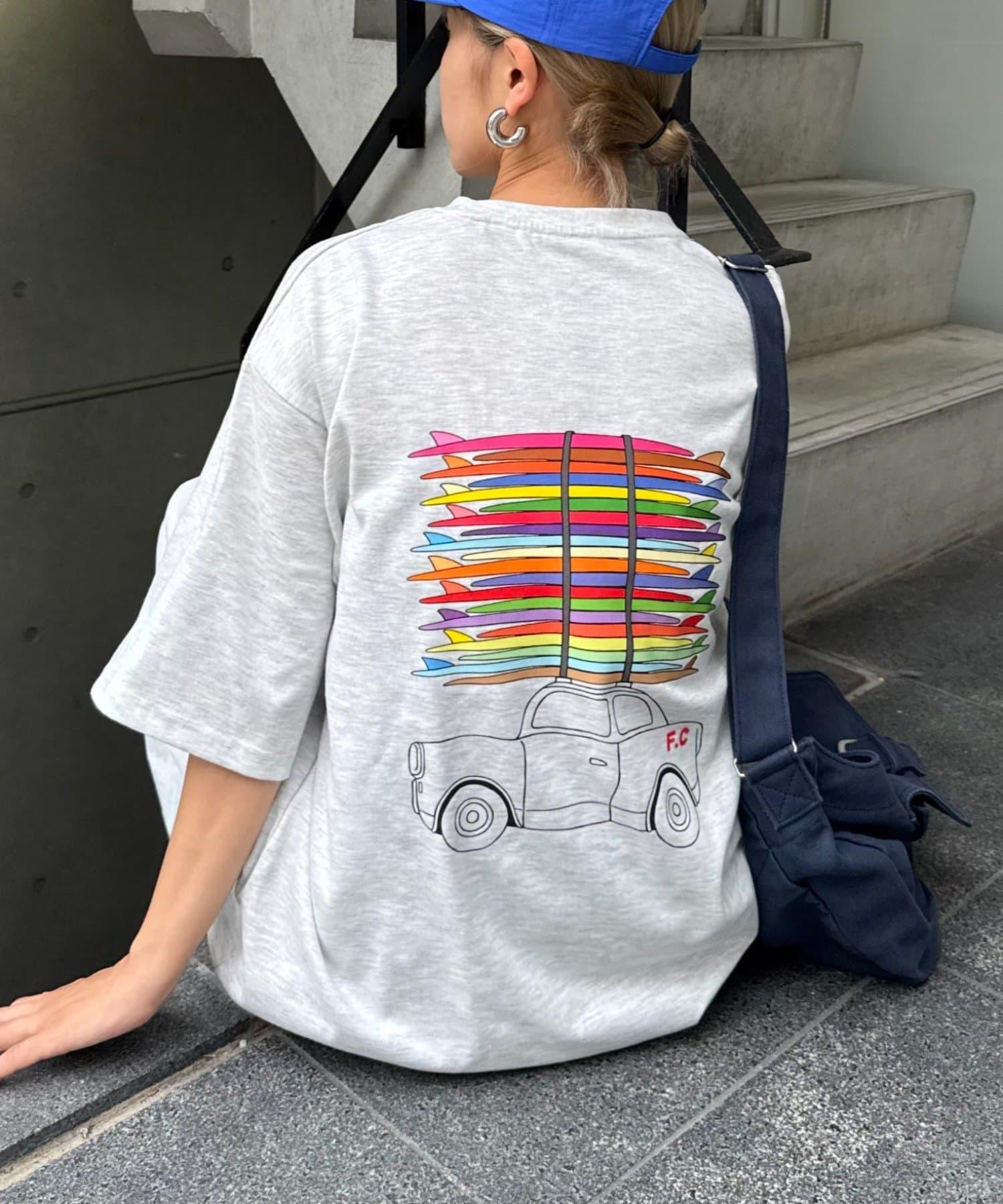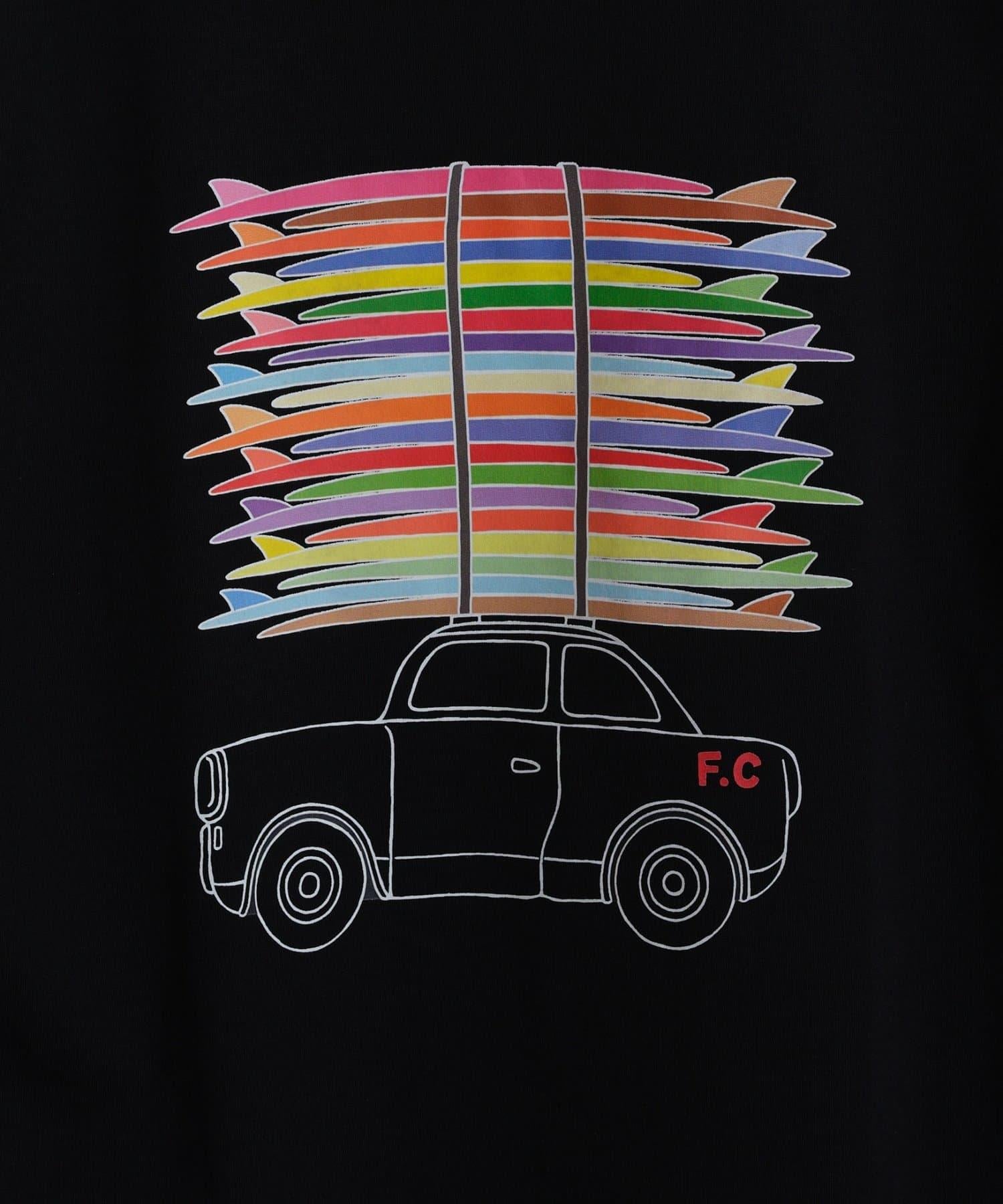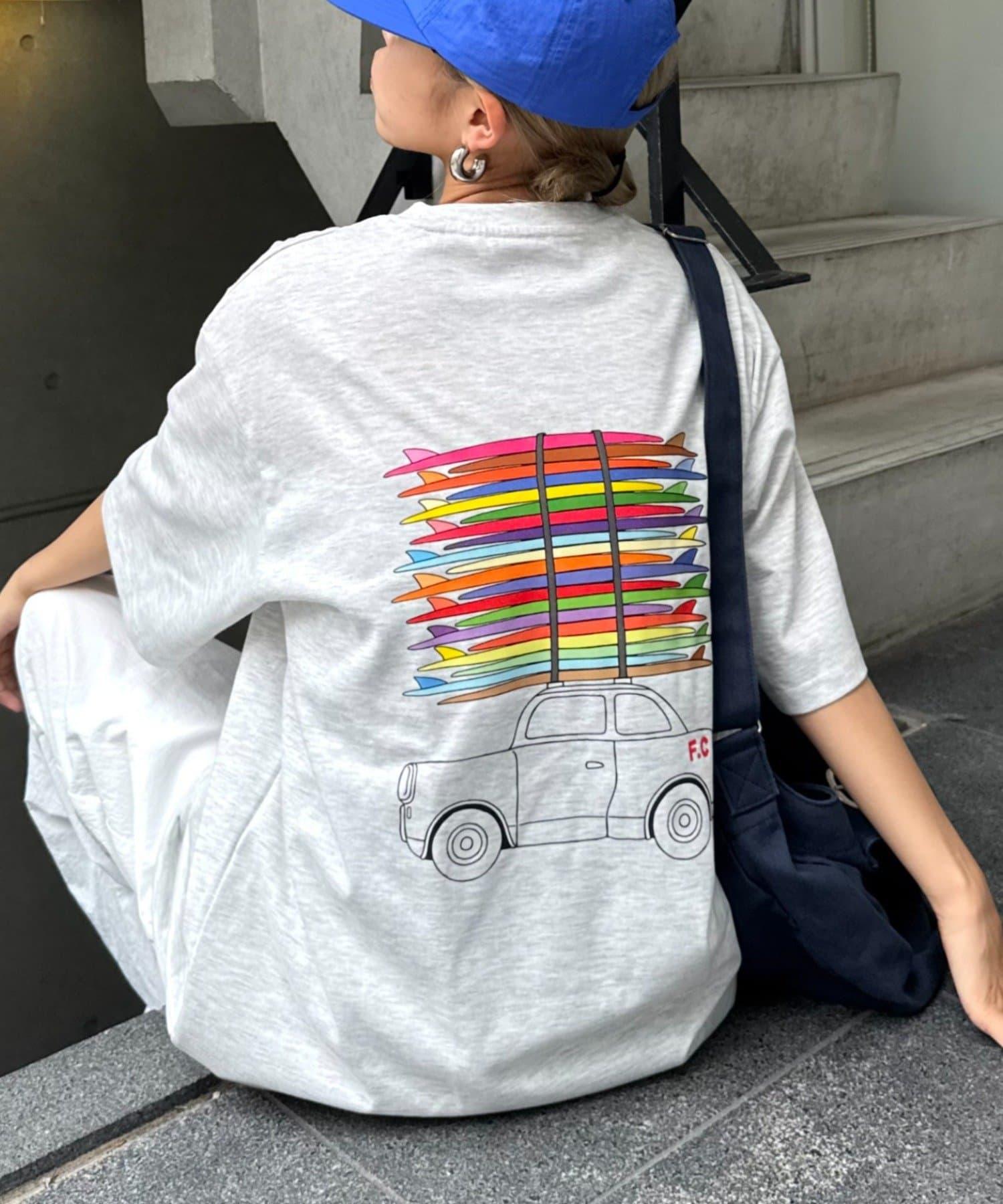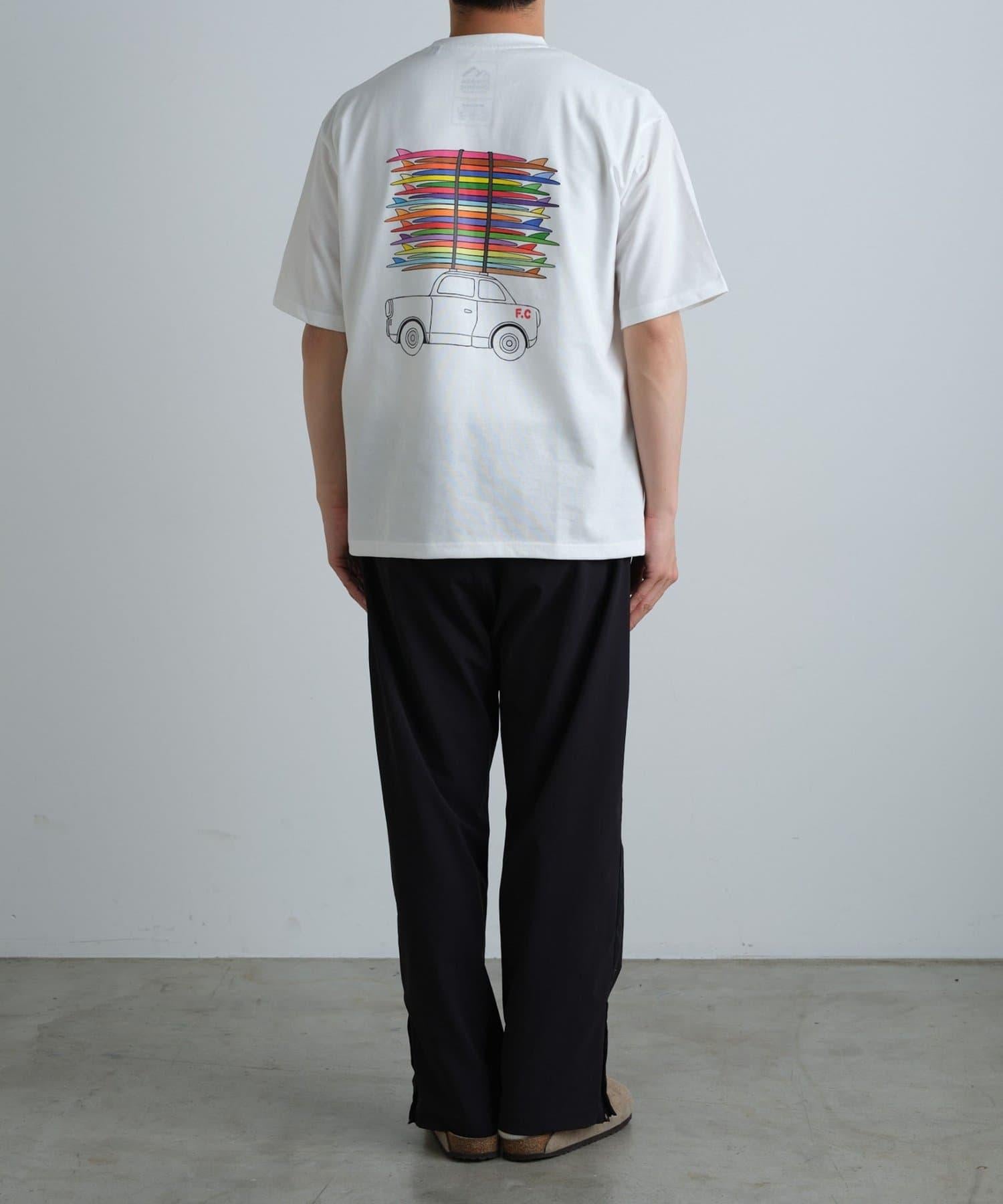 【Franklin Climbing】衝浪板和汽車背景印花T恤