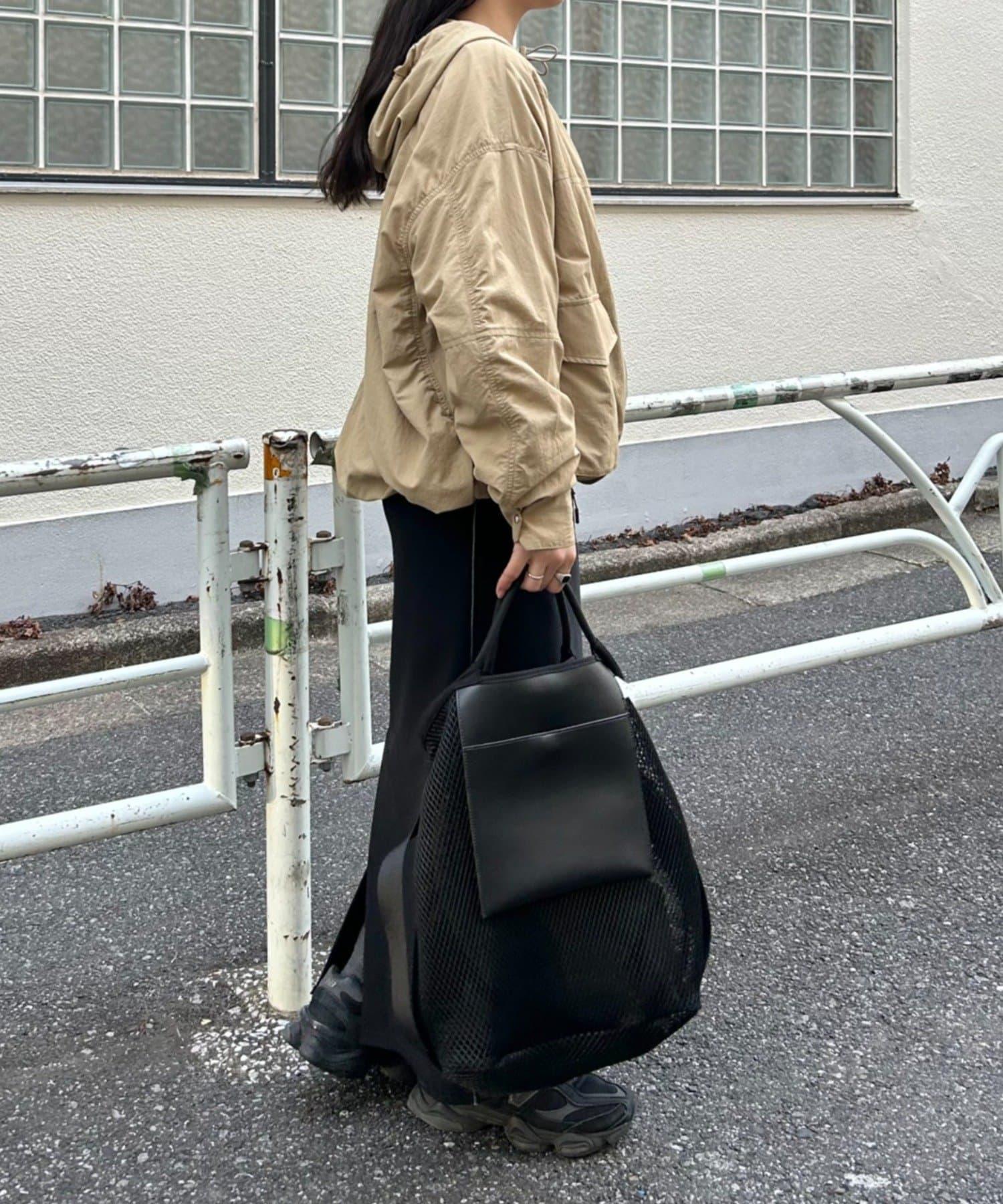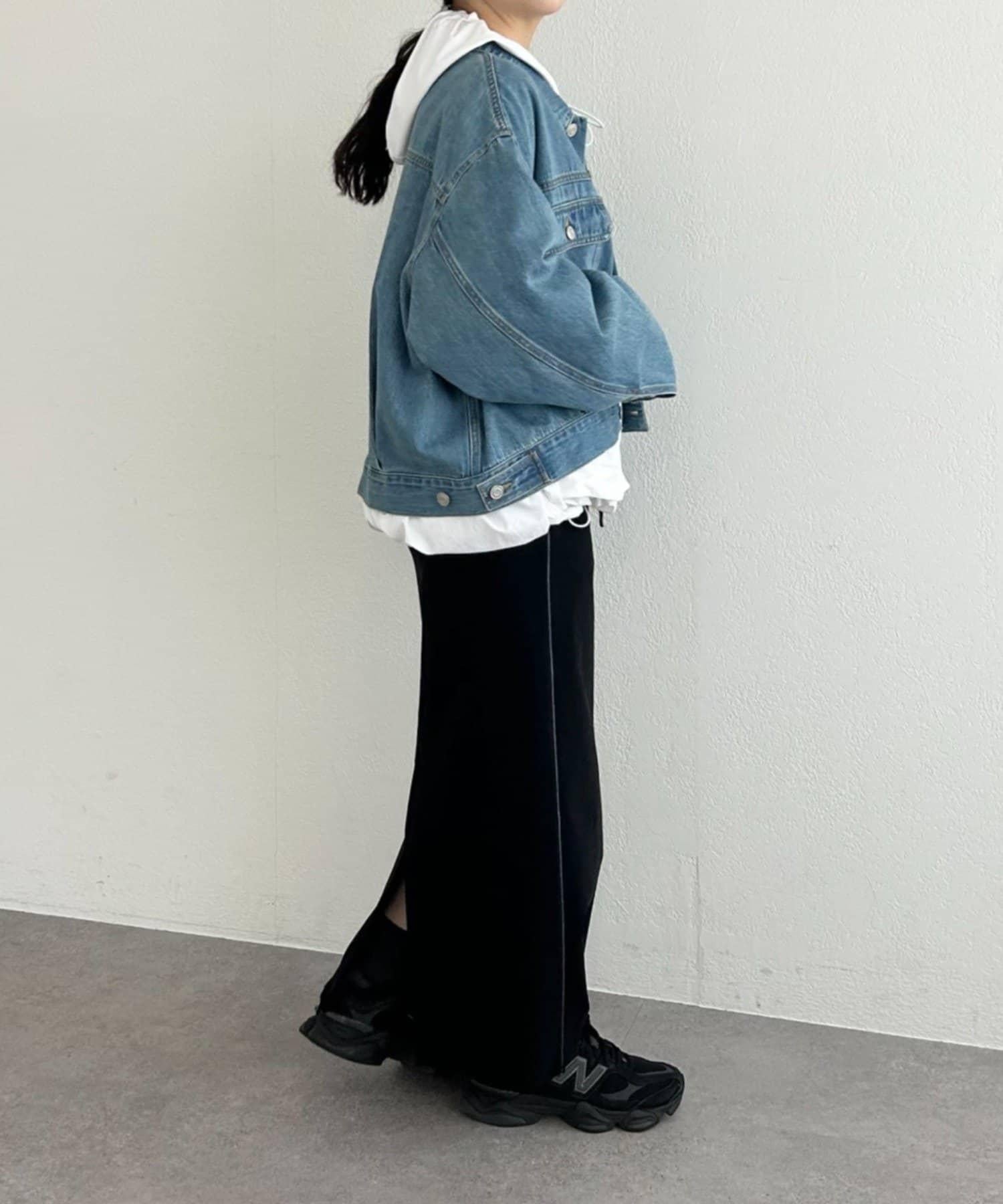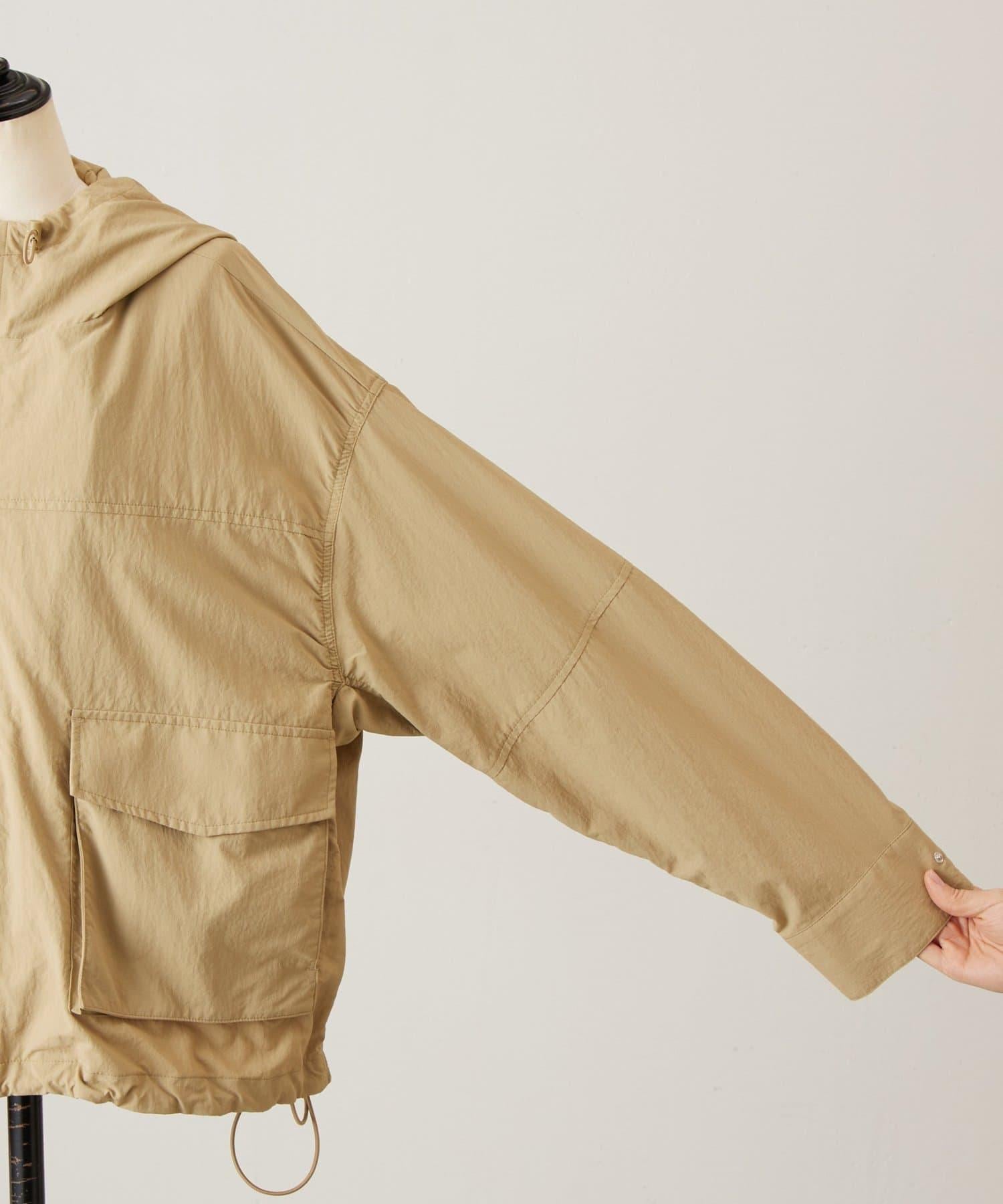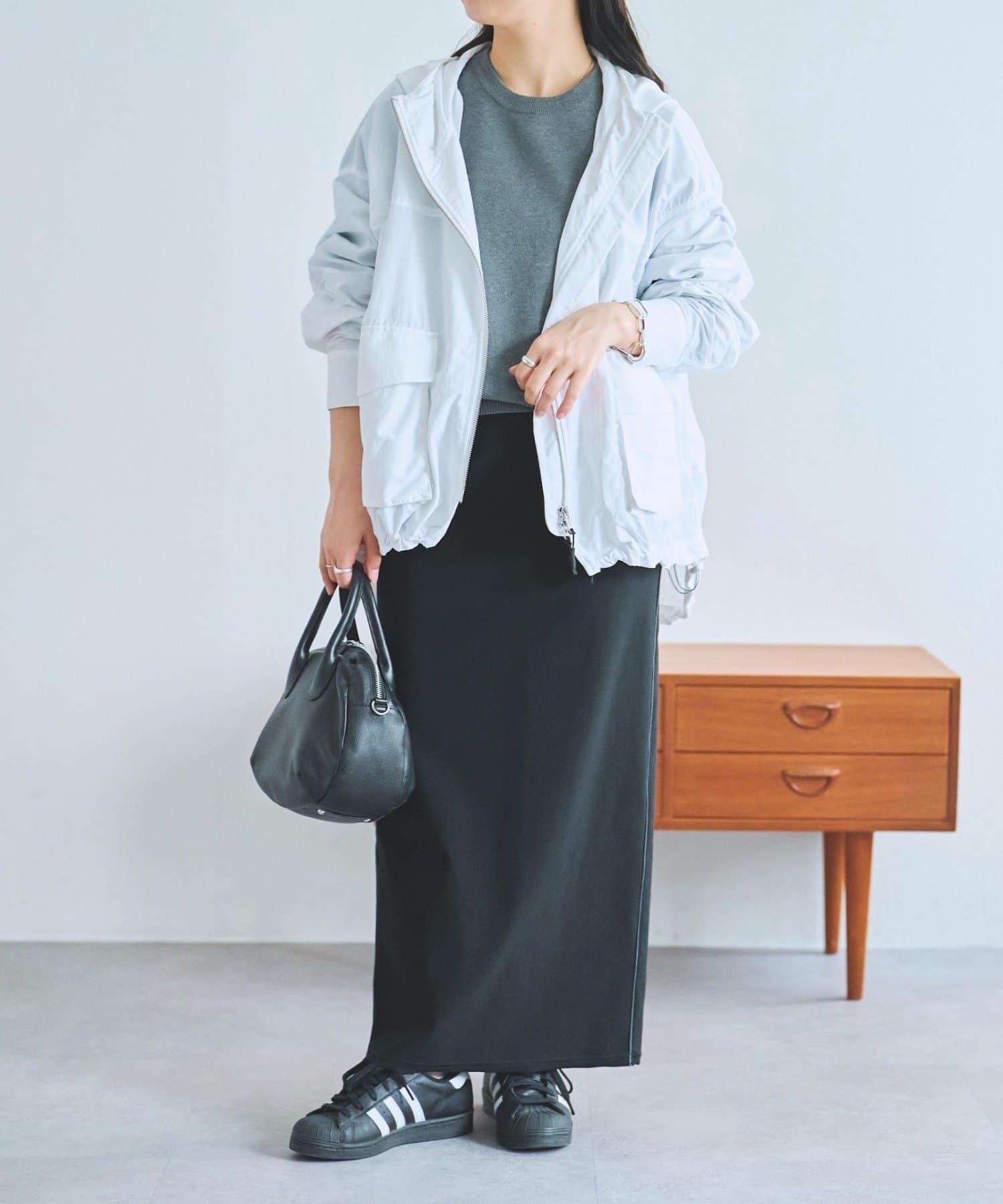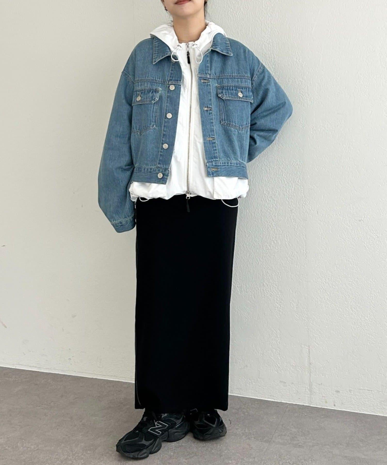 前後長度不同,後部可遮住臀部。下襬用抽繩收攏,也可穿得更短。
