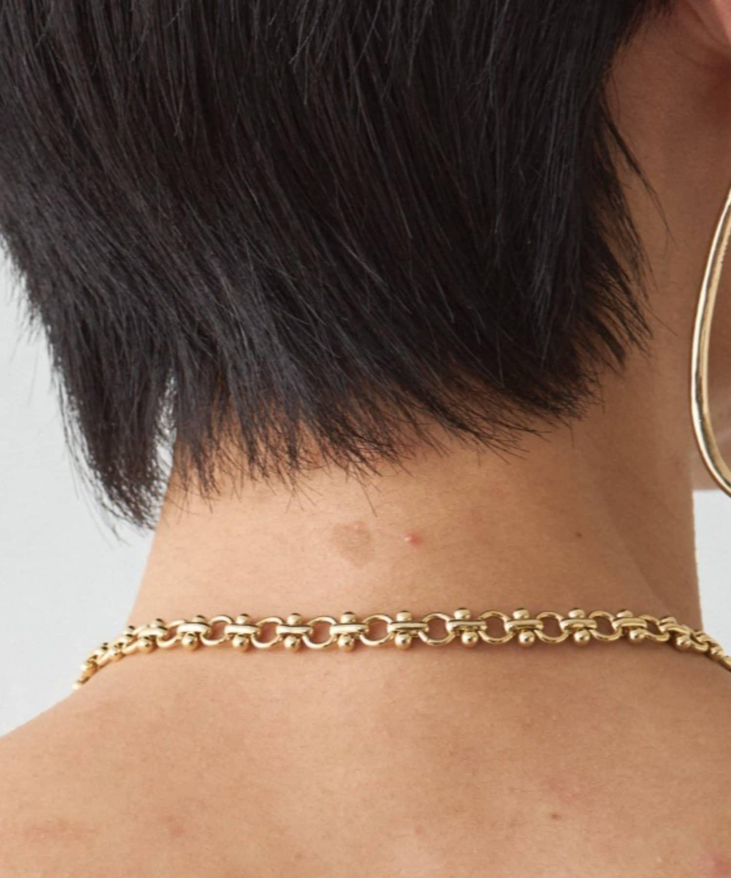 這款飾品的長度適中,長度較短,類似於choker,能很好地突出肩部線條。