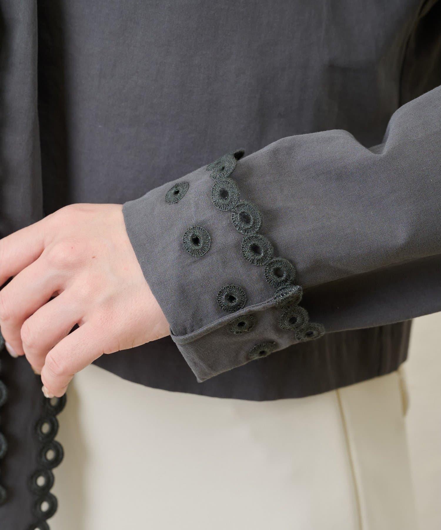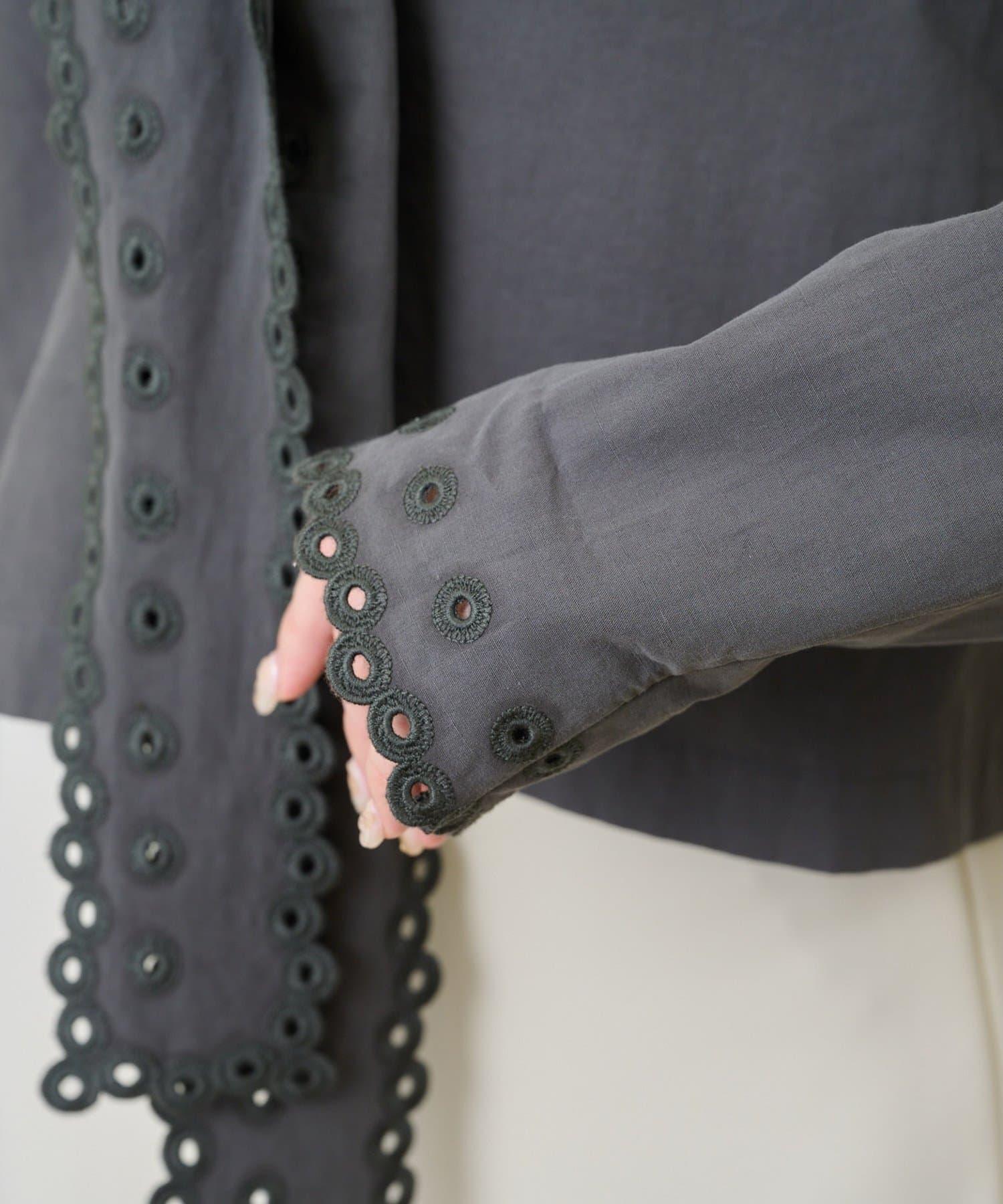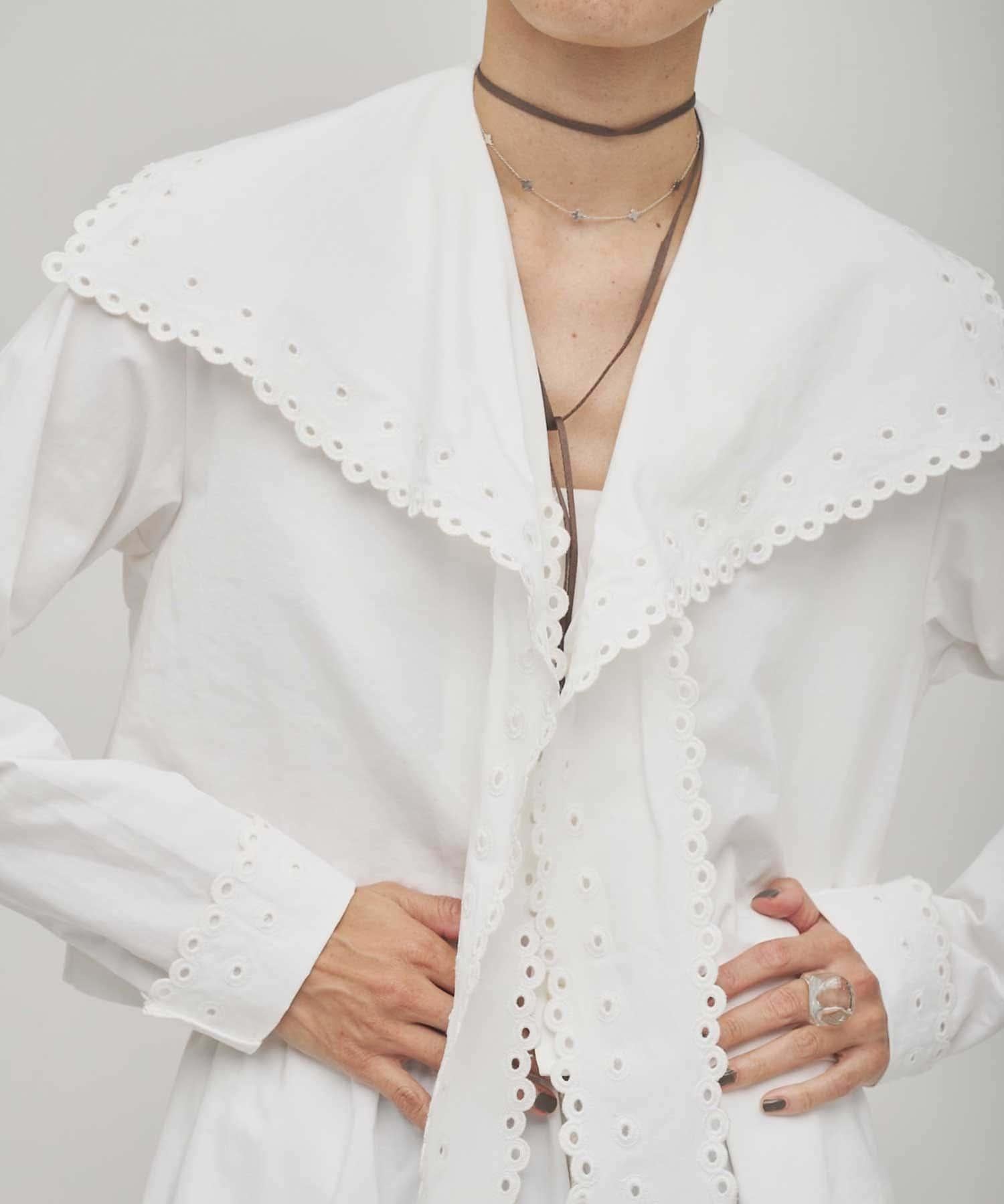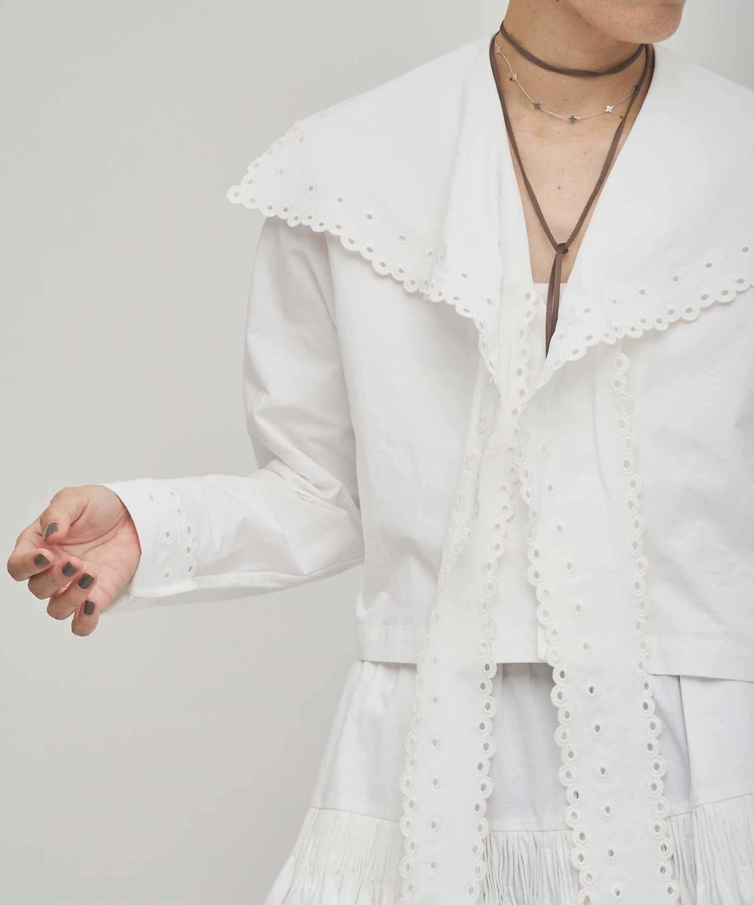 採用變形圓點圖案的蕾絲,靈感來自 19 世紀的法國錦緞。