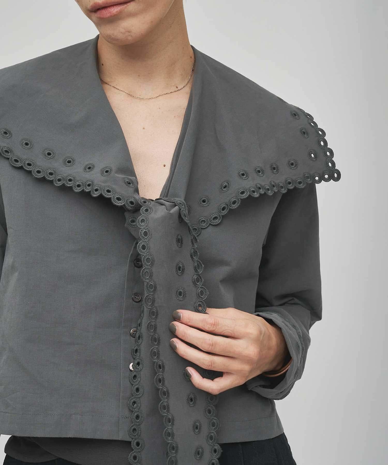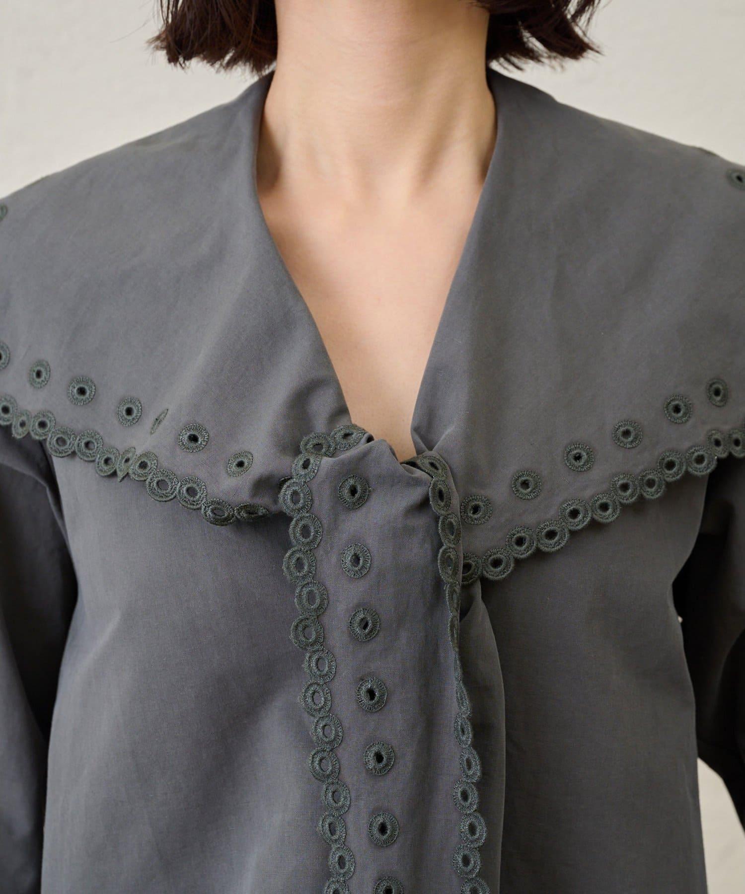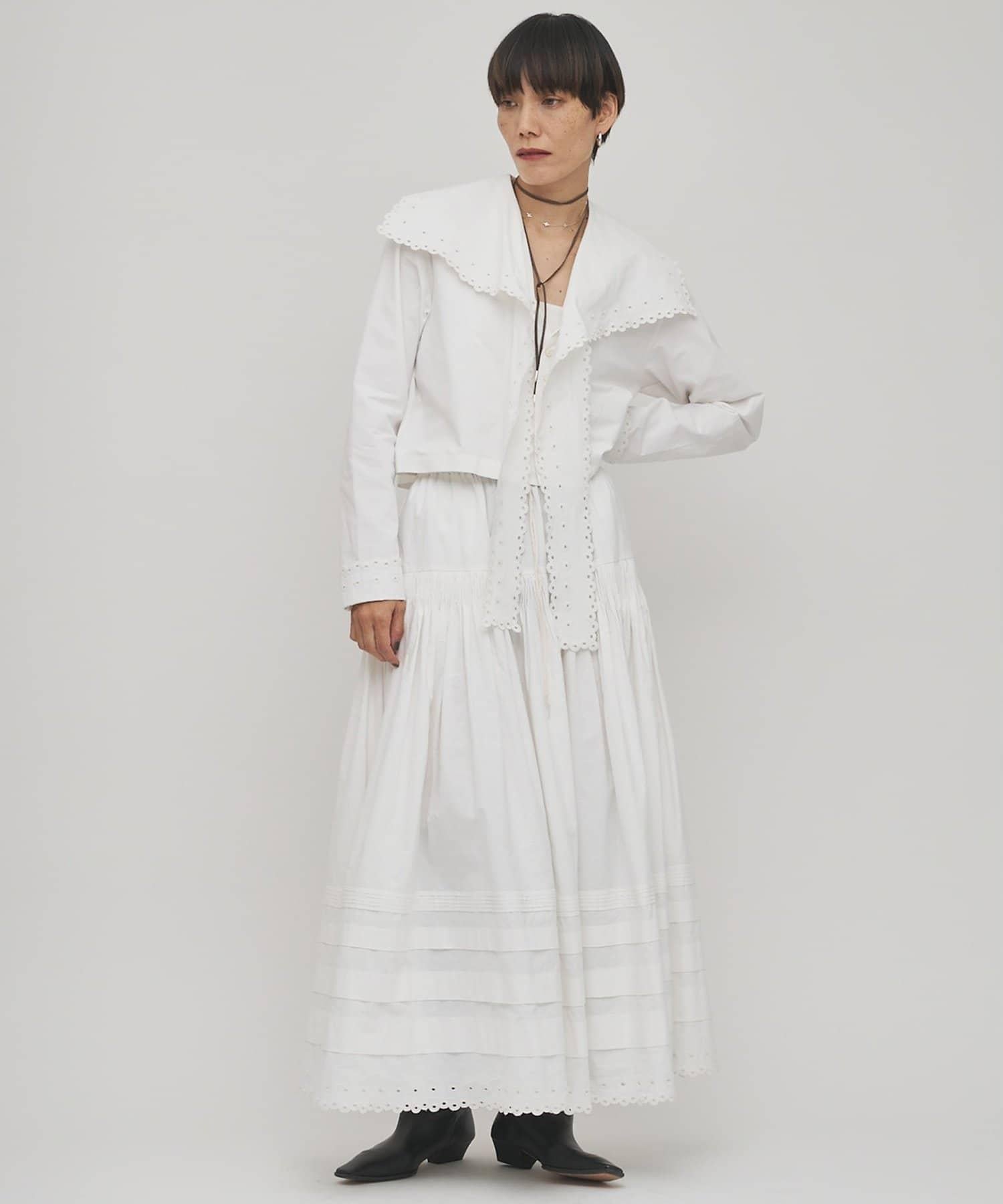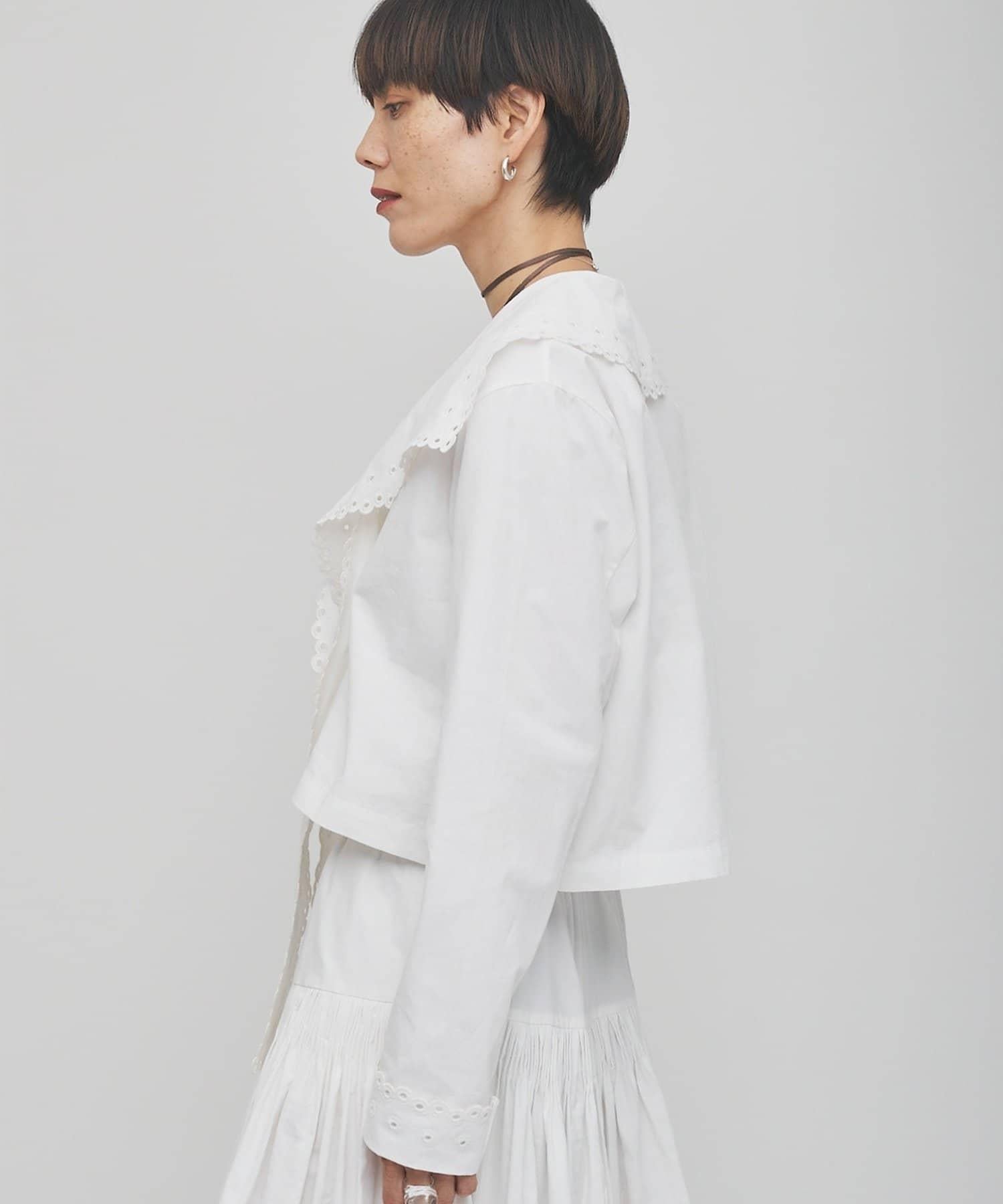 採用變形圓點圖案的蕾絲,靈感來自 19 世紀的法國錦緞。