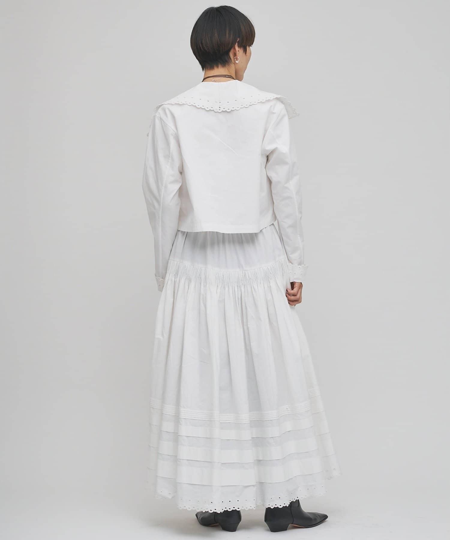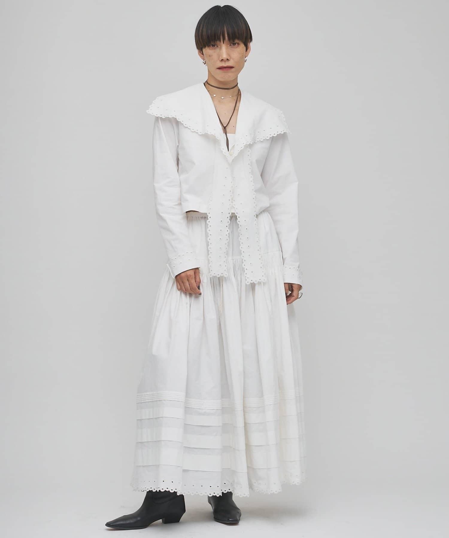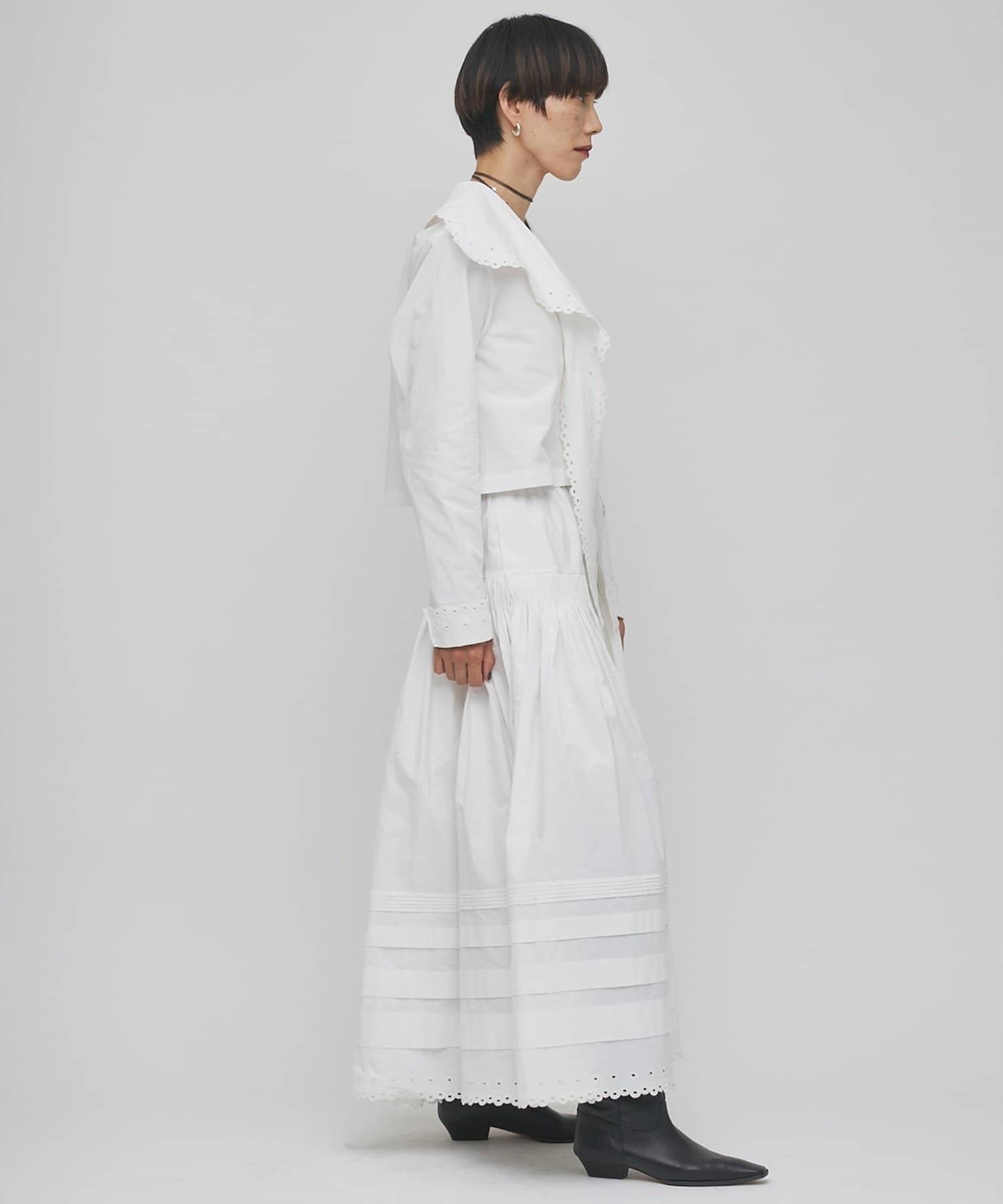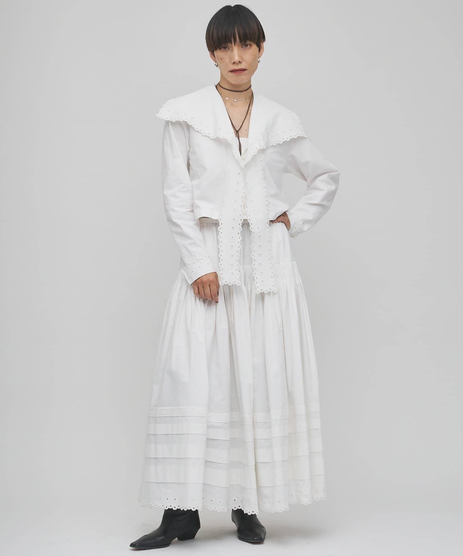 採用變形圓點圖案的蕾絲,靈感來自 19 世紀的法國錦緞。