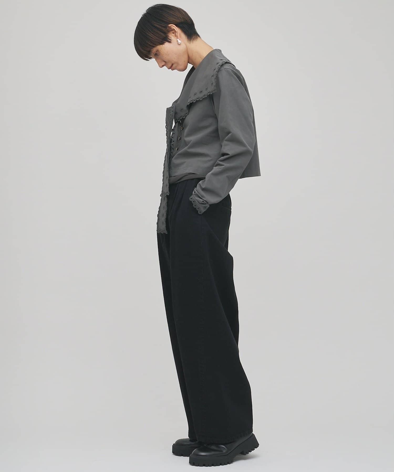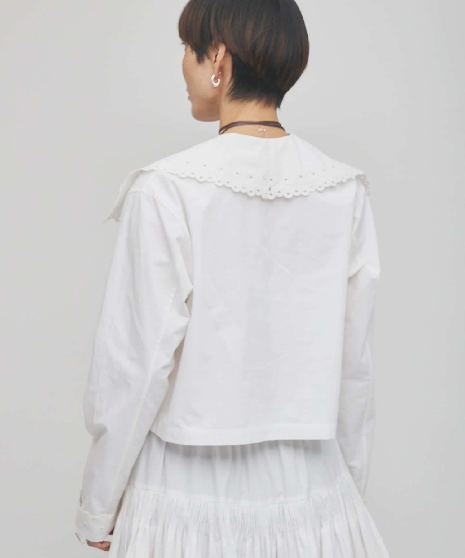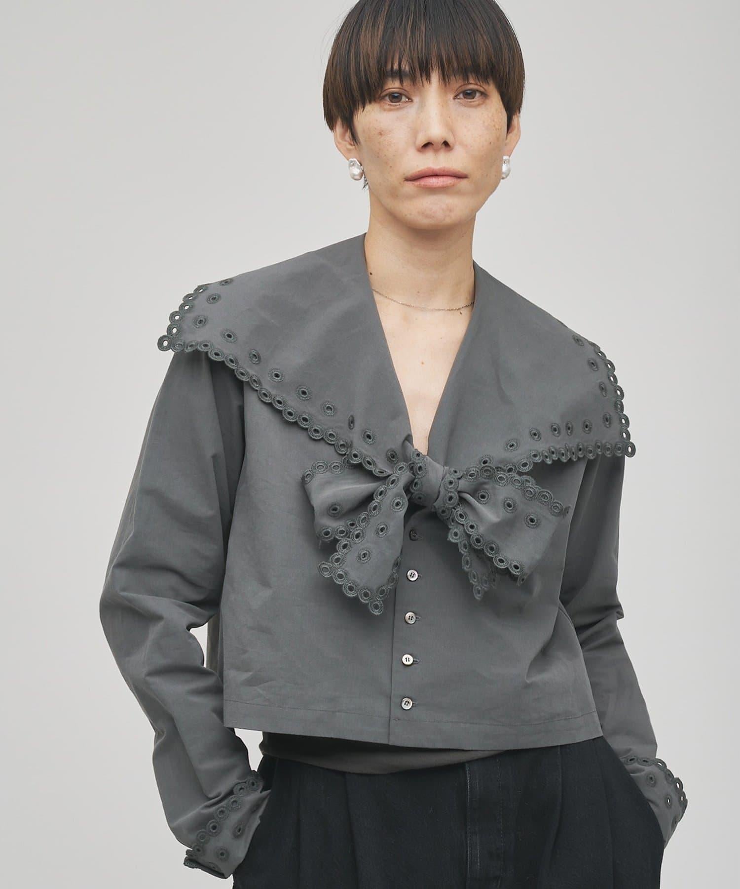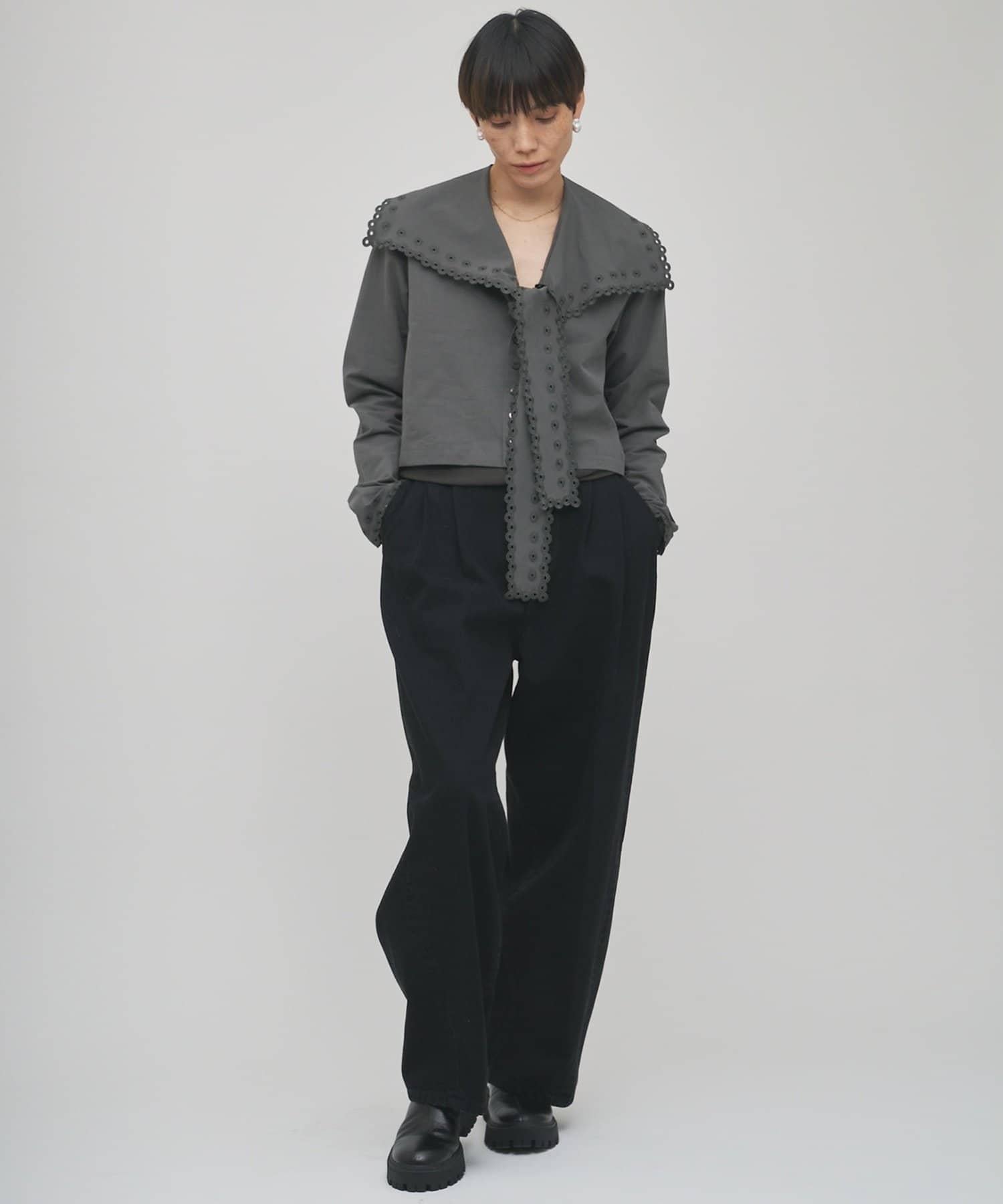 大領和領帶的設計共同營造出環繞臉部的迷人效果。