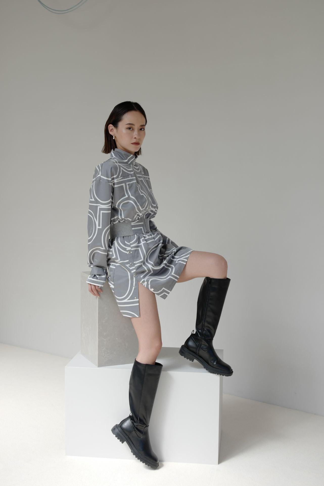 前襟拉鍊和按扣細節給人運動感十足的印象。 此外,尼龍材料的使用打造出👍的 ESIÓ 連身裙。 本季建議搭配長筒靴。