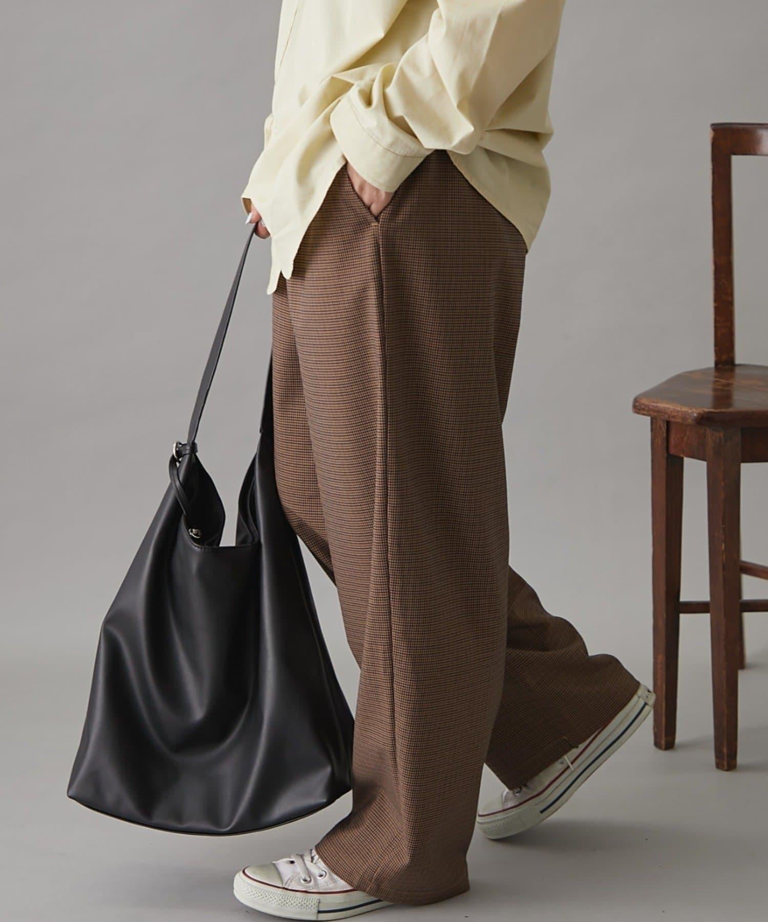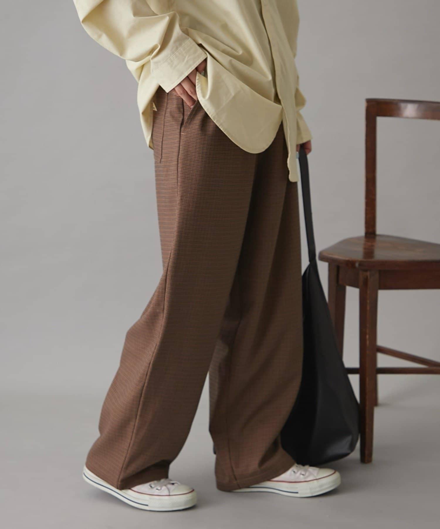 精緻的格紋圖案讓這款寬鬆長褲給人優雅輕鬆的印象。