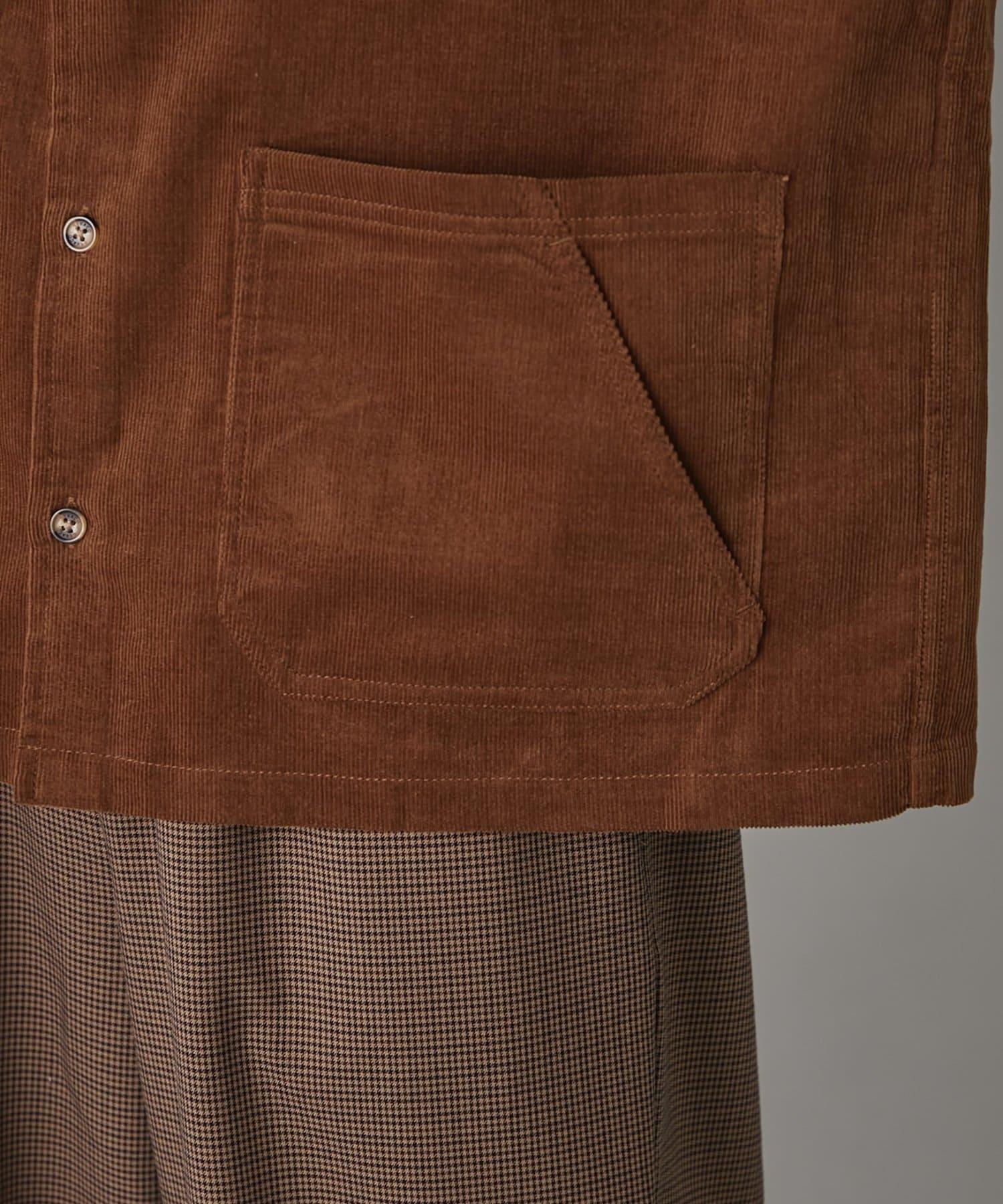 這款夾克採用保暖的燈芯絨面料,非常適合秋冬穿著。