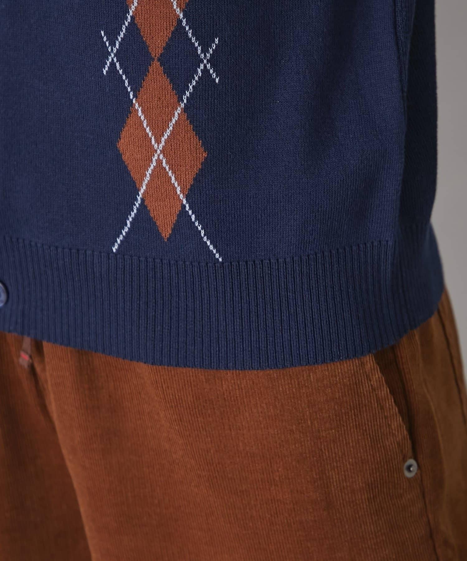 復古現代的菱格紋針織衫,帶著一絲成人的俏皮和智慧。