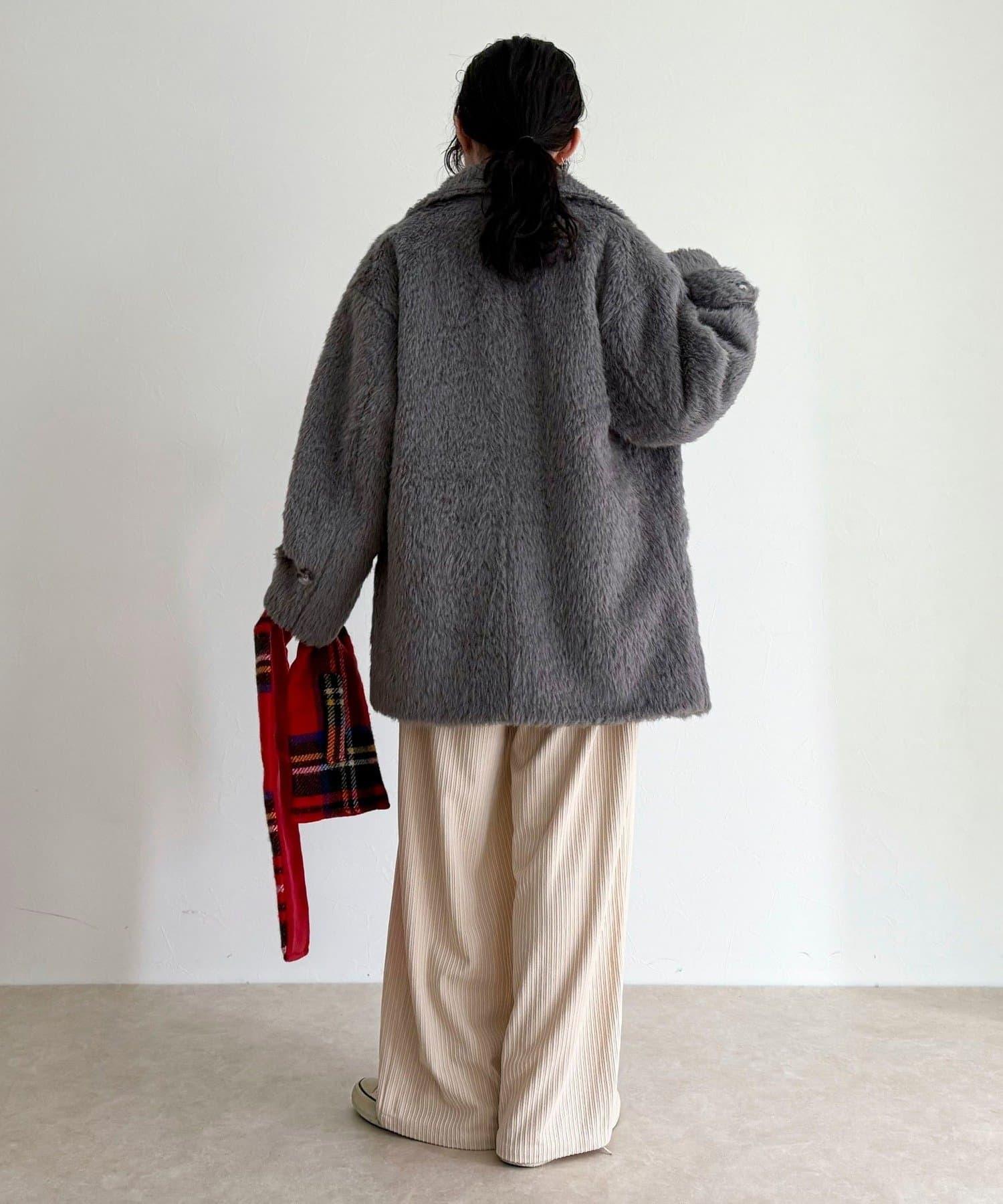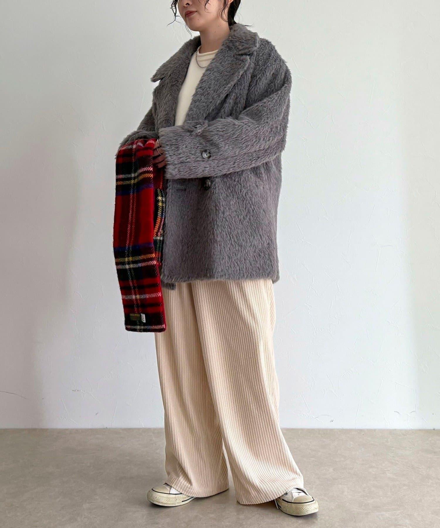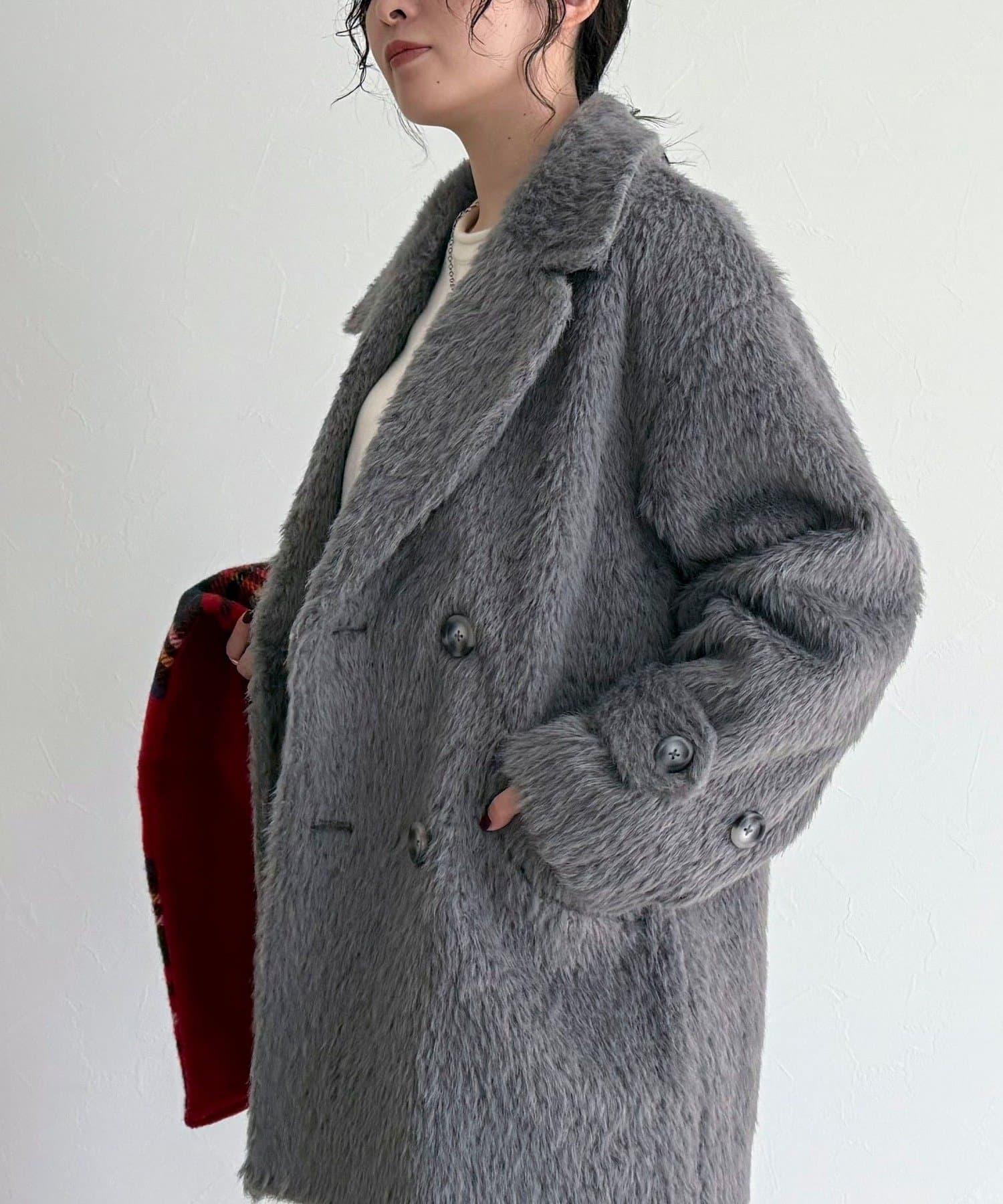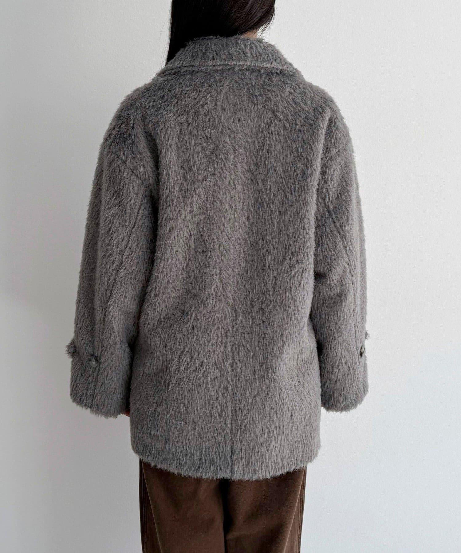 這款 P 形大衣採用蓬鬆的絨毛面料,增強了季節感。