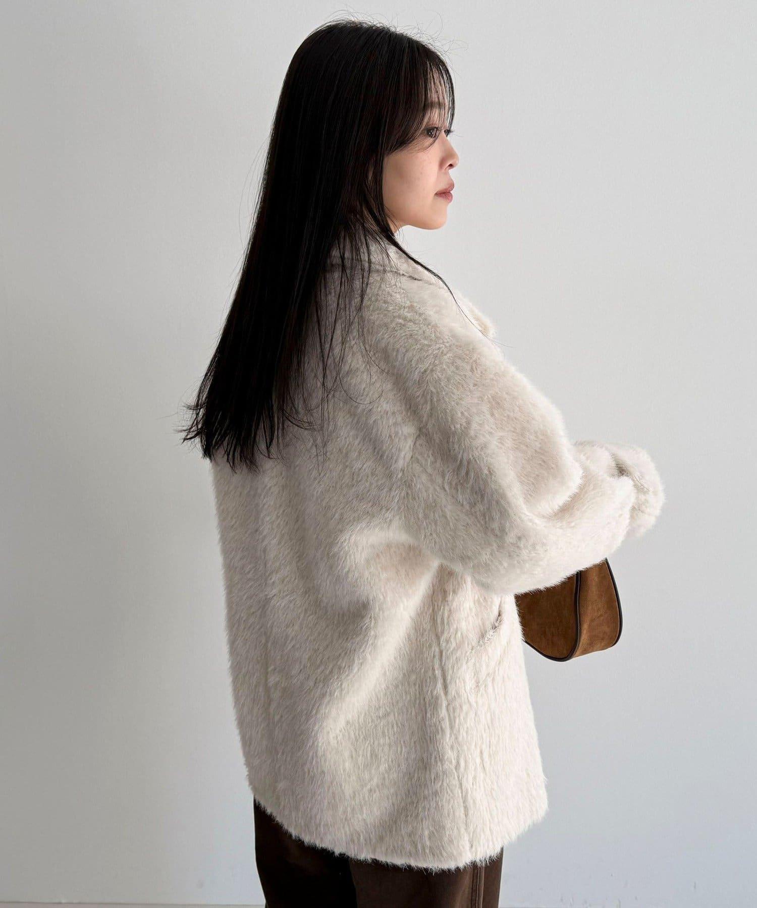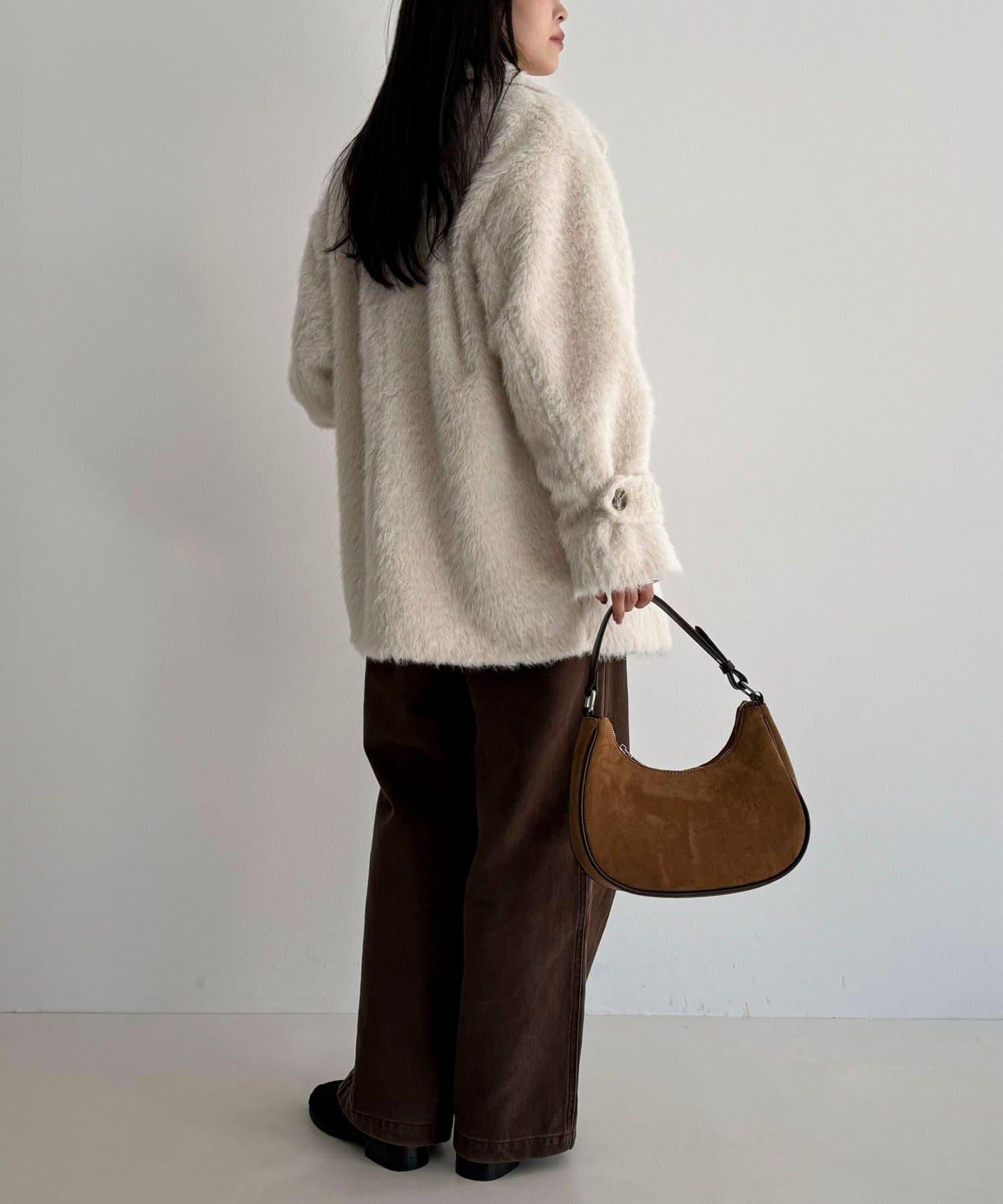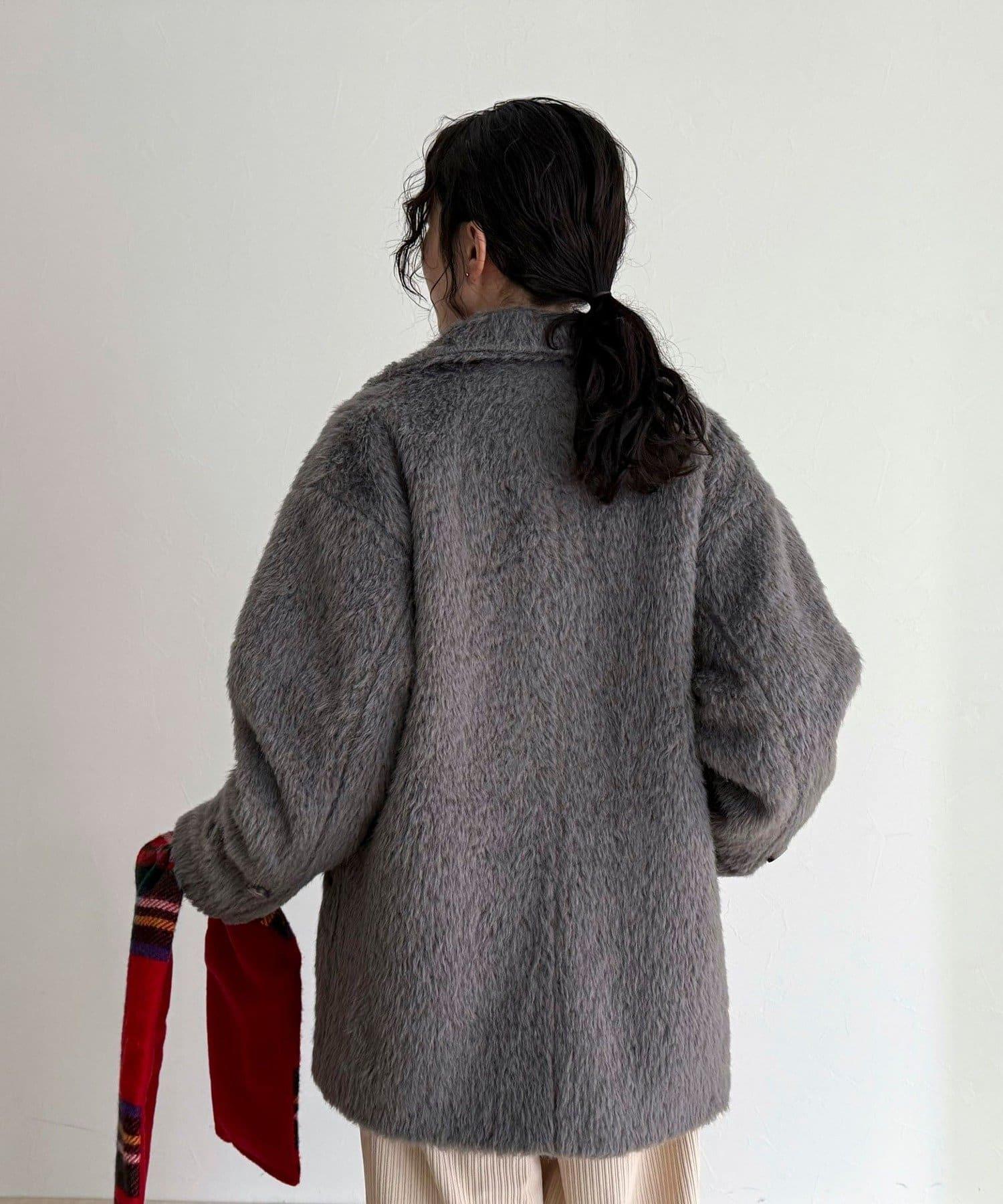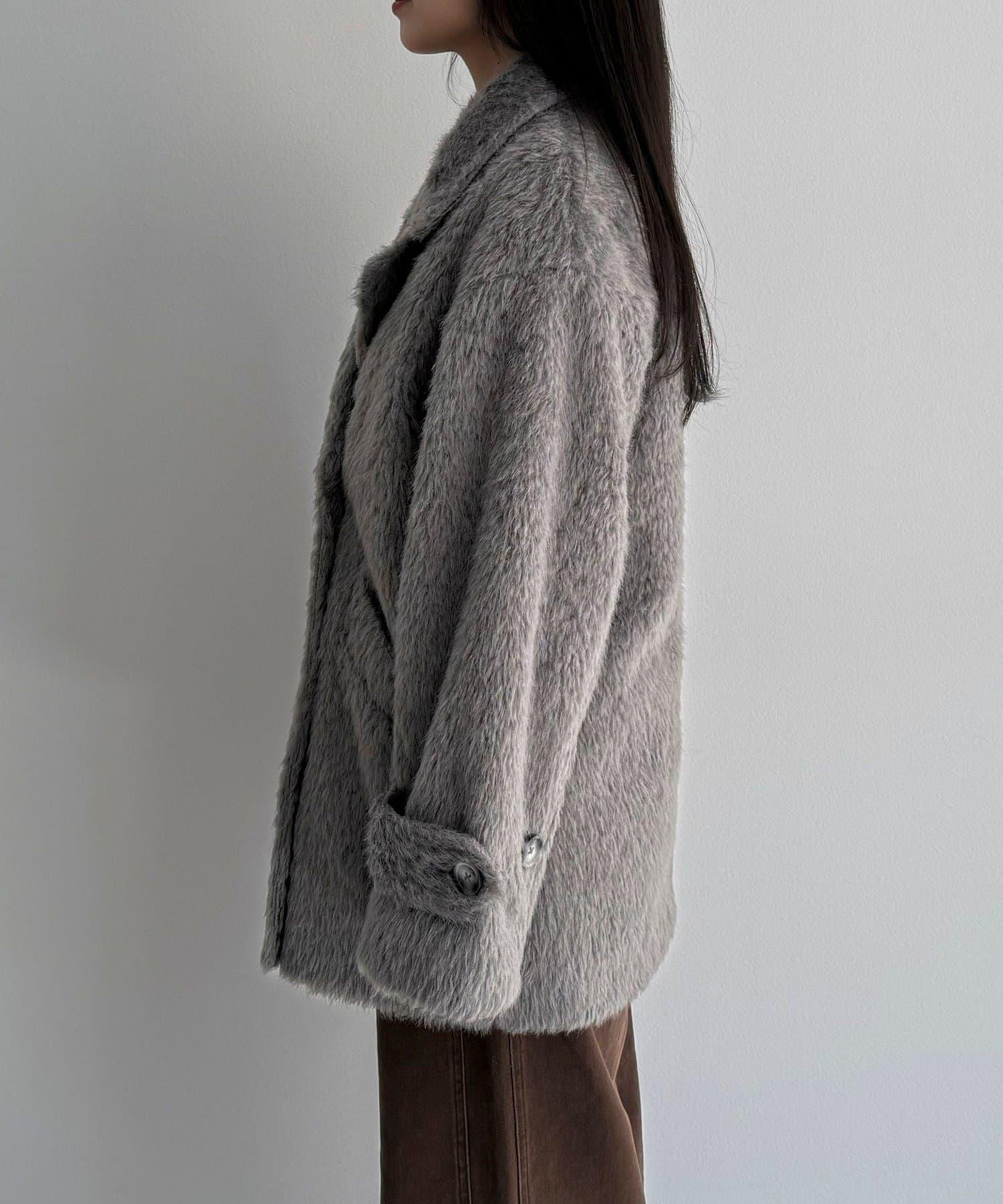 這款 P 形大衣採用蓬鬆的絨毛面料,增強了季節感。