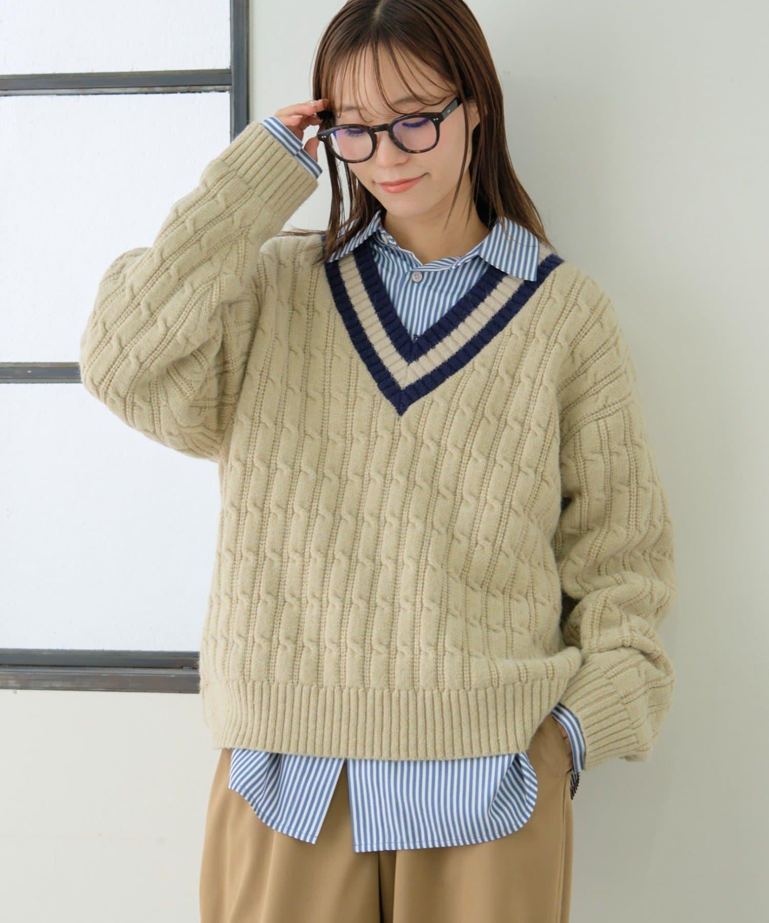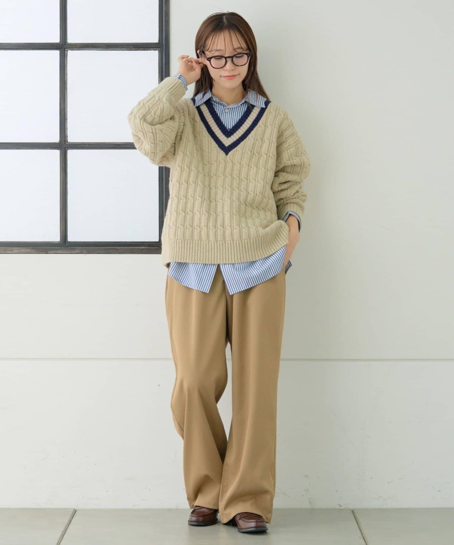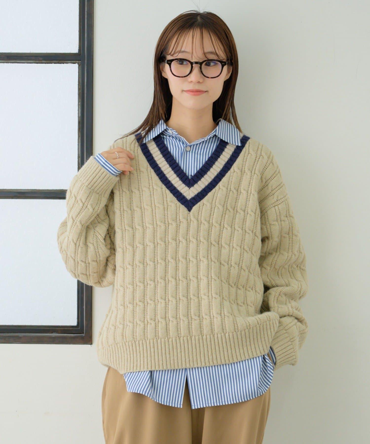V 領針織衫,休閒而優雅。