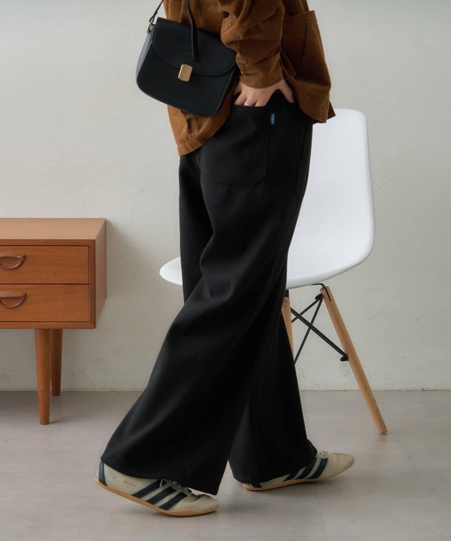 長褲採用優雅的仿毛面料剪裁而成。