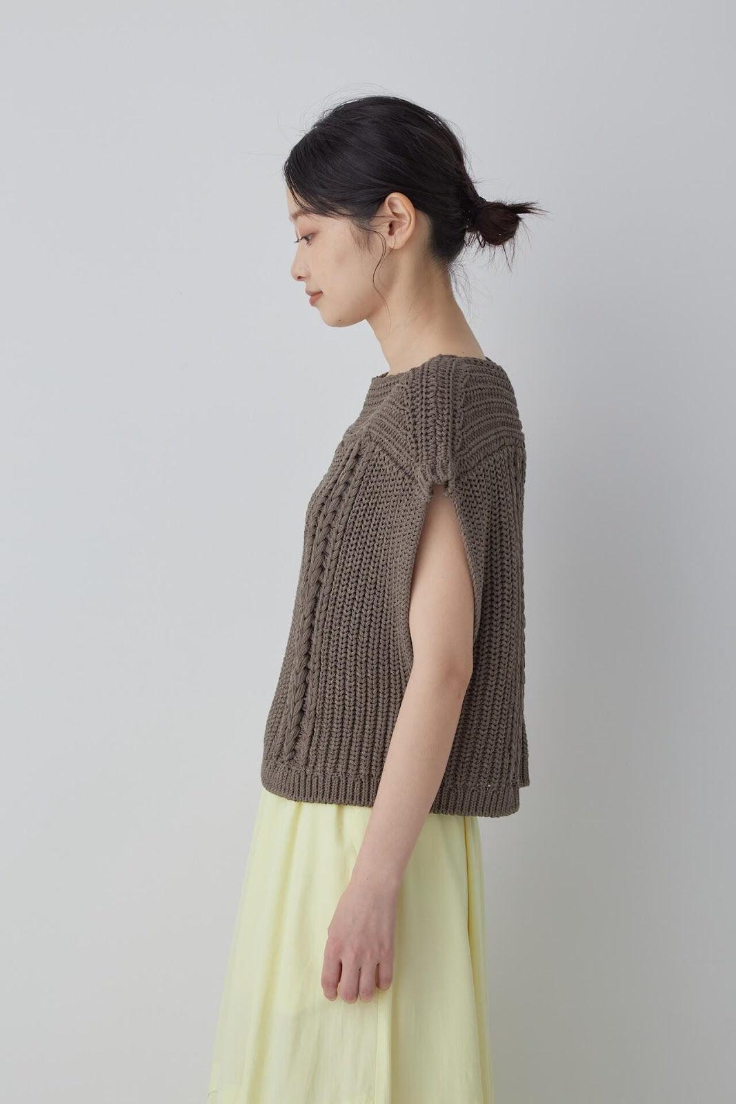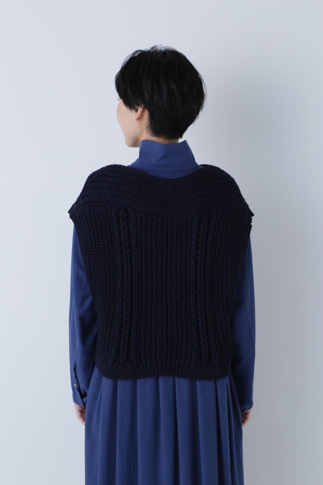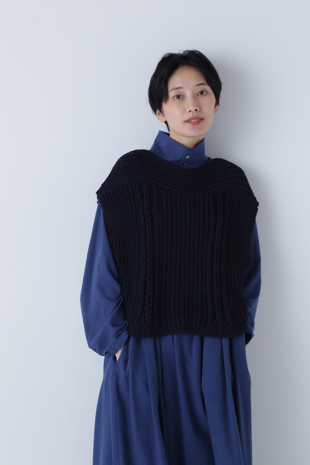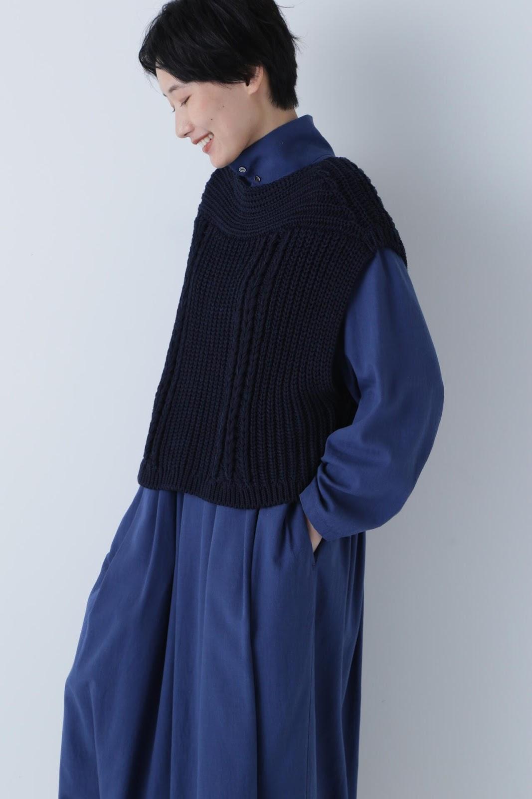 輕鬆享受層次感的針織馬甲 [設計要點] 這款單面針織的短款馬甲帶有大面積的梅花圖案。針織面料的針距手感不同,但都是單面編織。針織面料的針距不同,但都是單面編織,因此成品整潔乾淨。通過在多股有機棉中加入彈力紗,減輕了重量。天然材料具有優雅的光澤。建議搭配] 稍短的長度和輕盈的質地讓您可以享受多種疊穿選擇,比如疊穿在連身裙上,或者塞進襯衫裡。在炎熱的季節,也建議整齊地單穿。