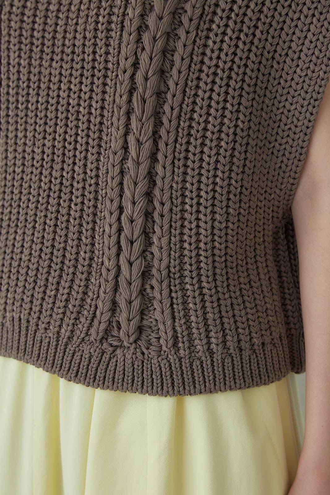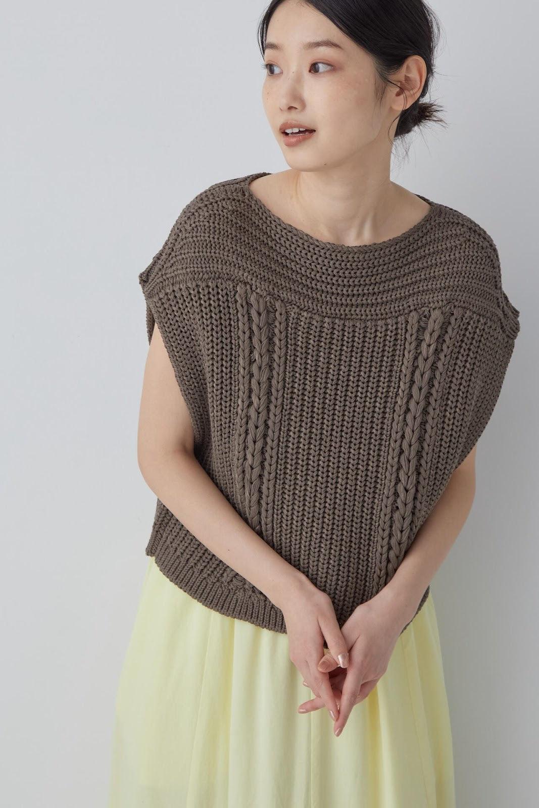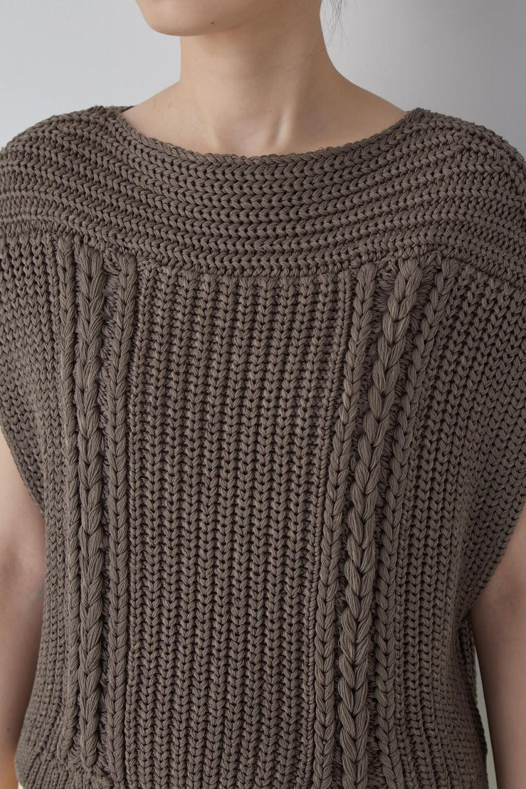 輕鬆享受層次感的針織馬甲 [設計要點] 這款單面針織的短款馬甲帶有大面積的梅花圖案。針織面料的針距手感不同,但都是單面編織。針織面料的針距不同,但都是單面編織,因此成品整潔乾淨。通過在多股有機棉中加入彈力紗,減輕了重量。天然材料具有優雅的光澤。建議搭配] 稍短的長度和輕盈的質地讓您可以享受多種疊穿選擇,比如疊穿在連身裙上,或者塞進襯衫裡。在炎熱的季節,也建議整齊地單穿。