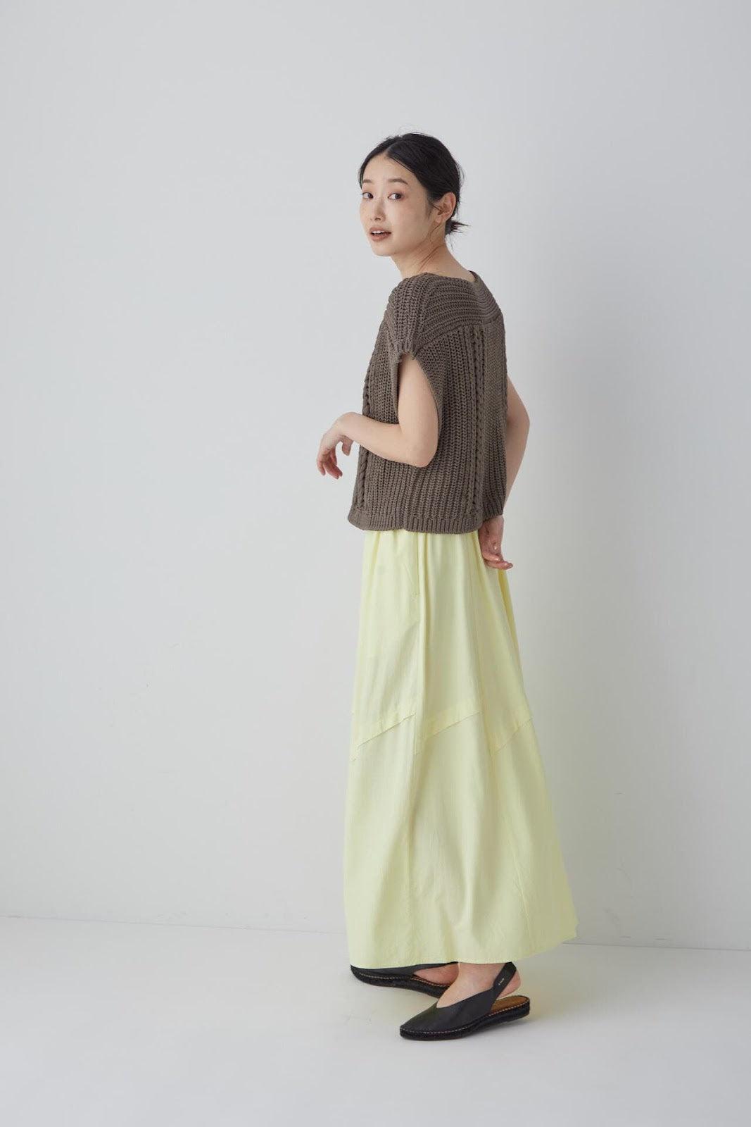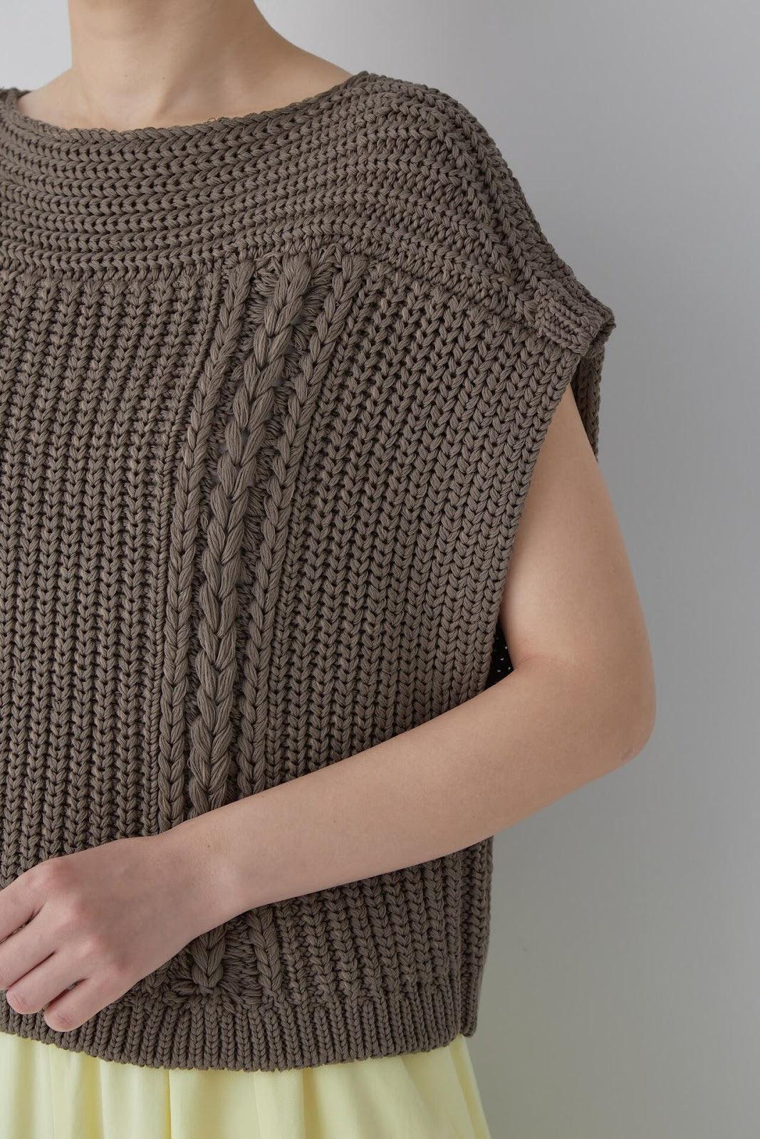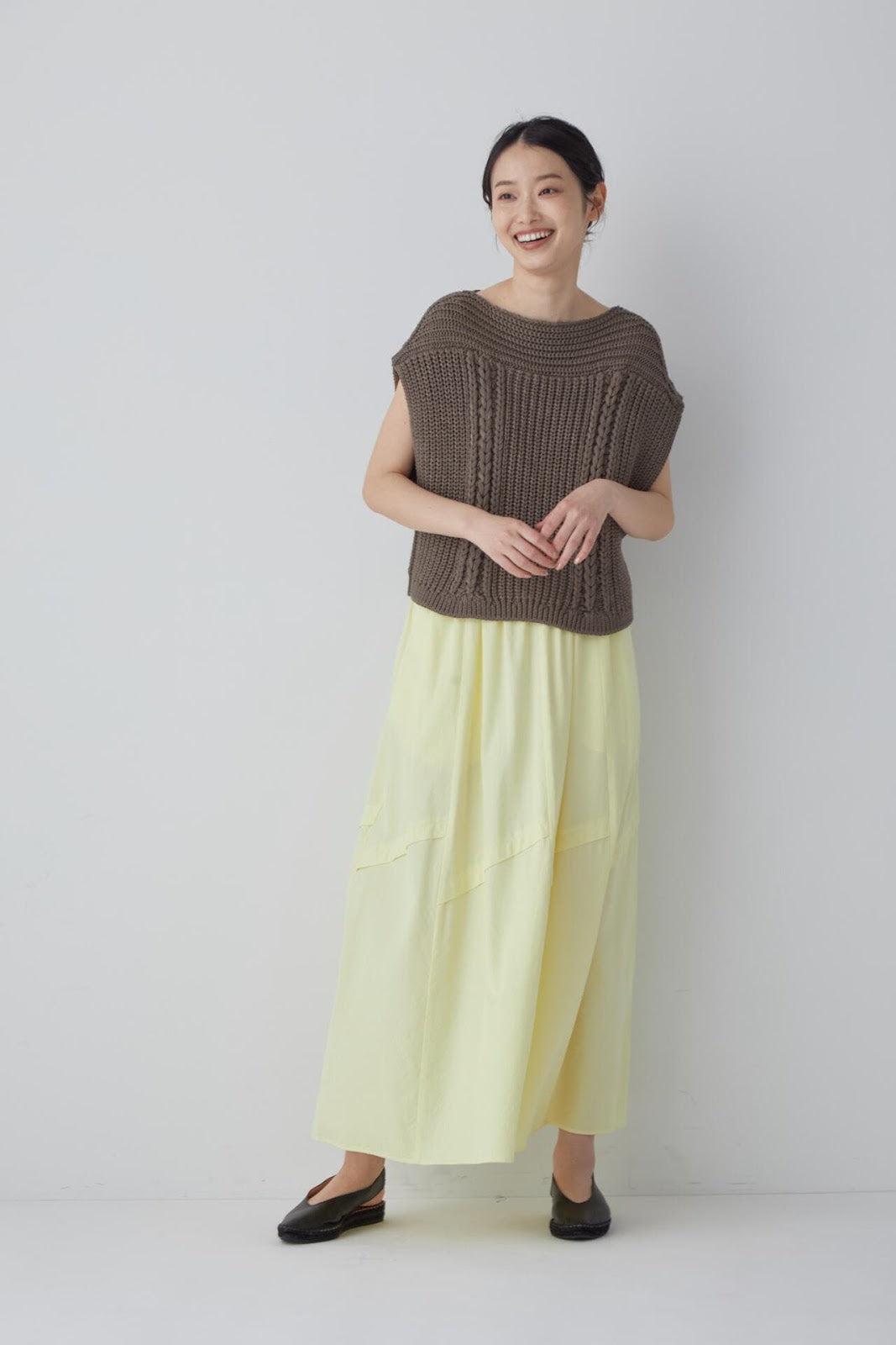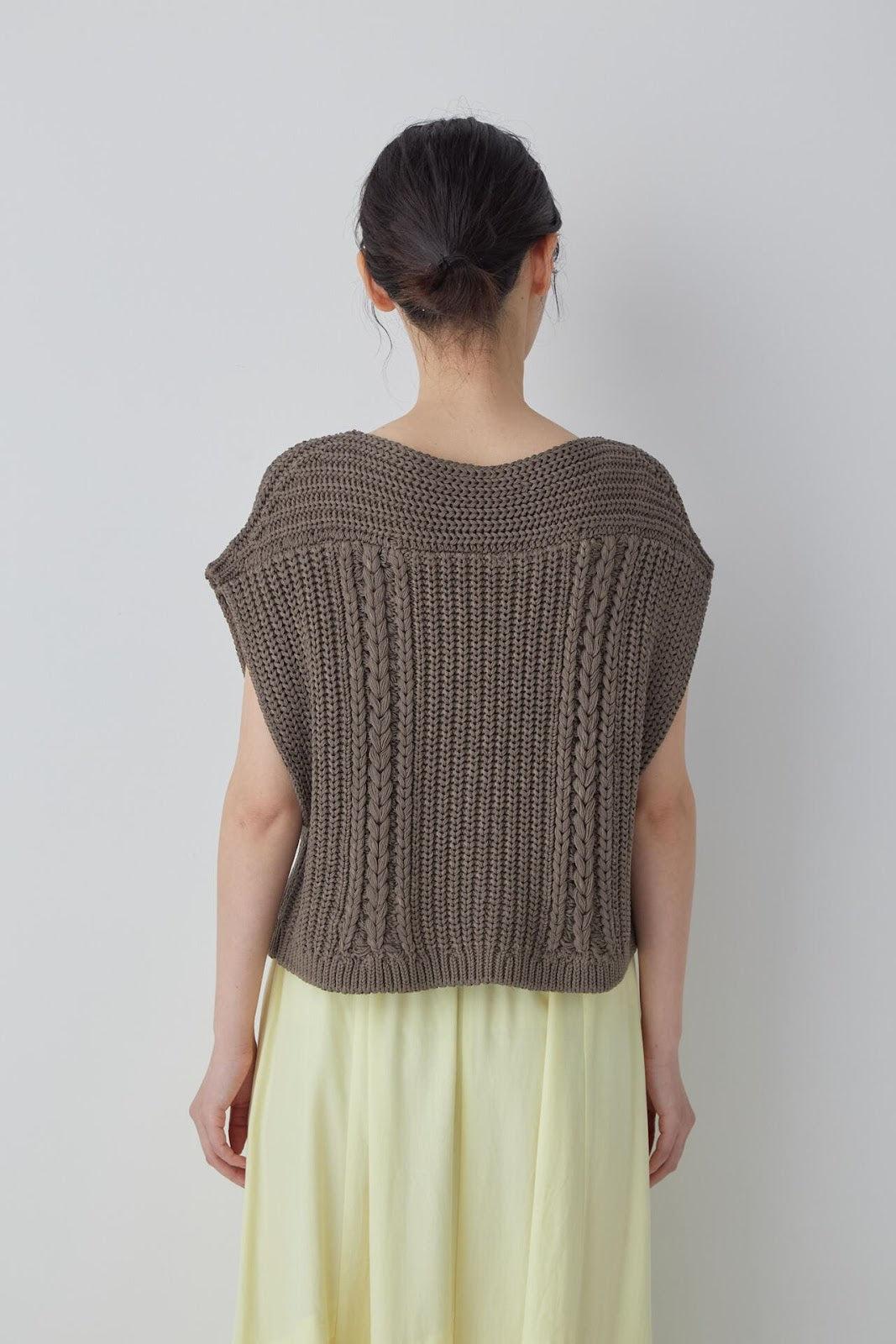 輕鬆享受層次感的針織馬甲 [設計要點] 這款單面針織的短款馬甲帶有大面積的梅花圖案。針織面料的針距手感不同,但都是單面編織。針織面料的針距不同,但都是單面編織,因此成品整潔乾淨。通過在多股有機棉中加入彈力紗,減輕了重量。天然材料具有優雅的光澤。建議搭配] 稍短的長度和輕盈的質地讓您可以享受多種疊穿選擇,比如疊穿在連身裙上,或者塞進襯衫裡。在炎熱的季節,也建議整齊地單穿。