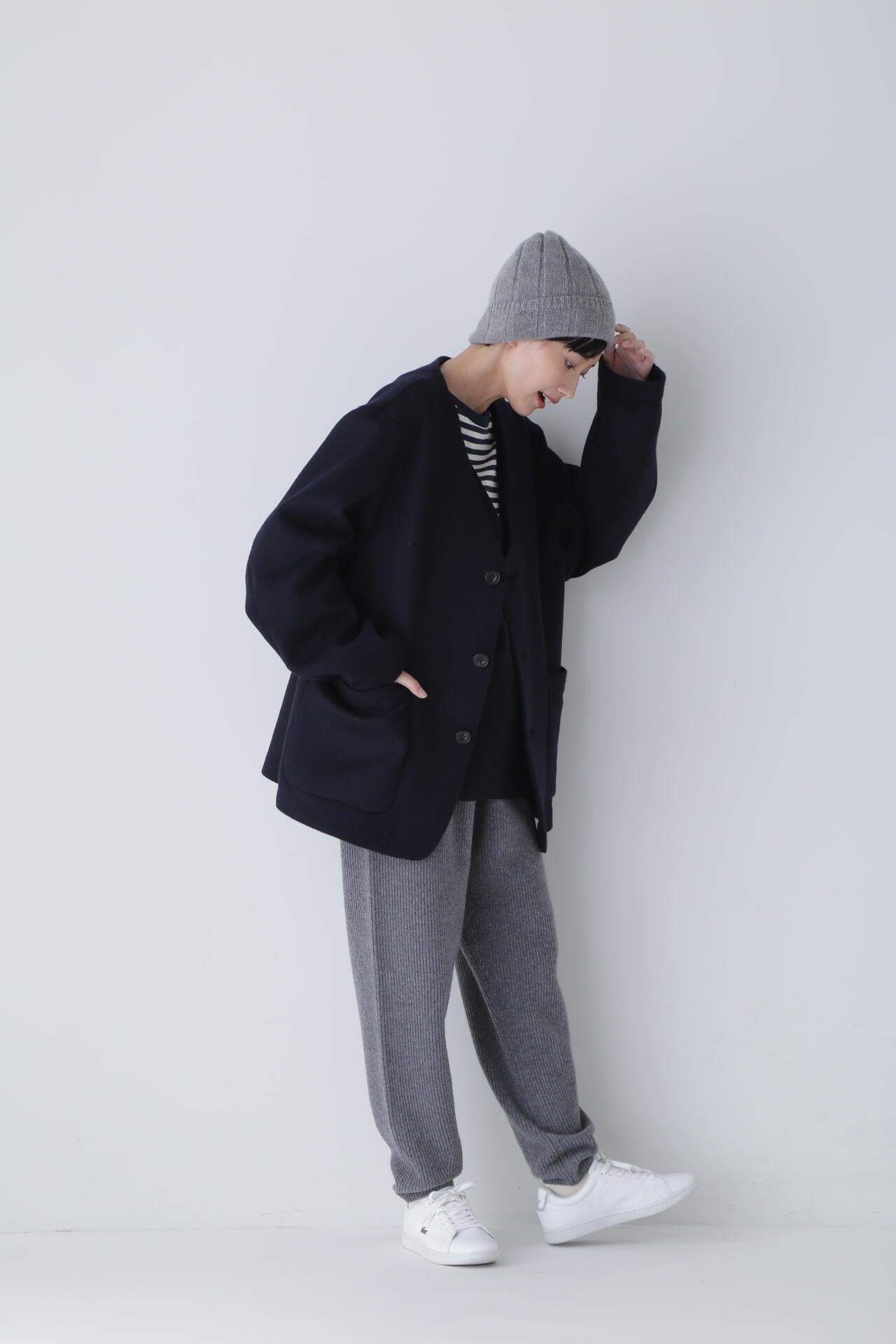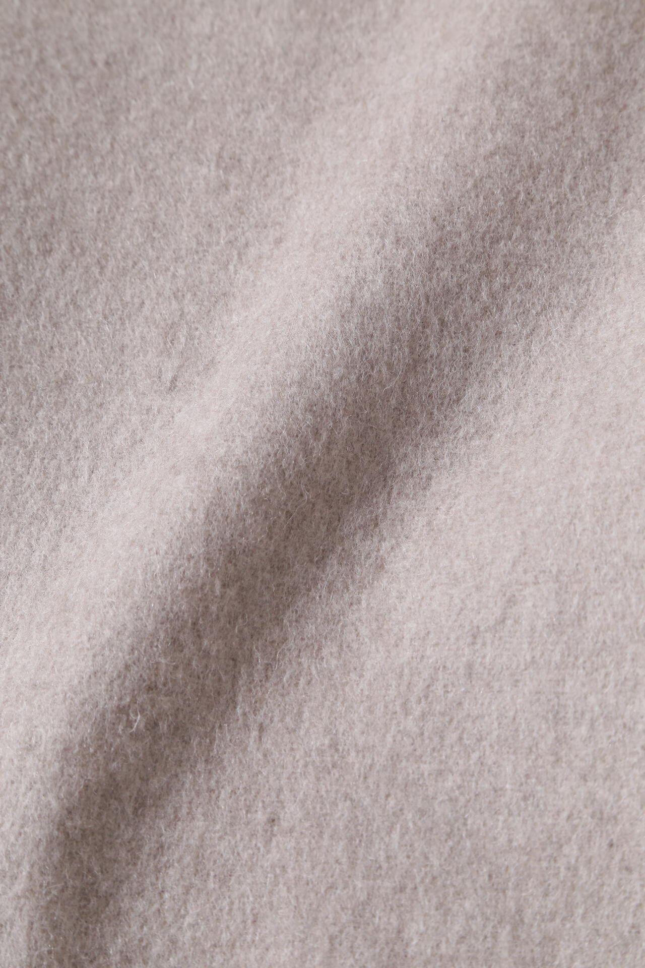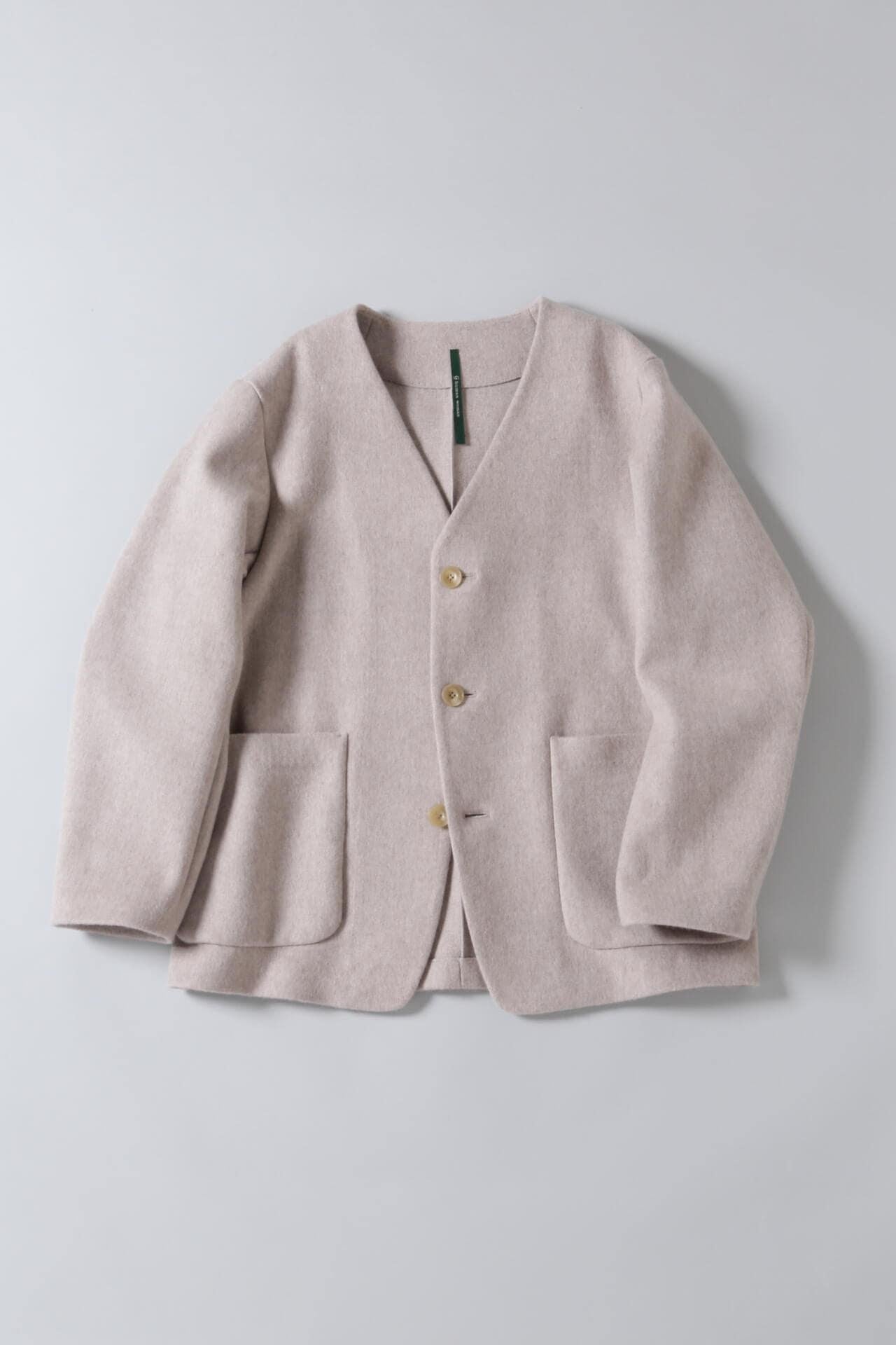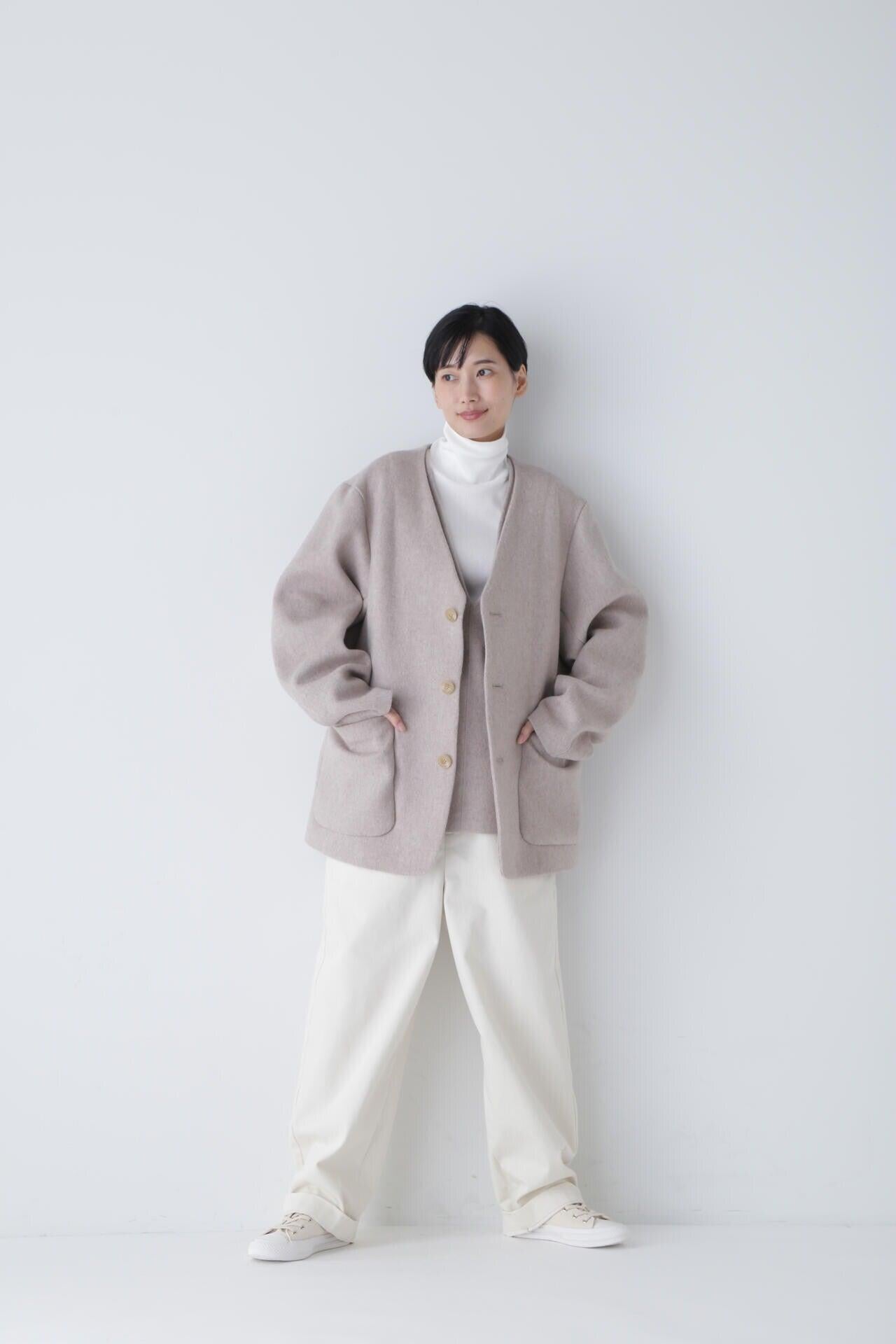 極簡設計夾克,採用優質再生羊毛剪裁而成 [設計要點] 這款夾克採用緊繃的雙面面料製成,尺寸偏大,非常合身。成品尺寸男女皆宜。夾克無襯裡,採用輕質剪裁,縫合處非常薄,使用的是僅有的幾臺特殊縫紉機。夾克採用特殊品質的再生羊毛製成,這種羊毛是用剩餘的優質羊毛機和剩餘的羊毛線回收製成的。推薦搭配:搭配針織長褲,風格精緻、輕鬆;或者搭配略顯女性化的裙子或連衣裙,外面迅速套上一件男裝風格的超大夾克。