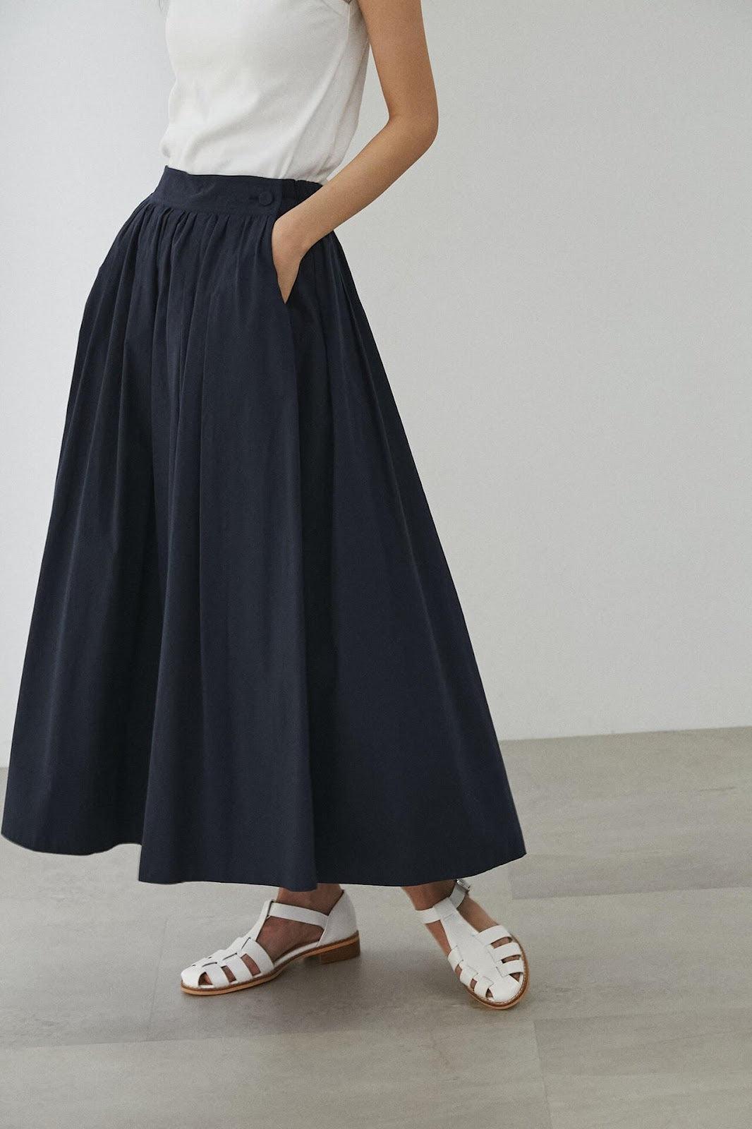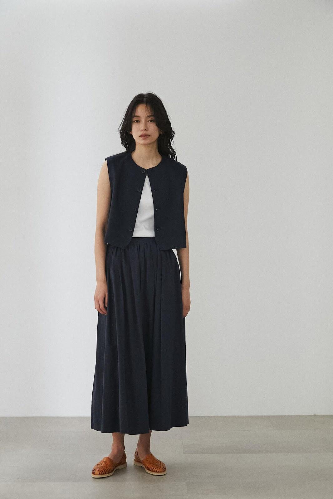 輕薄型褶襉喇叭裙,面料富有表現力,盡顯優雅氣質 [設計要點] 這款裙子將褶襉和褶皺結合在一起,營造出體積感。腰部的紐扣位置可以調節,背部的鬆緊設計給人一種輕鬆的感覺。裙子由棉質打字機制成,棉質打字機是一種有機材料,採用傳統的近江染色技術進行加工,可固定褶皺形狀,具有輕鬆的感覺。腰部的拼接設計突出了風格,因此我們也建議將上衣穿在裡面。可與相同面料的罩衫搭配穿著。還建議搭配小號馬甲。