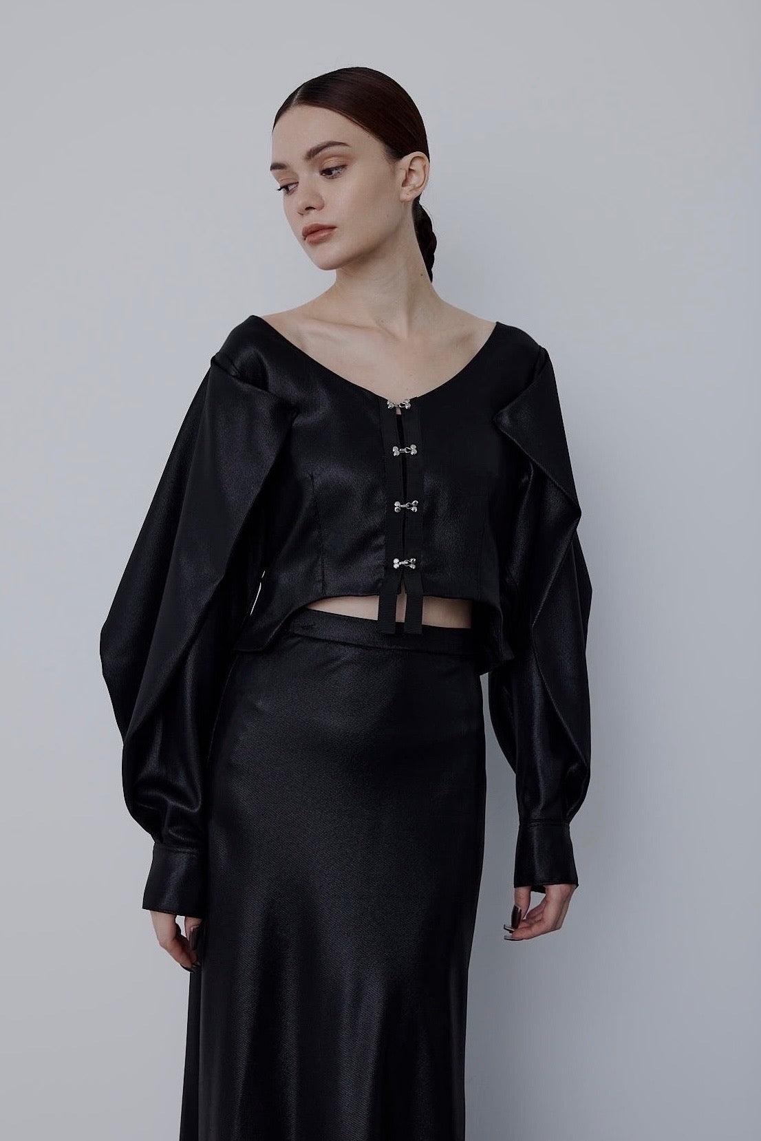 經過特殊處理的面料光澤細膩,加上精心設計的裝飾,無需配飾即可營造時尚氛圍。