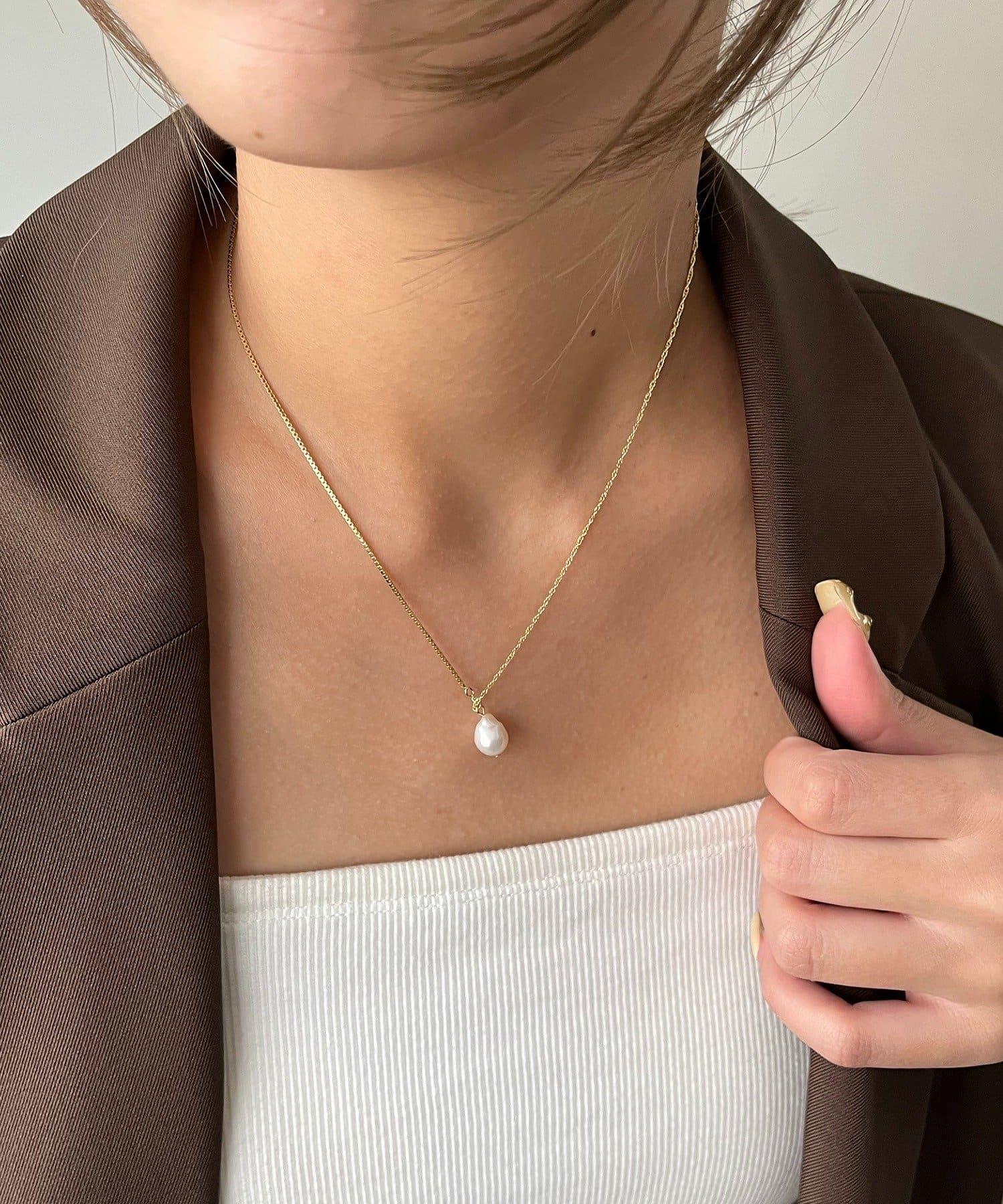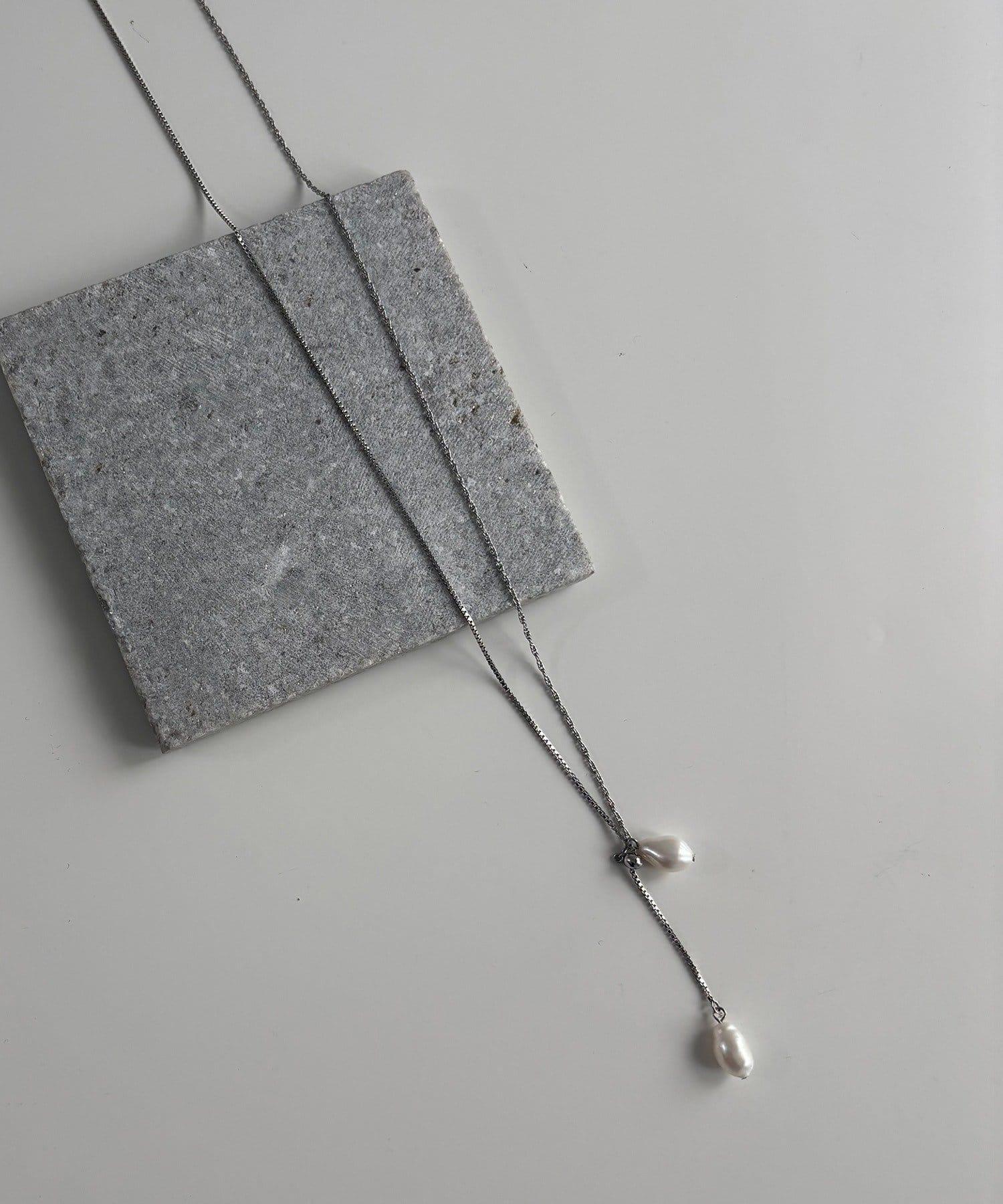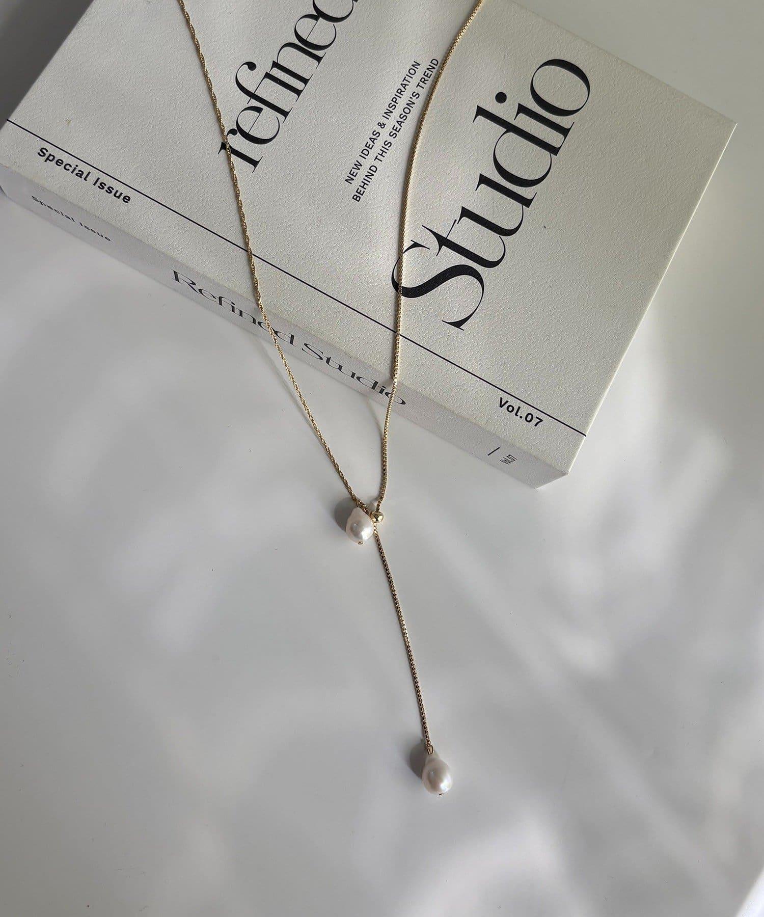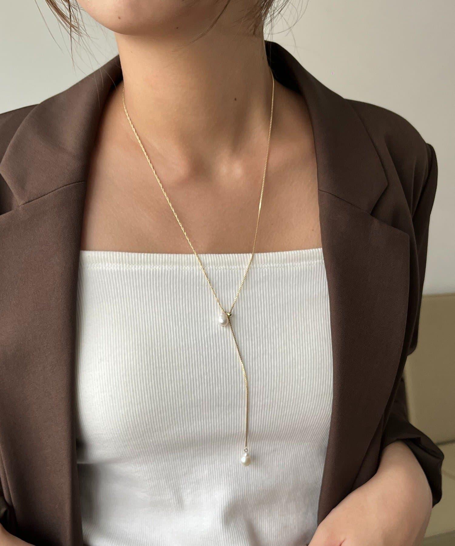 Y 形項鍊,淡水珍珠質地柔和自然。
