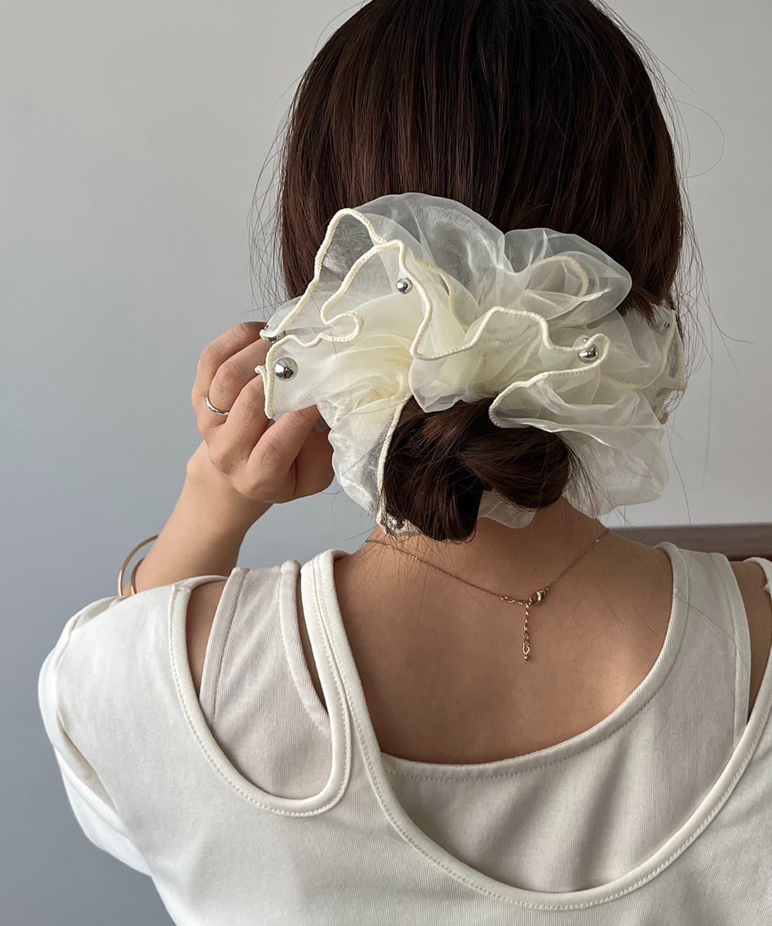 《GOLDY/ゴールディ》絲綢銀色圓點發飾