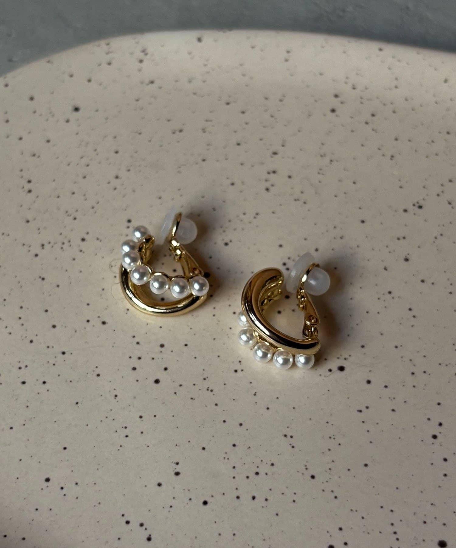 GOLDY/ゴールディ 雙層珍珠組合耳夾