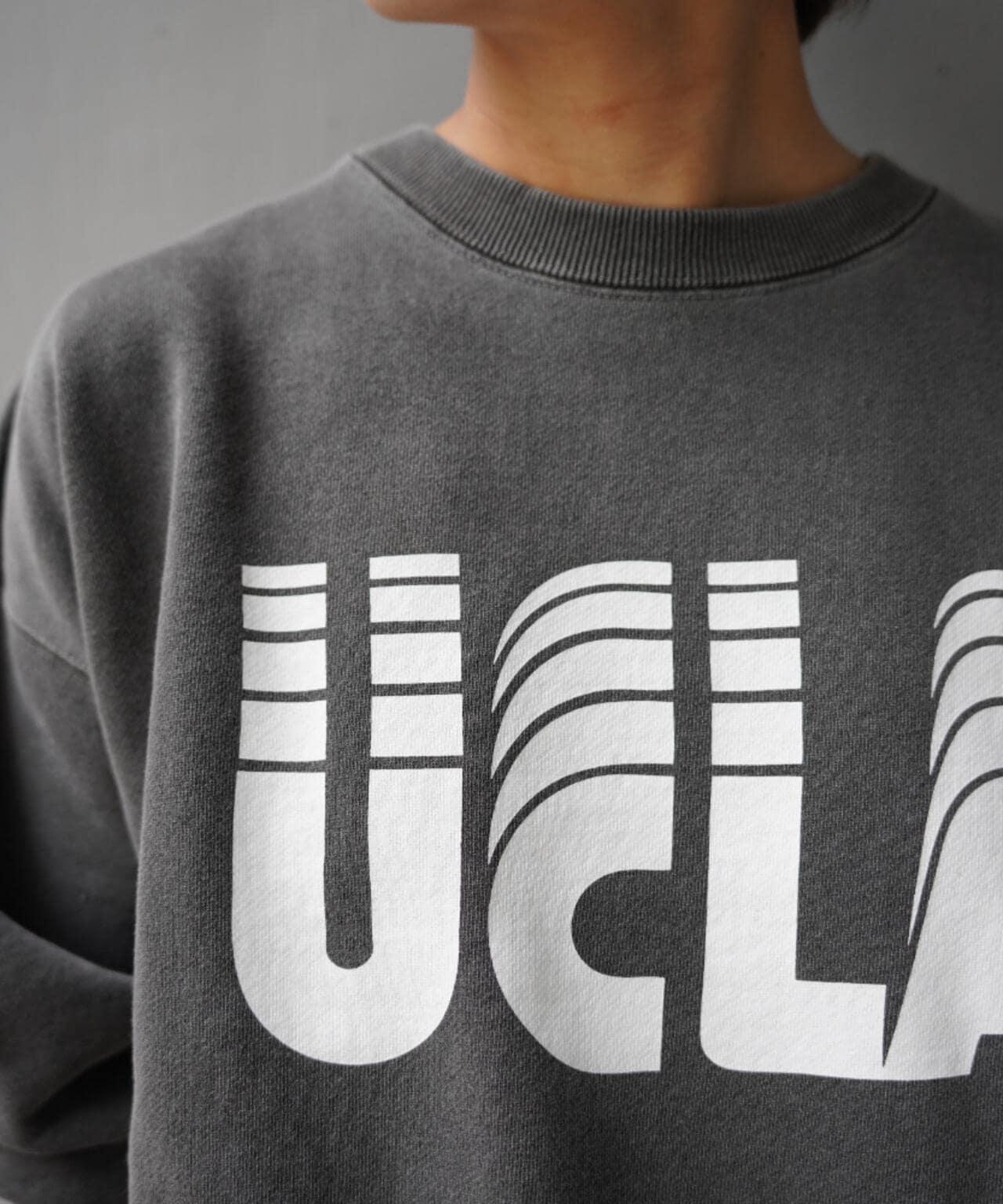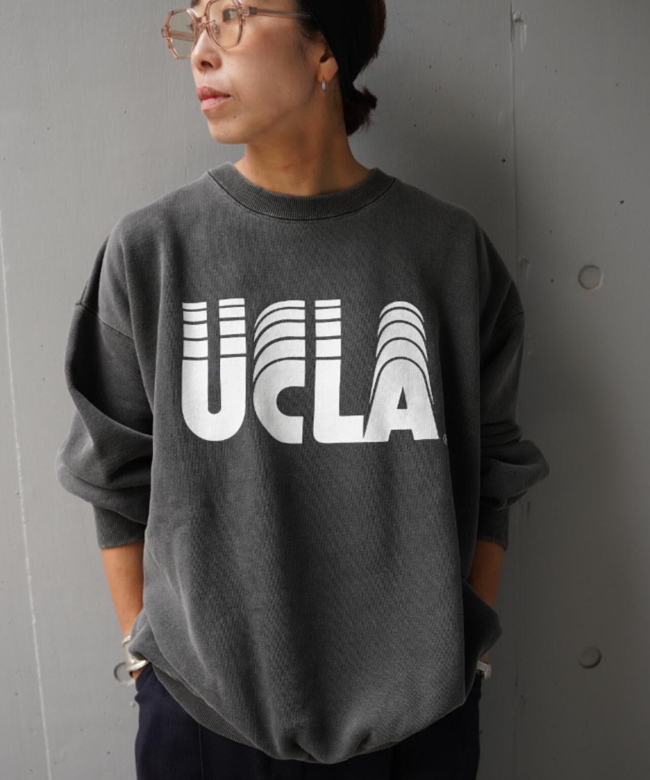 B'2nd 特別定製運動衫,正面印有學院標誌,背面印有顏料 UCLA 標誌。復古風設計,大氣十足。背毛材質,任何季節都可以長期穿著。XL 尺寸男士也可穿著。GOOD ROCK SPEED] 美式圖案,復古質感。它有一種破舊的復古感,但不知為何看起來仍有些時髦。既尊重過去的美好時光,又重視現在。每件產品的設計都考慮到了這一點。