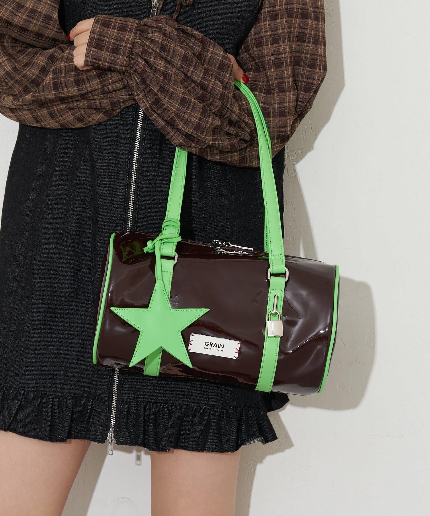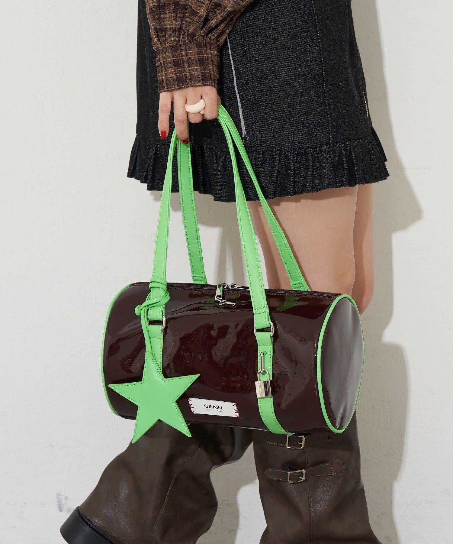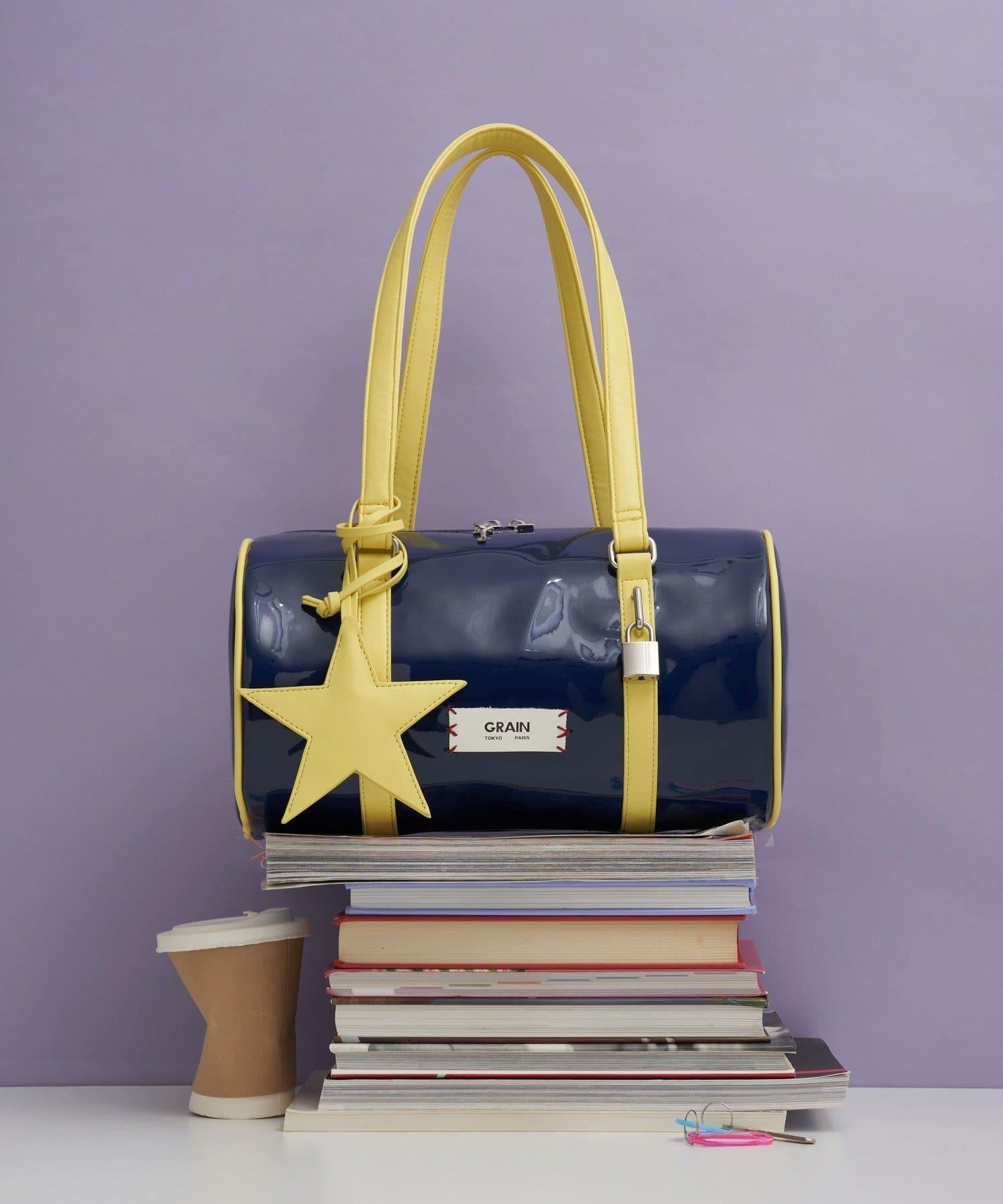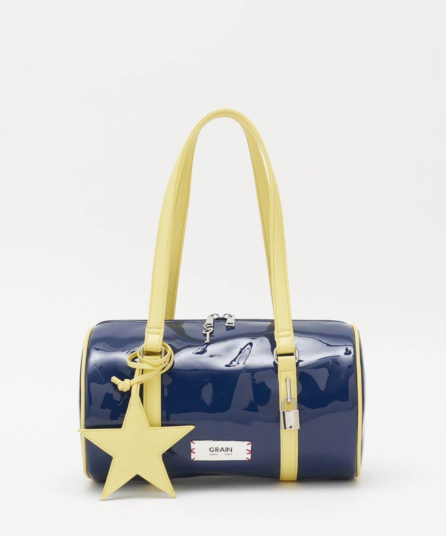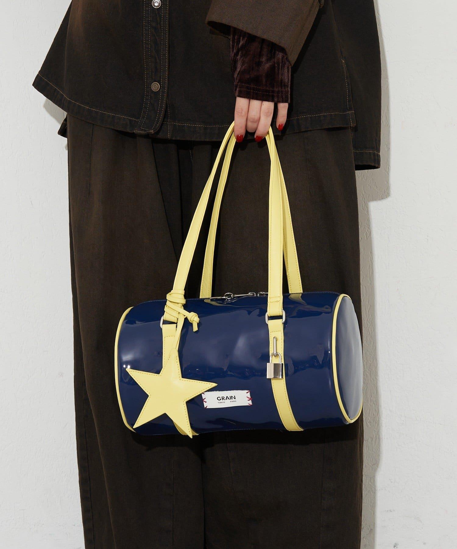 【GRAIN/グレイン】帶星形掛飾漆皮圓筒波士頓包