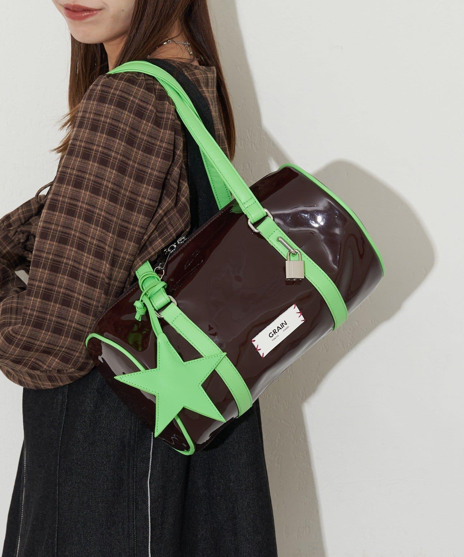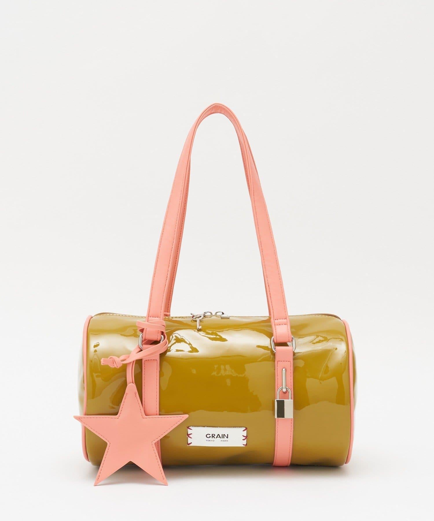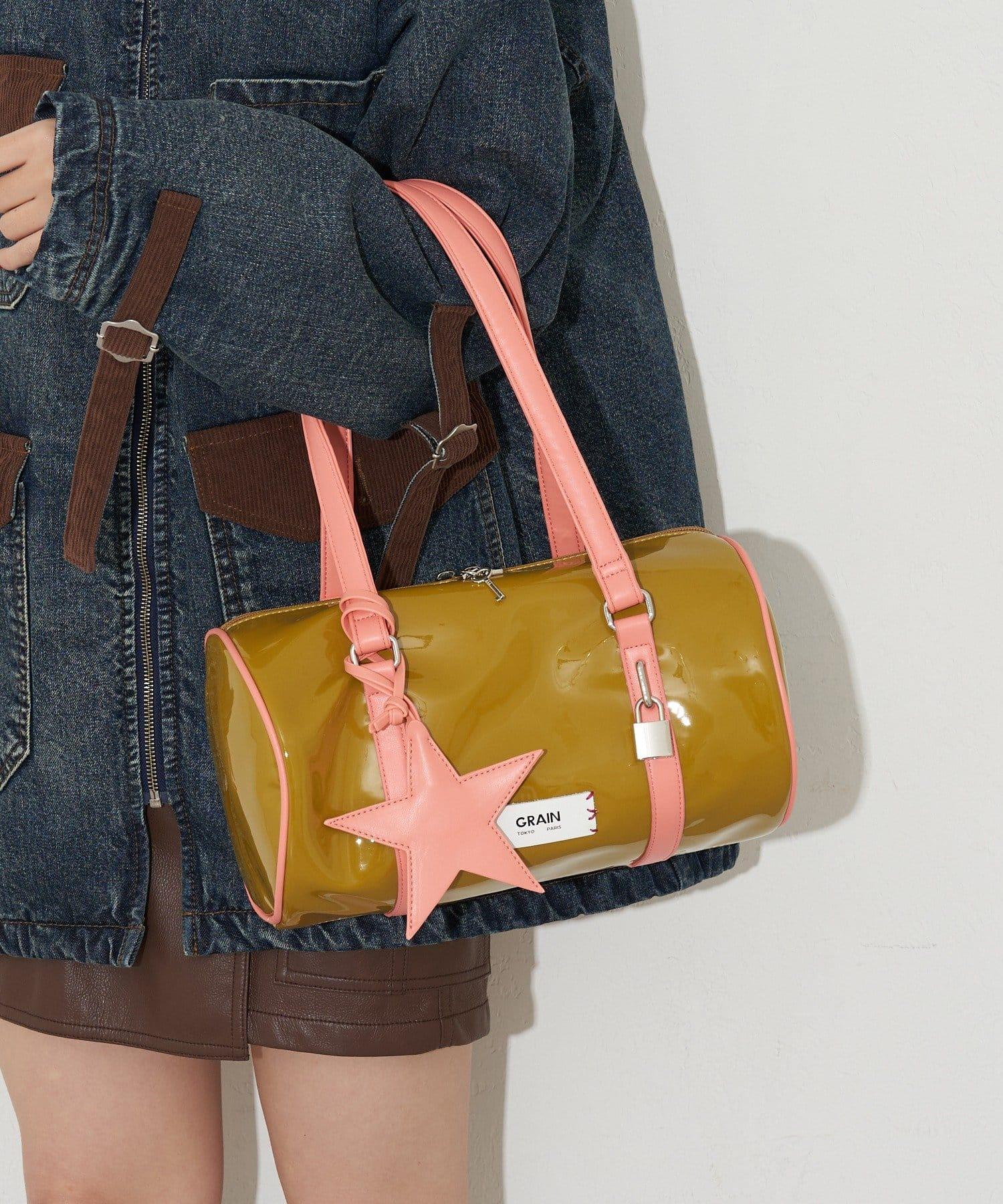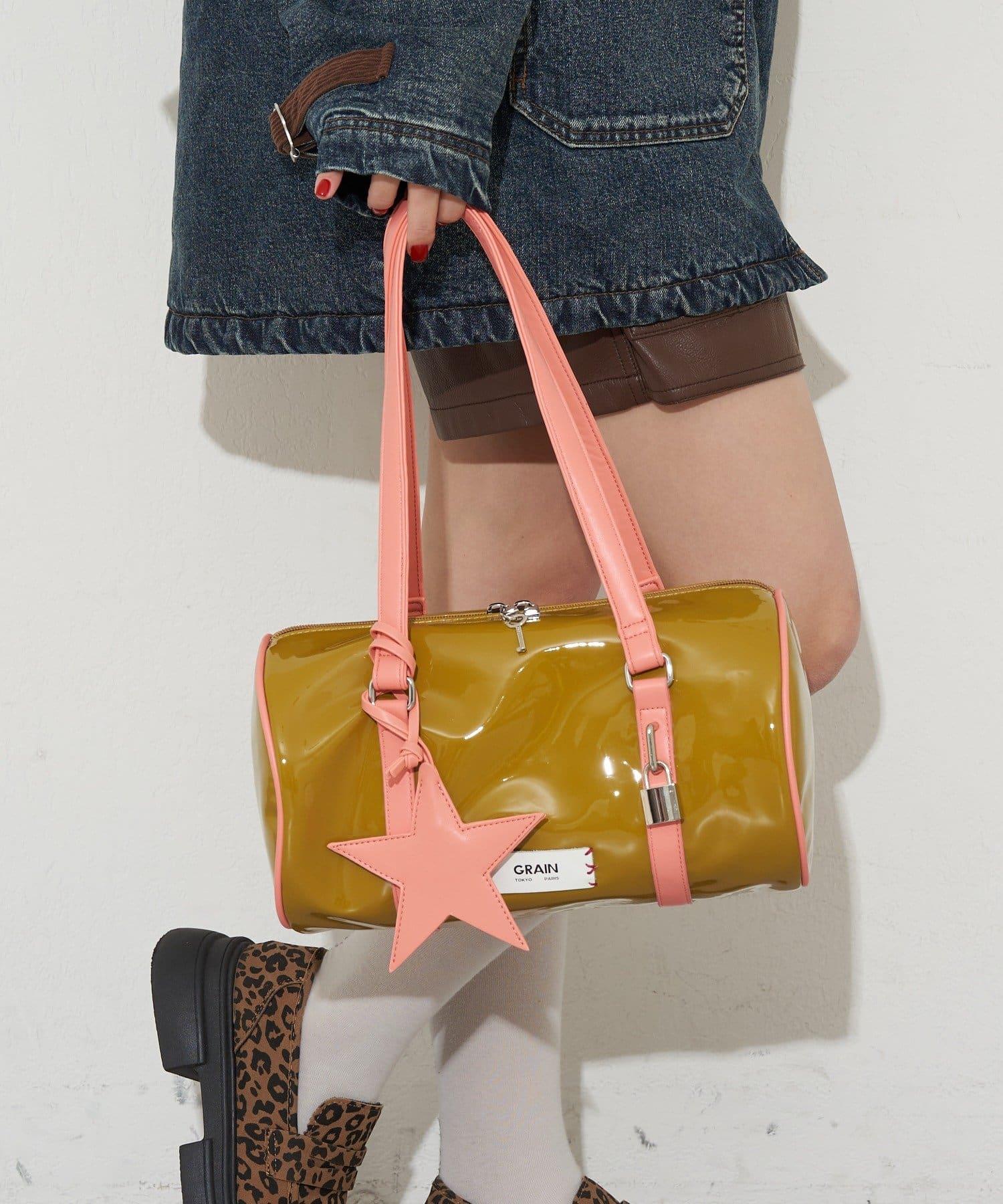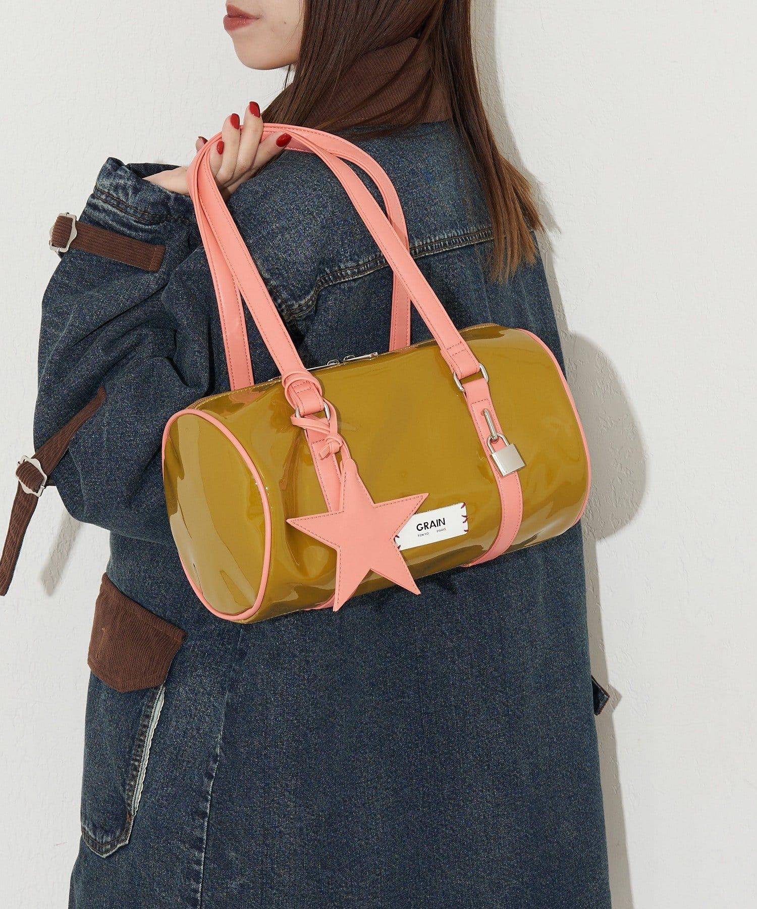 【GRAIN/グレイン】帶星形掛飾漆皮圓筒波士頓包