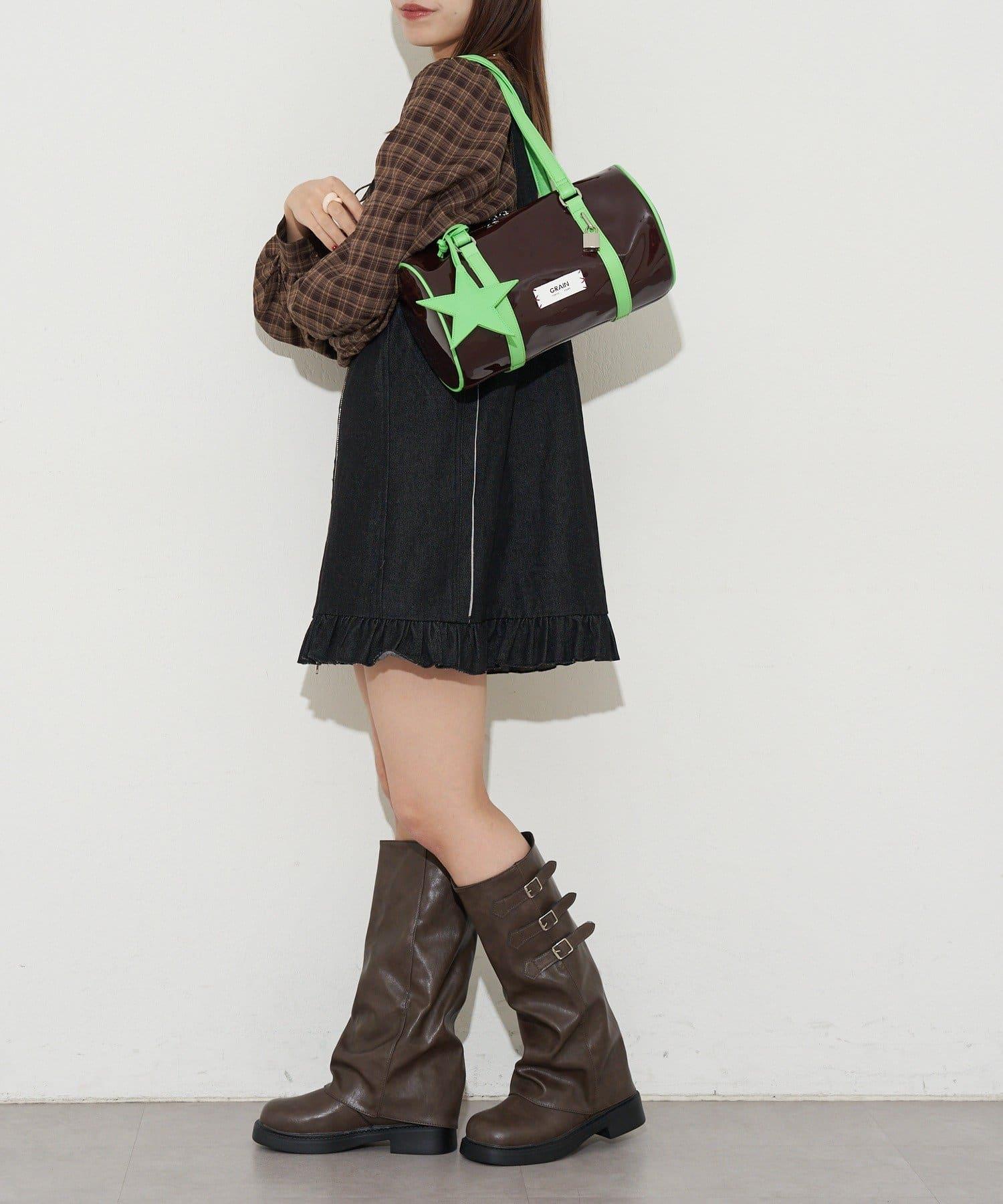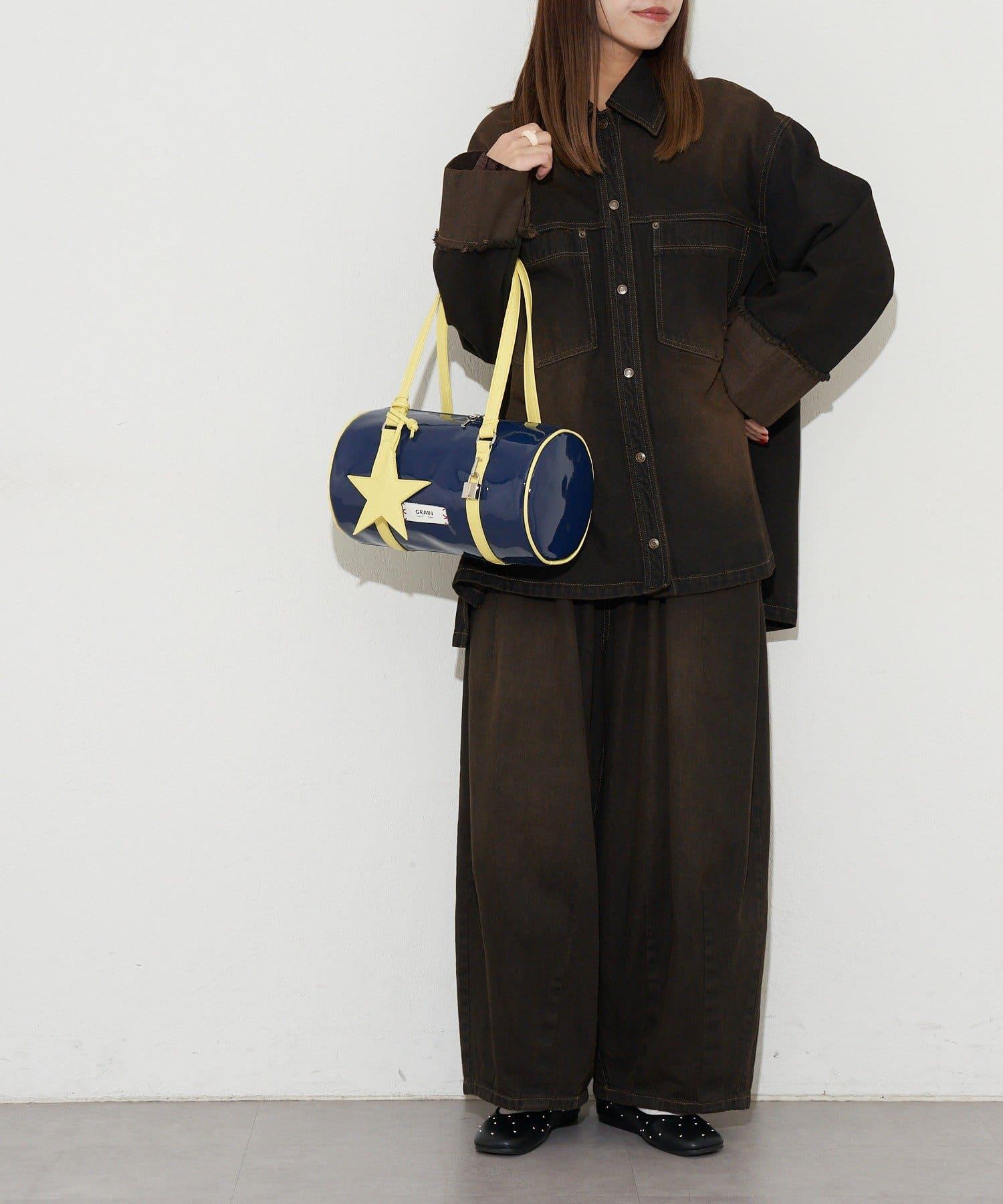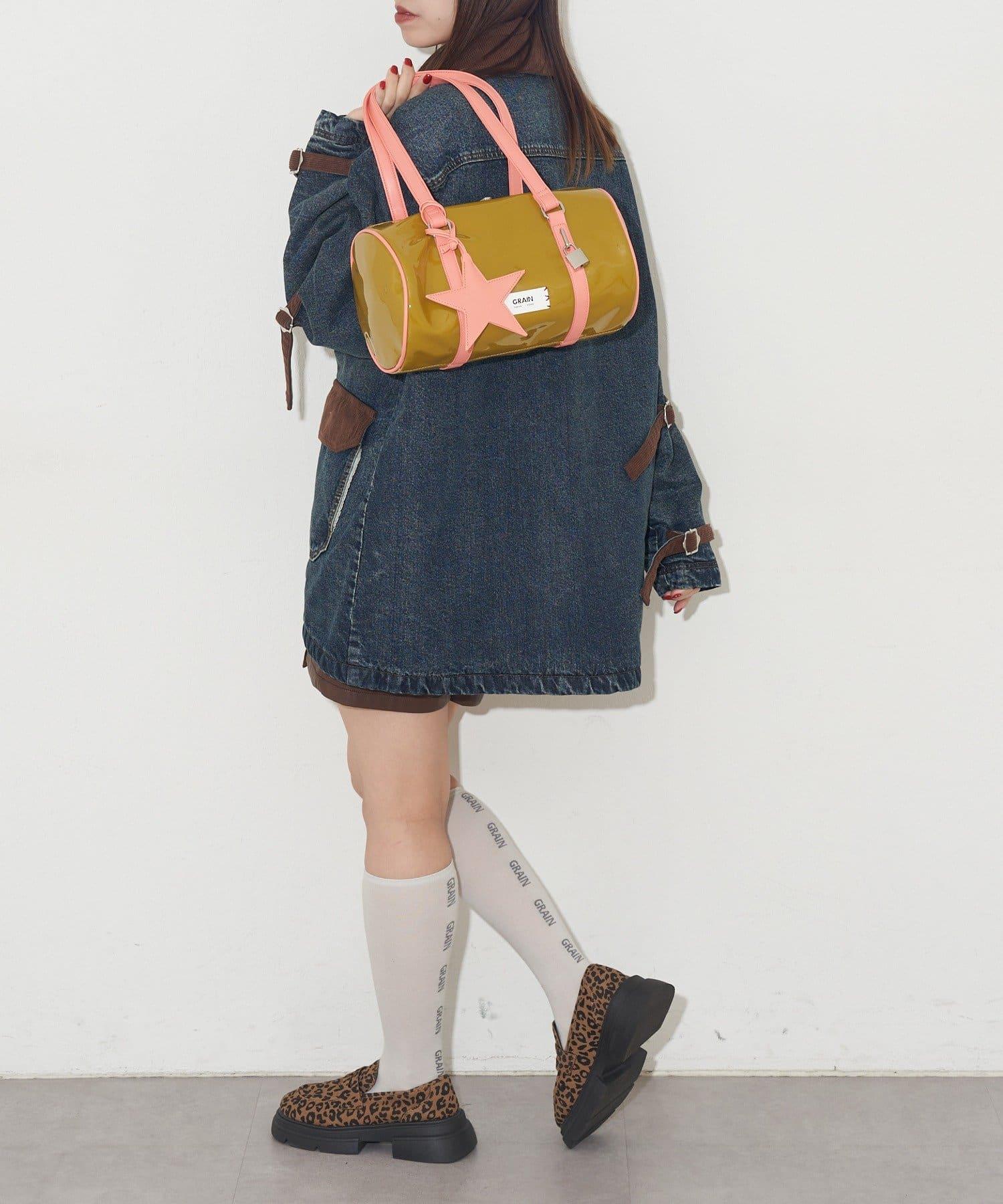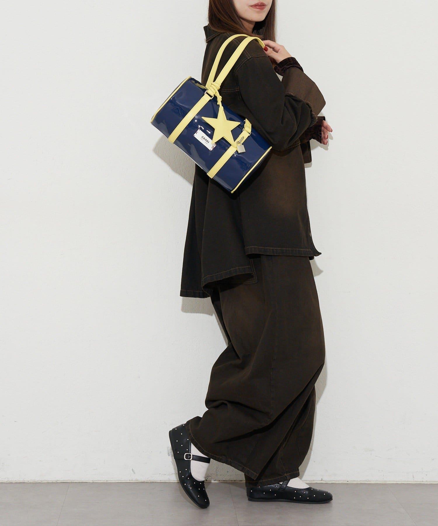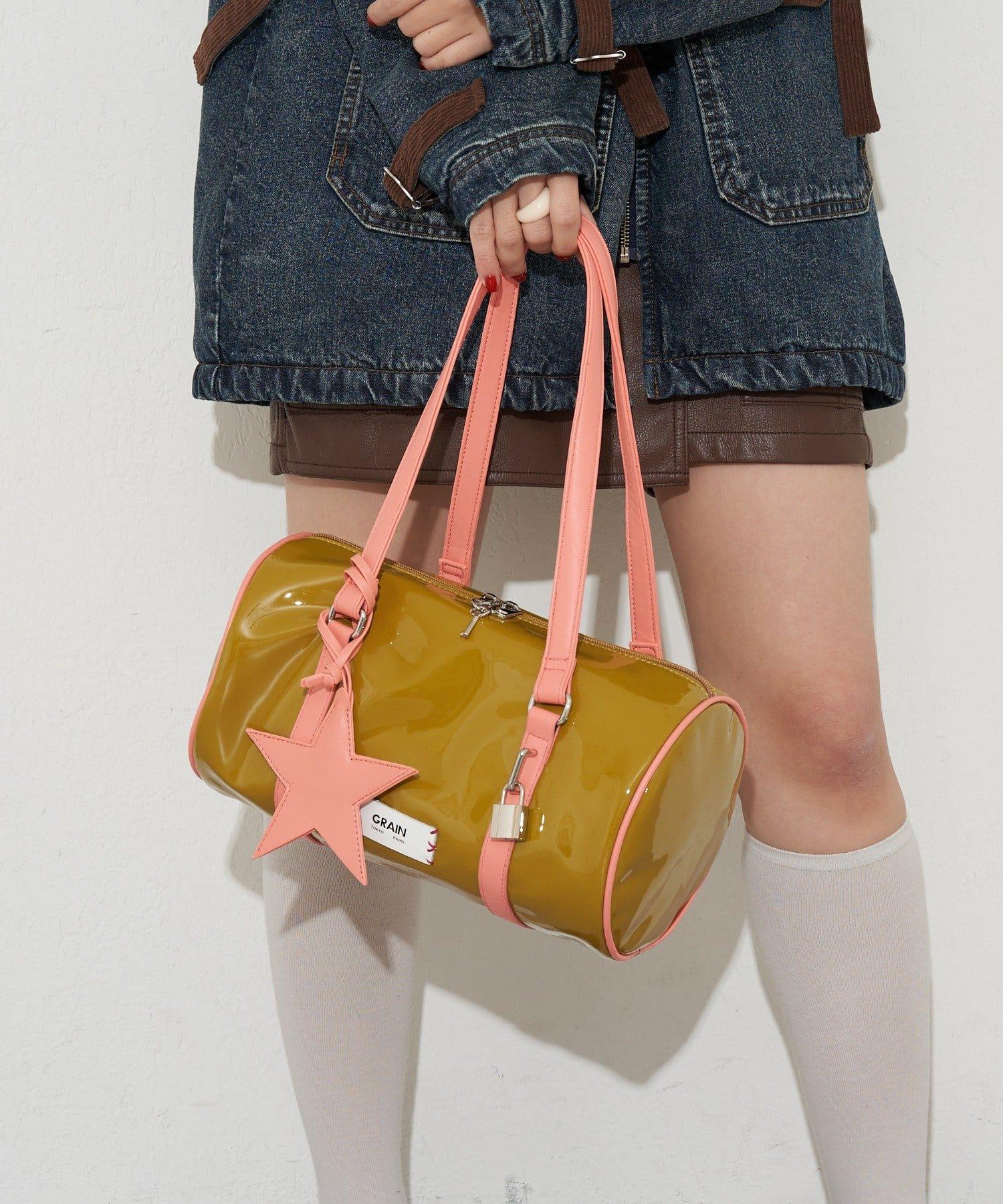 【GRAIN/グレイン】帶星形掛飾漆皮圓筒波士頓包