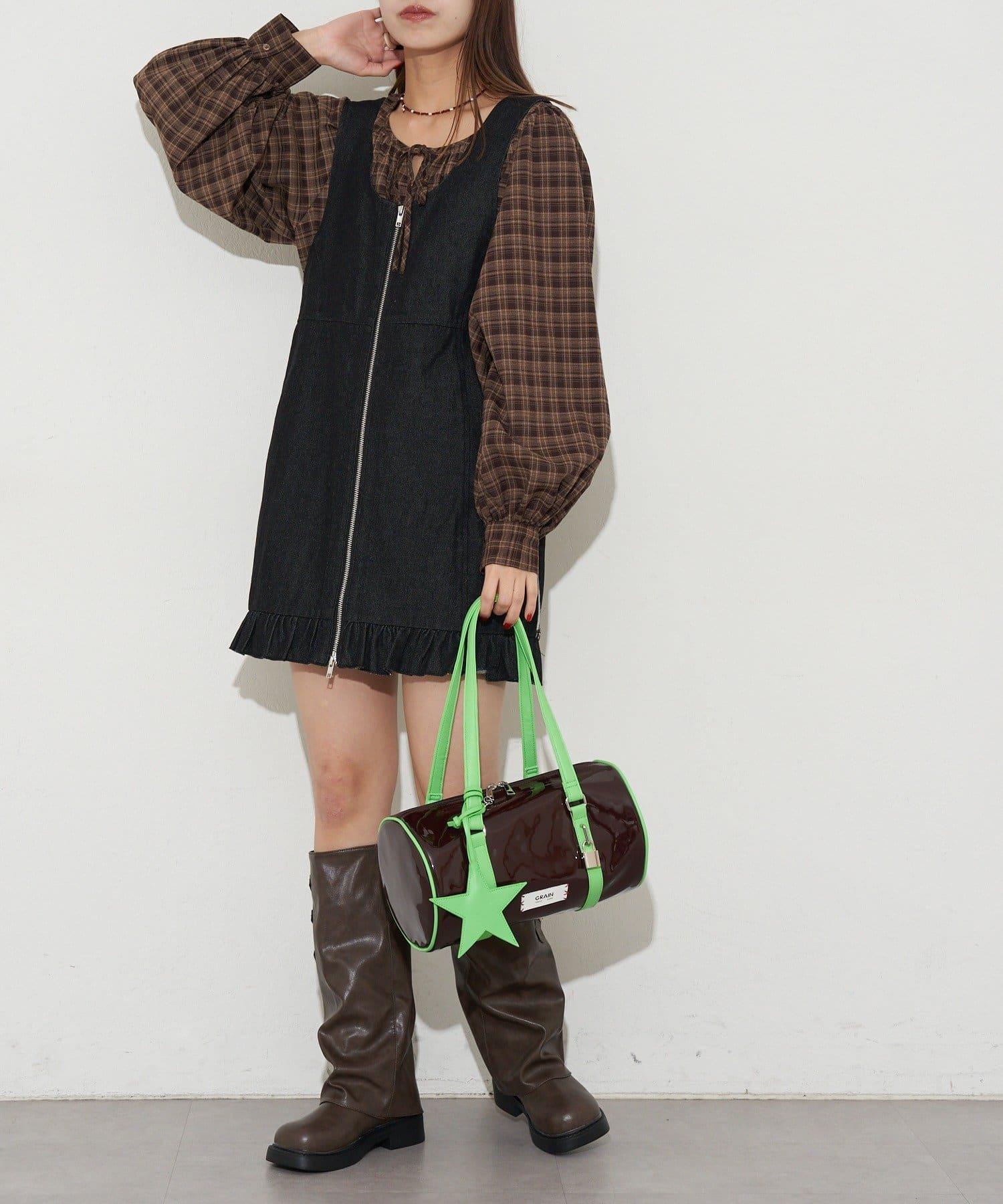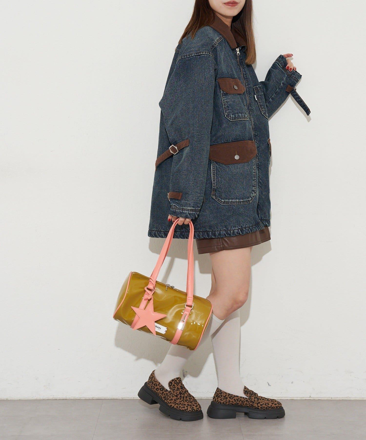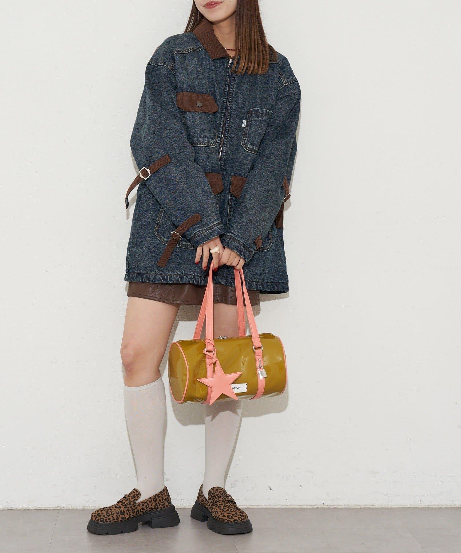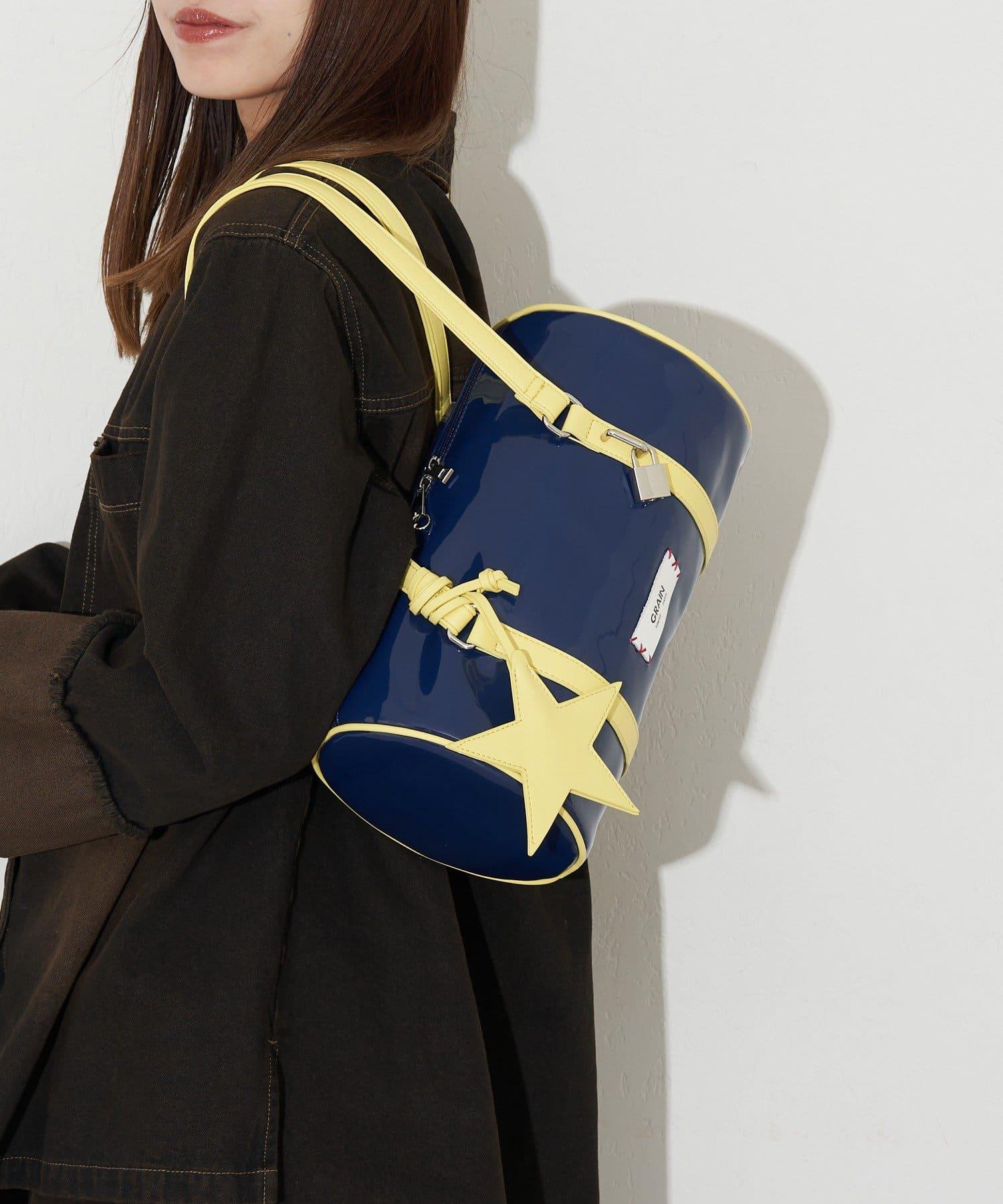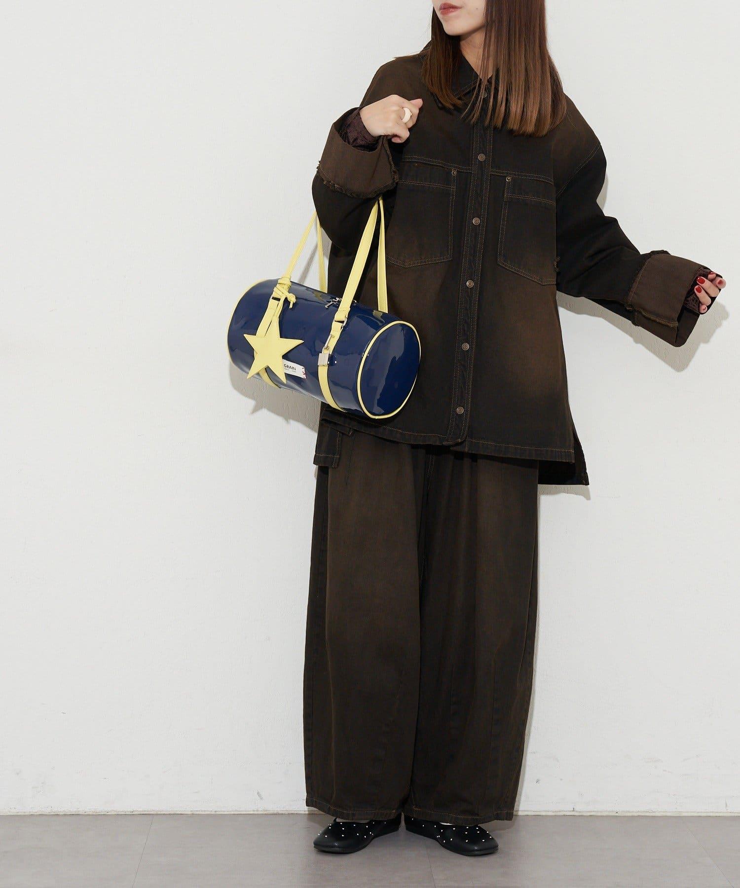 【GRAIN/グレイン】帶星形掛飾漆皮圓筒波士頓包
