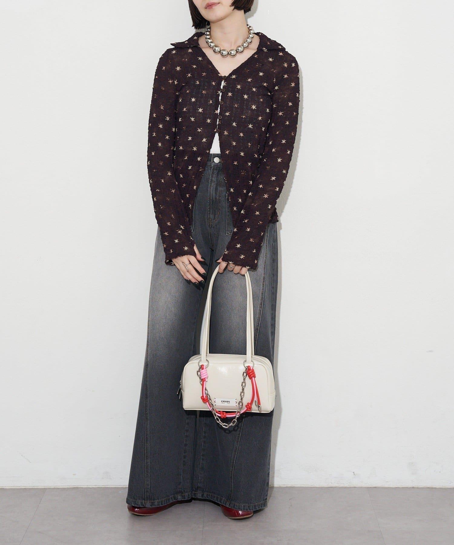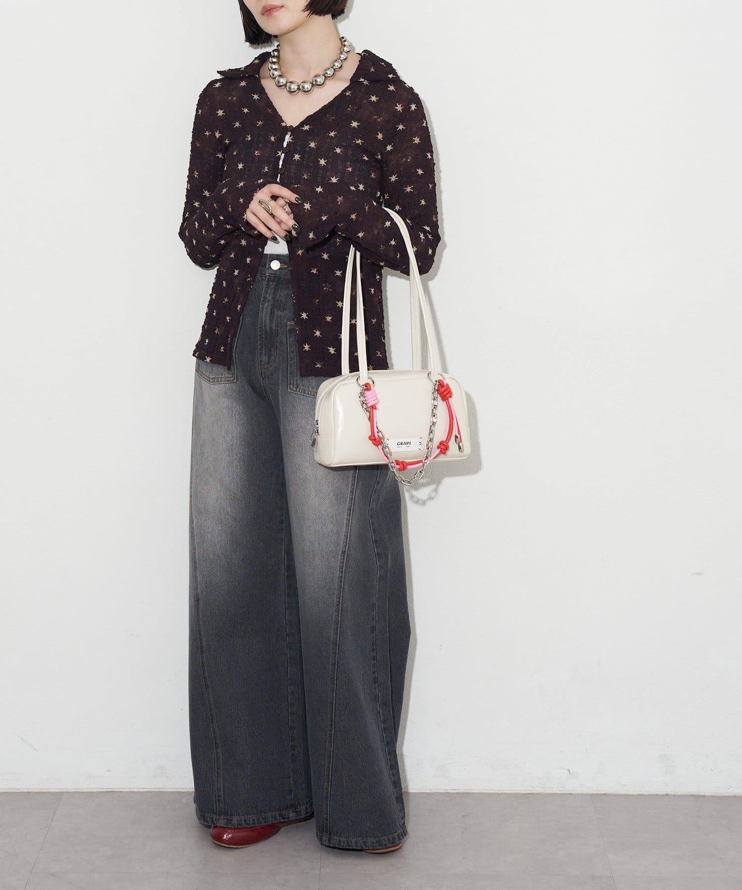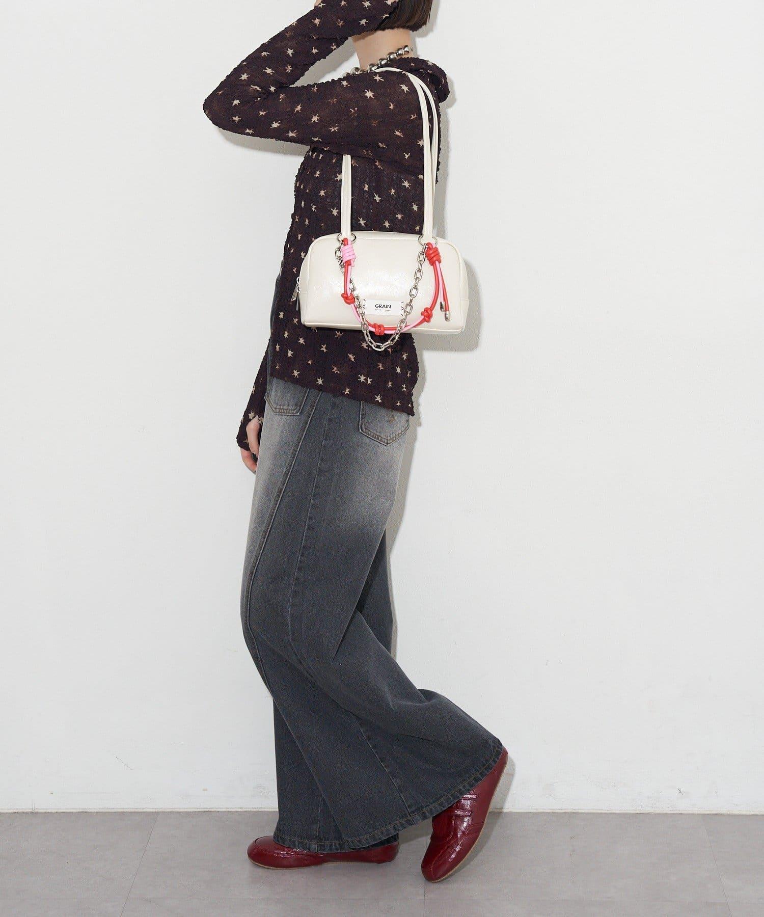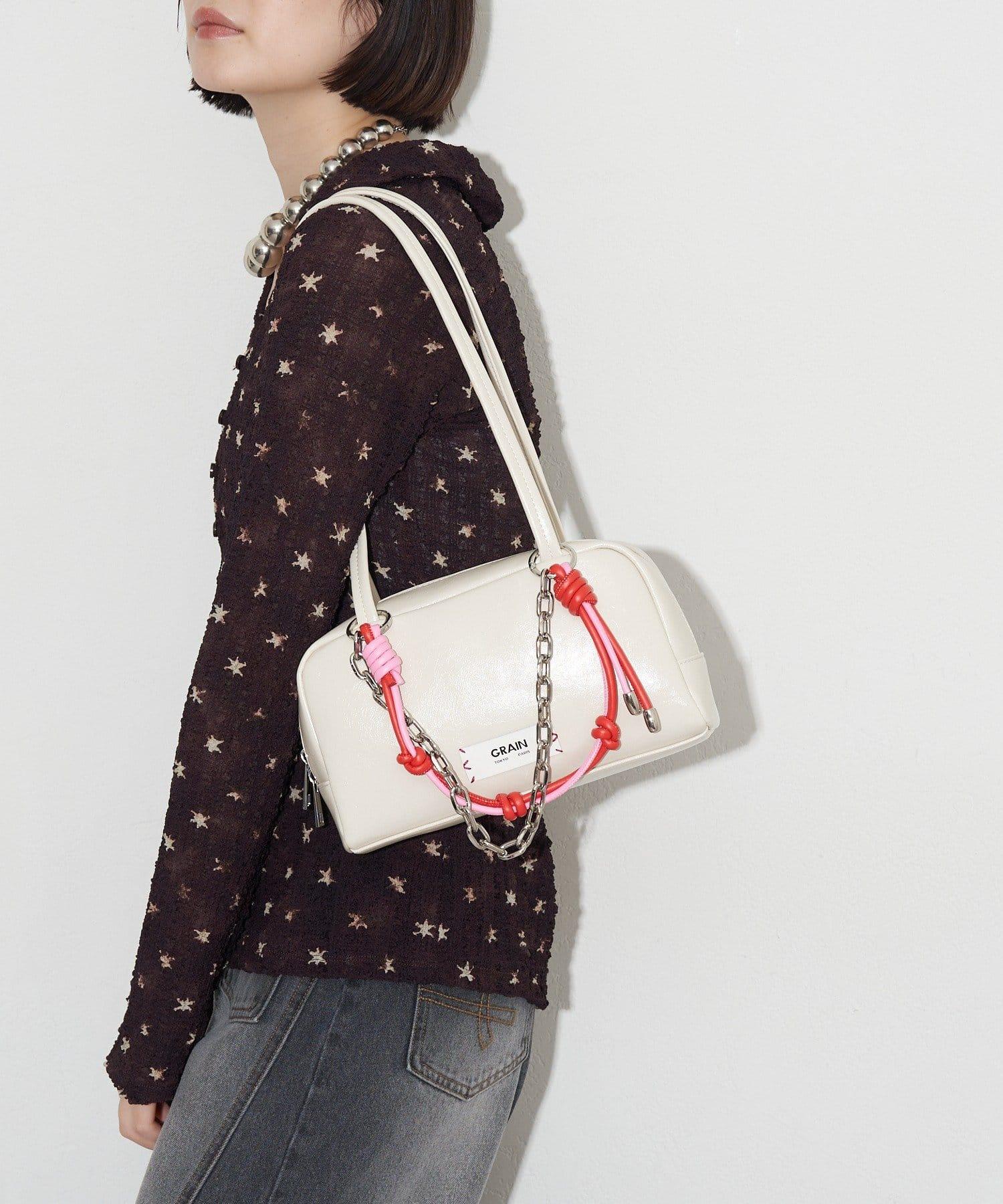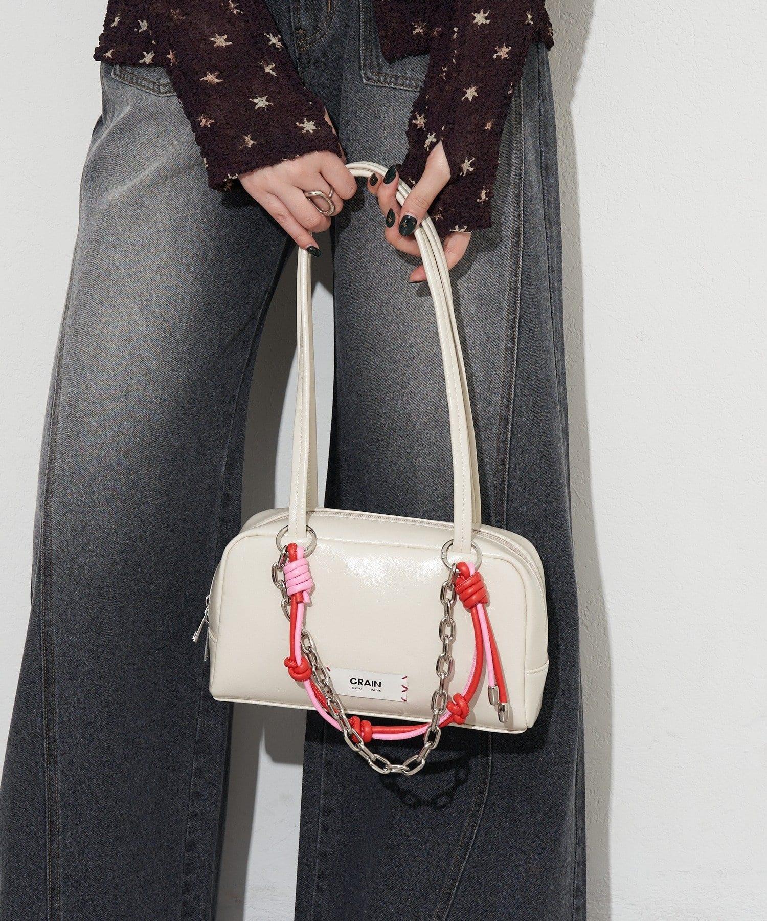 前衛的鏈條和彩色編碼繩的組合使這款波士頓包引人注目。