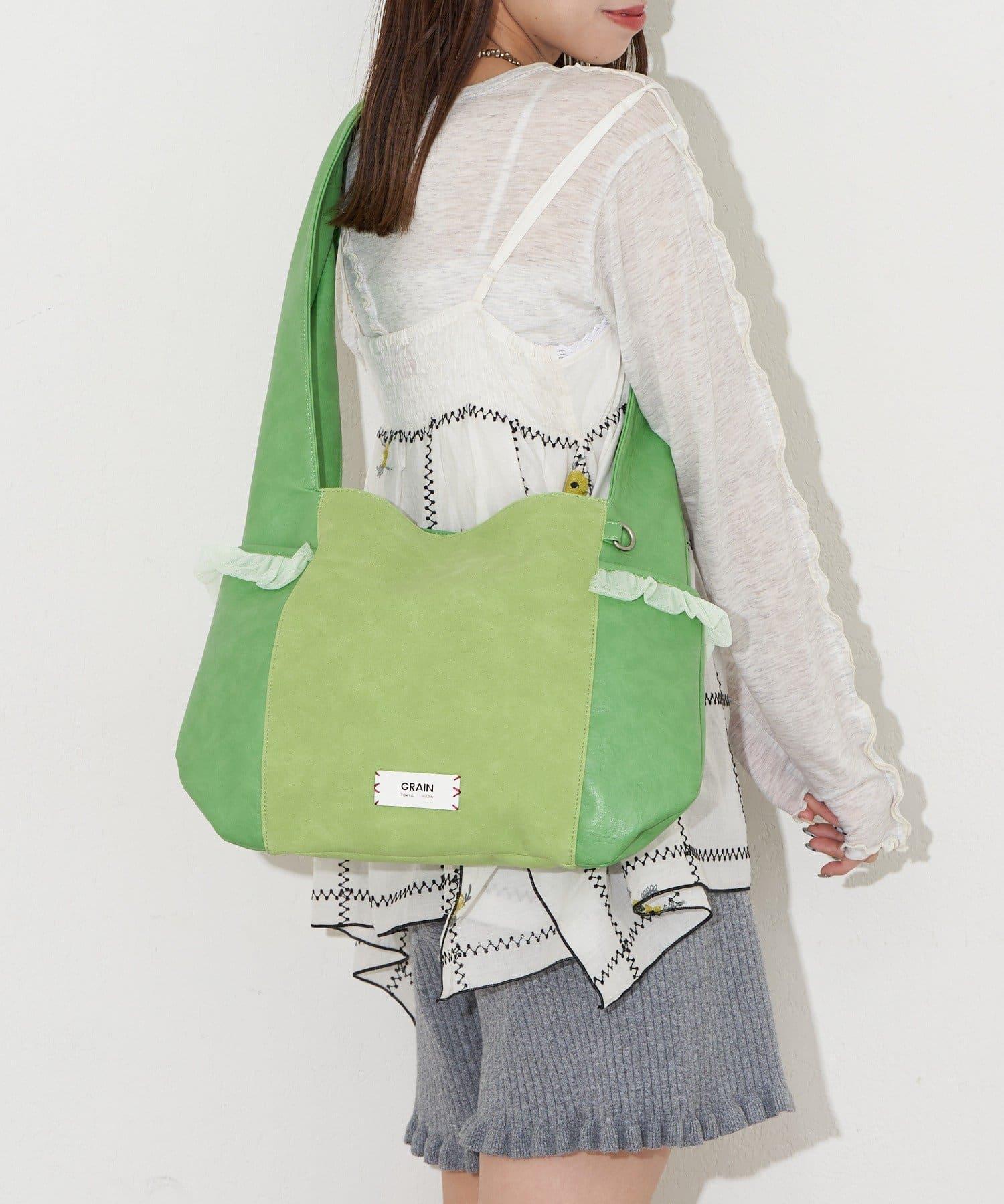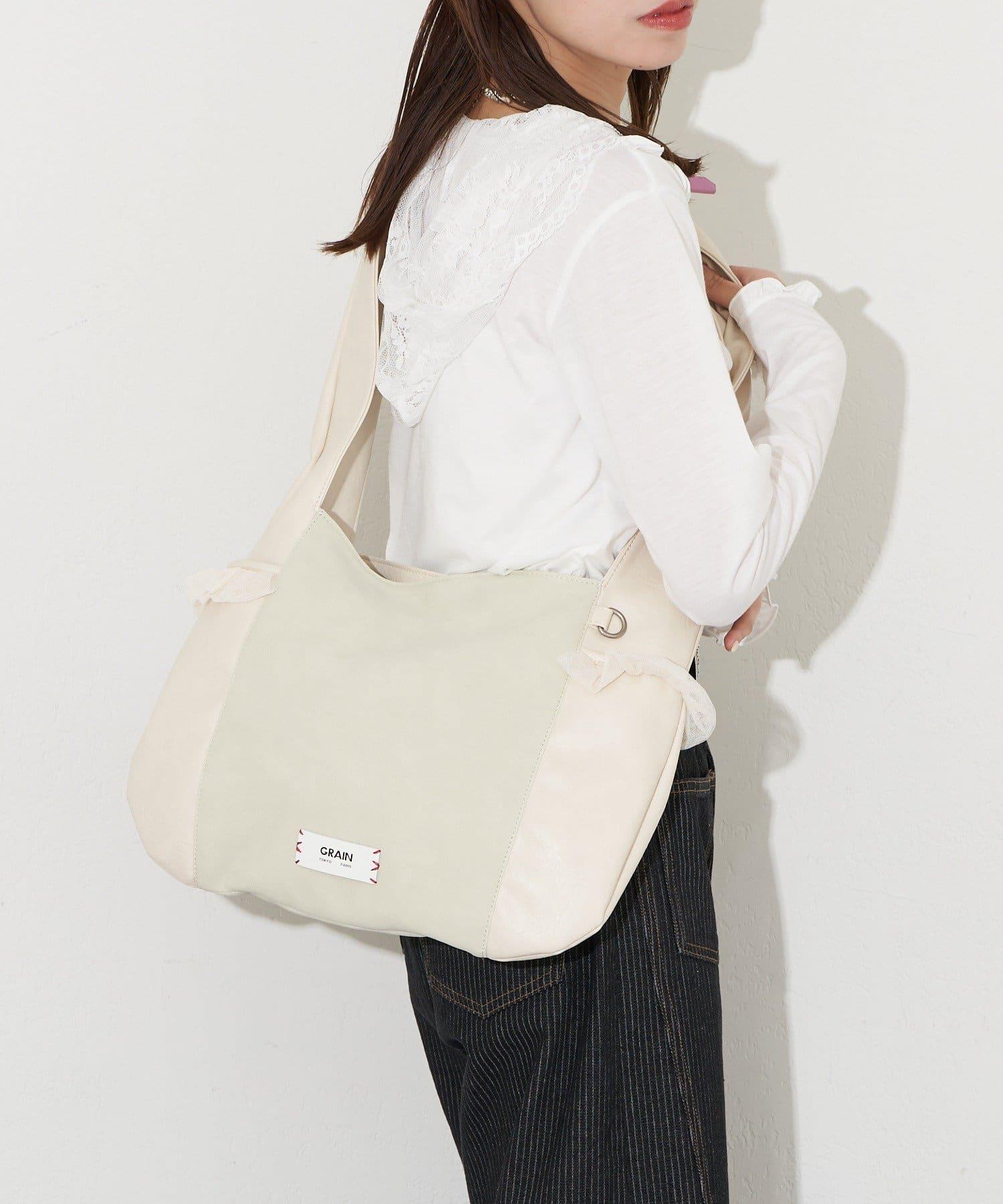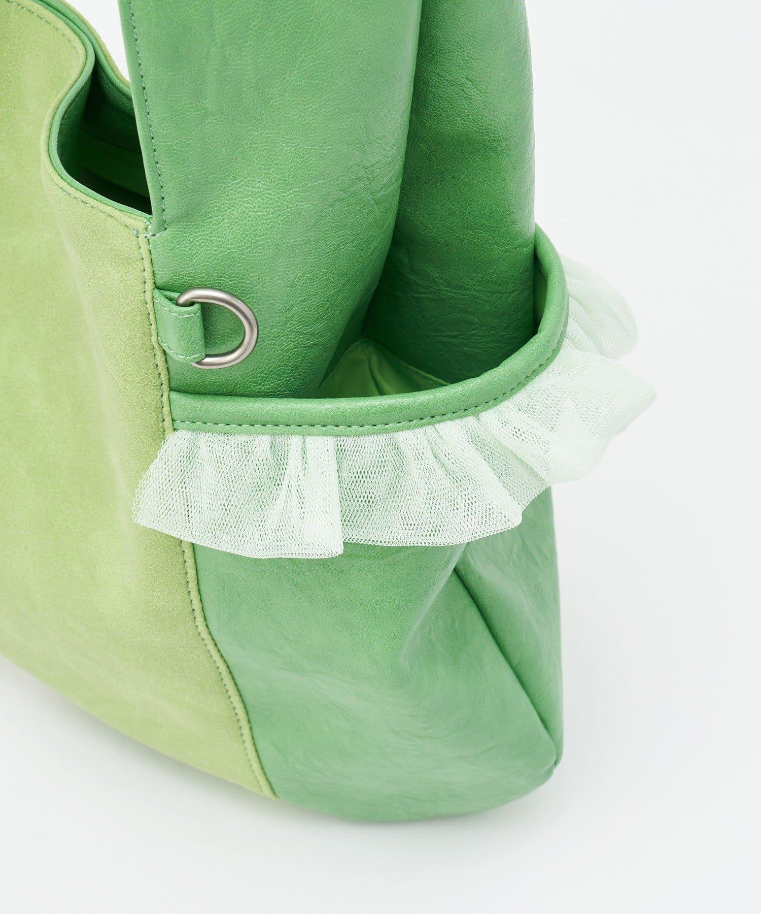 GRAIN/グレイン 麂皮拼接網紗托特包
