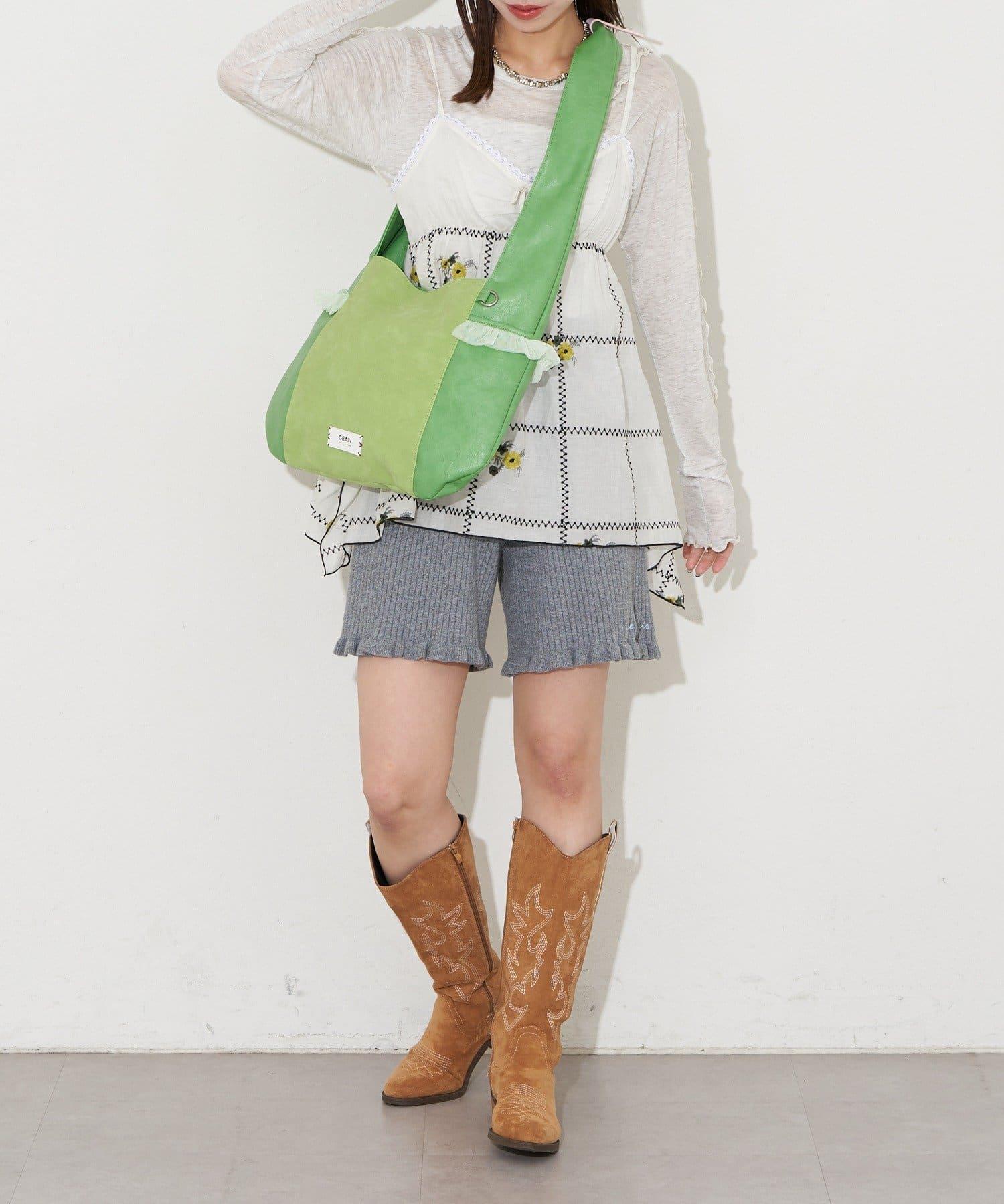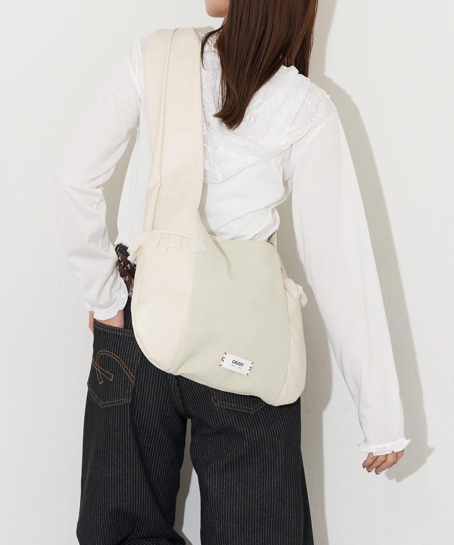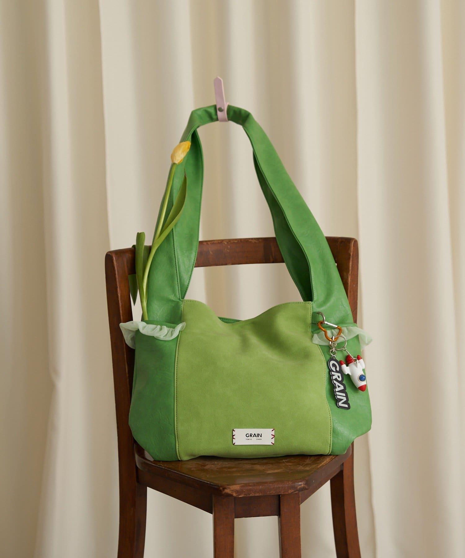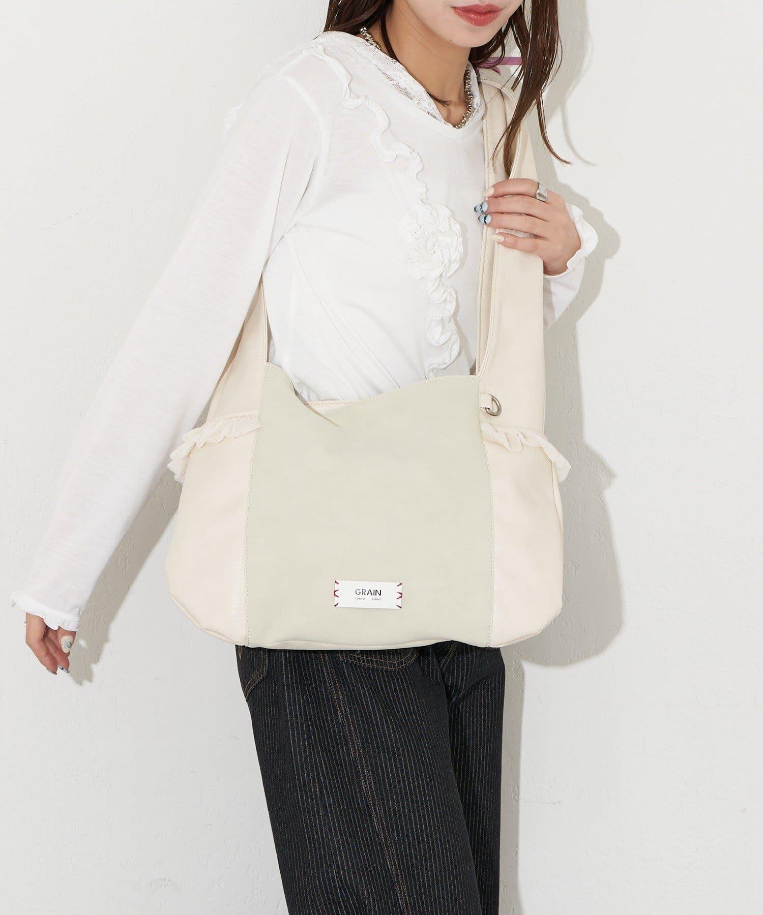 GRAIN/グレイン 麂皮拼接網紗托特包