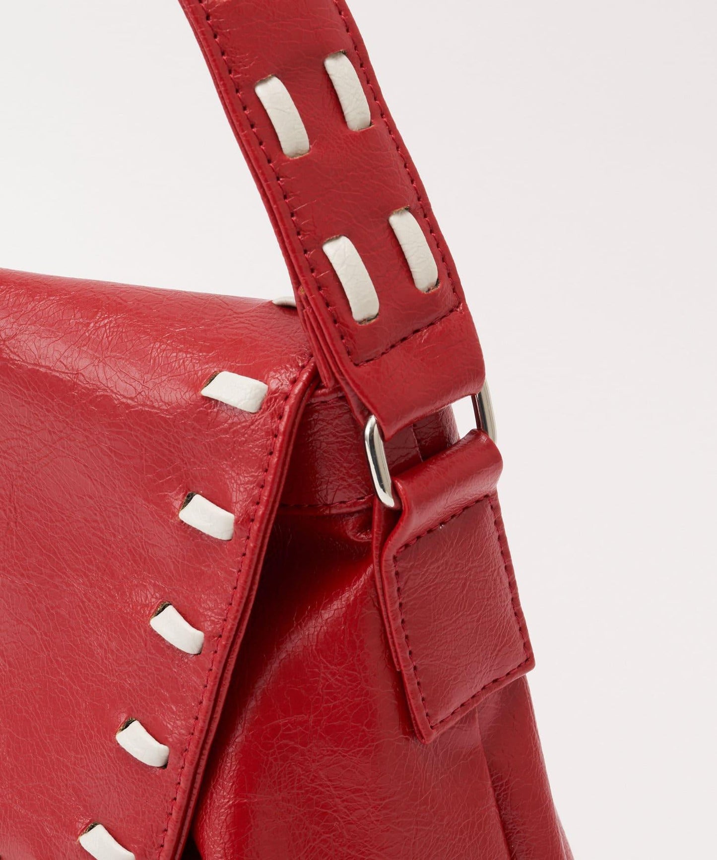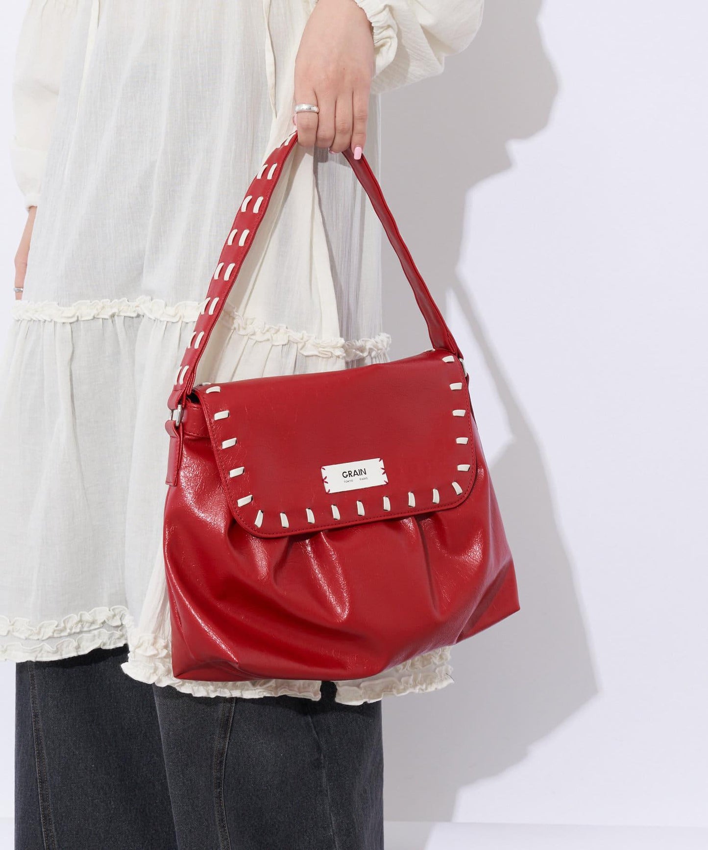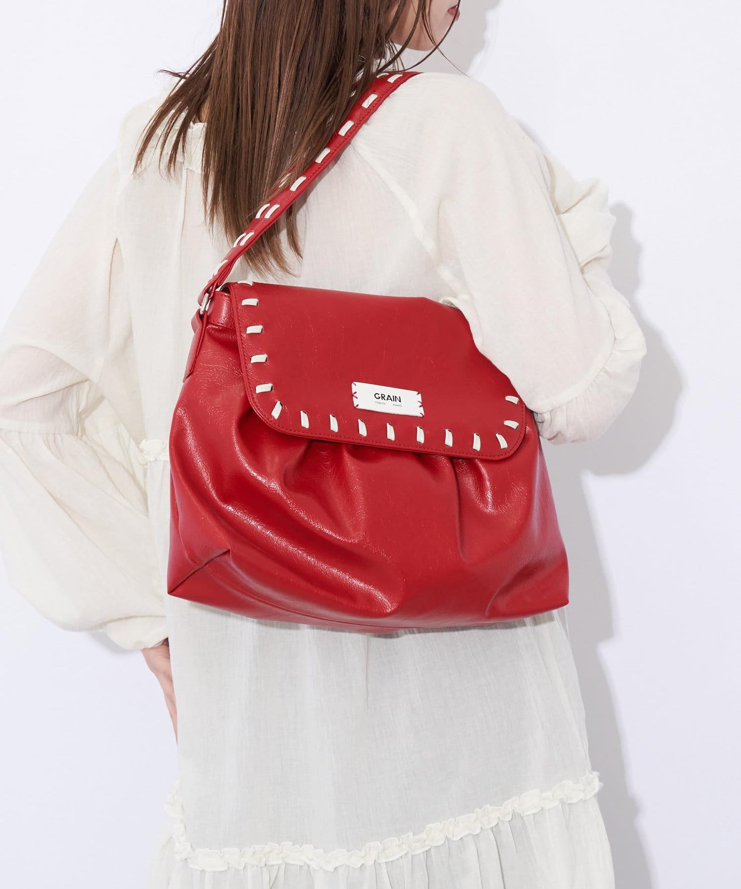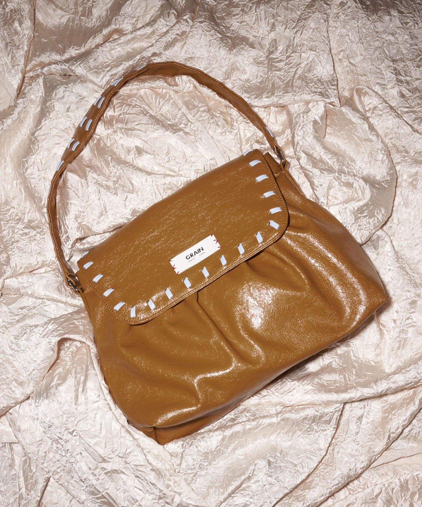 光亮的仿皮材質上採用了大膽的縫線設計,給人一種懷舊的感覺。