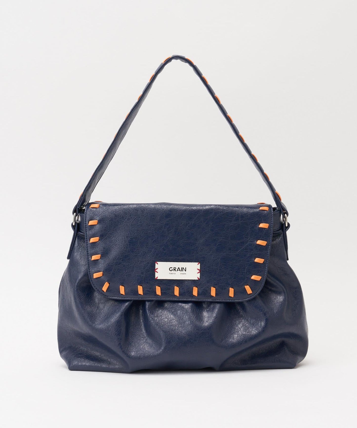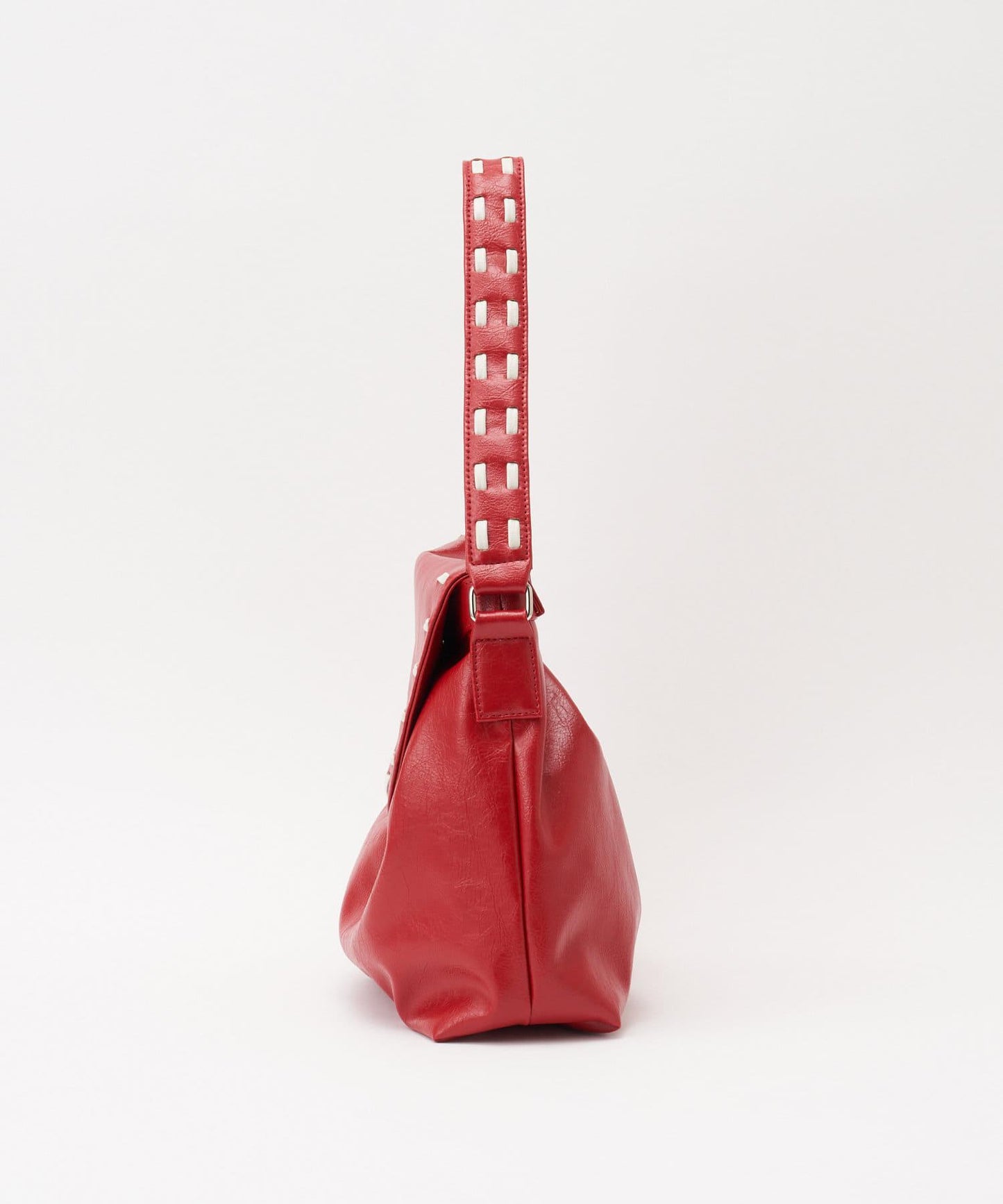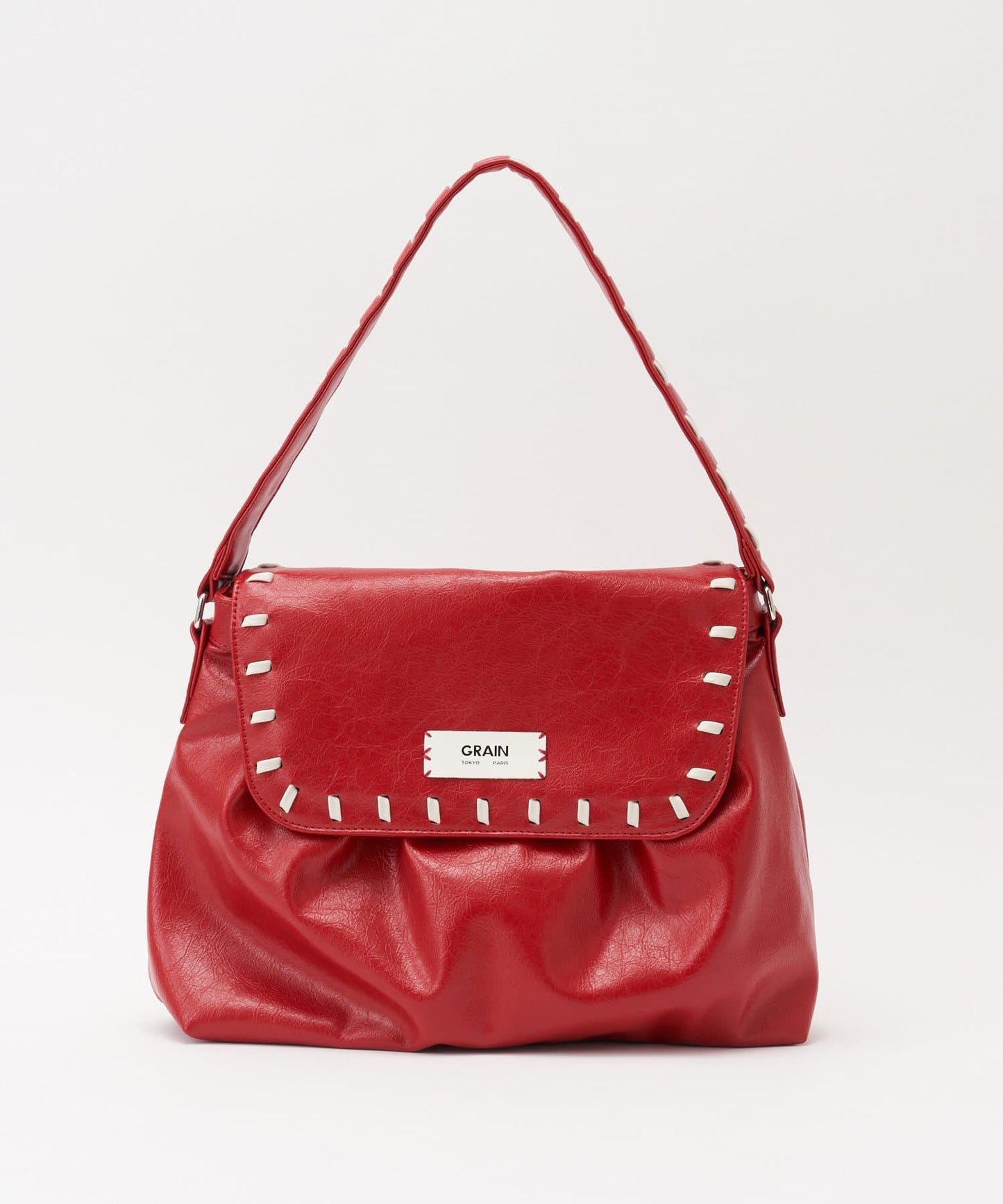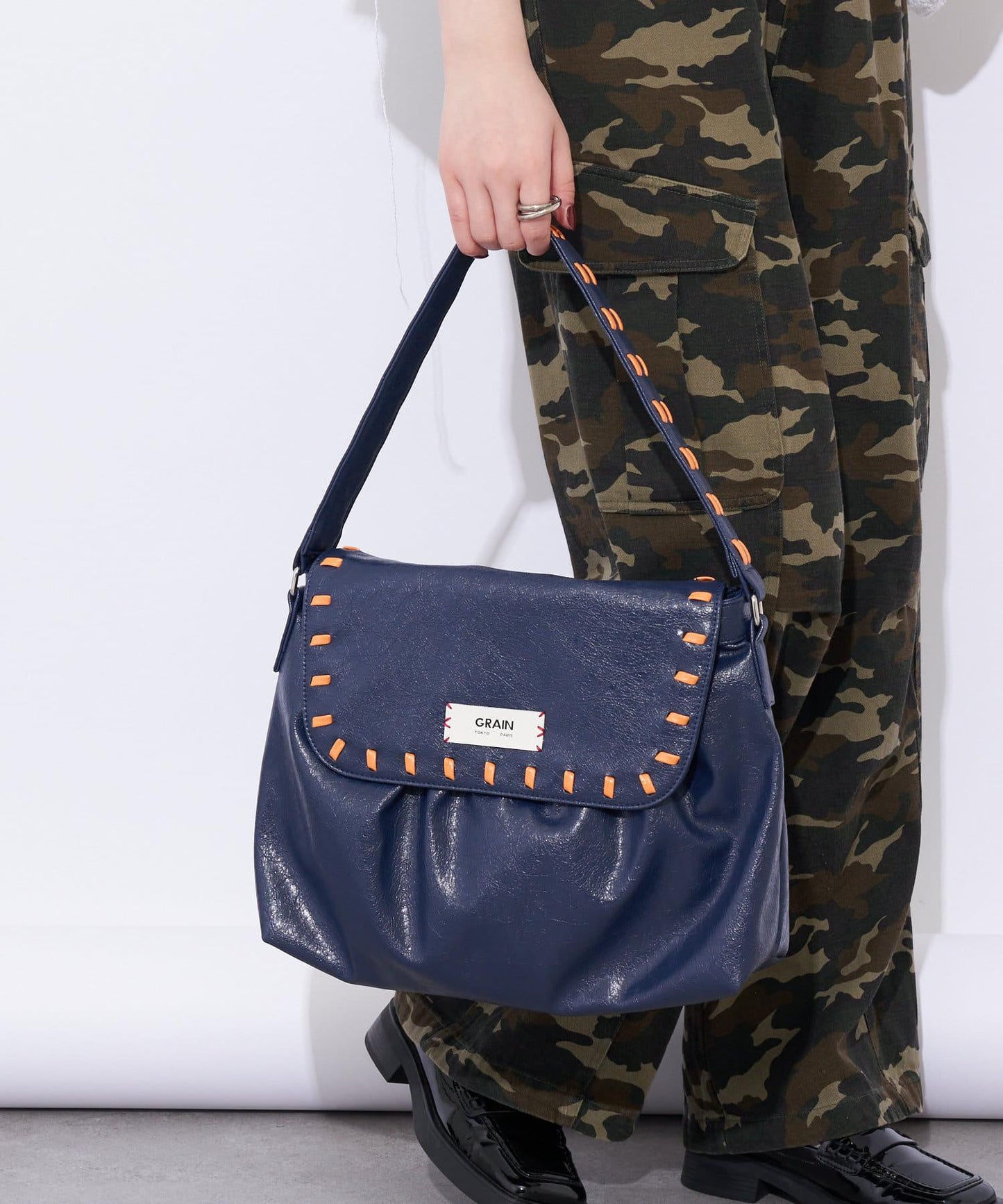 光亮的仿皮材質上採用了大膽的縫線設計,給人一種懷舊的感覺。