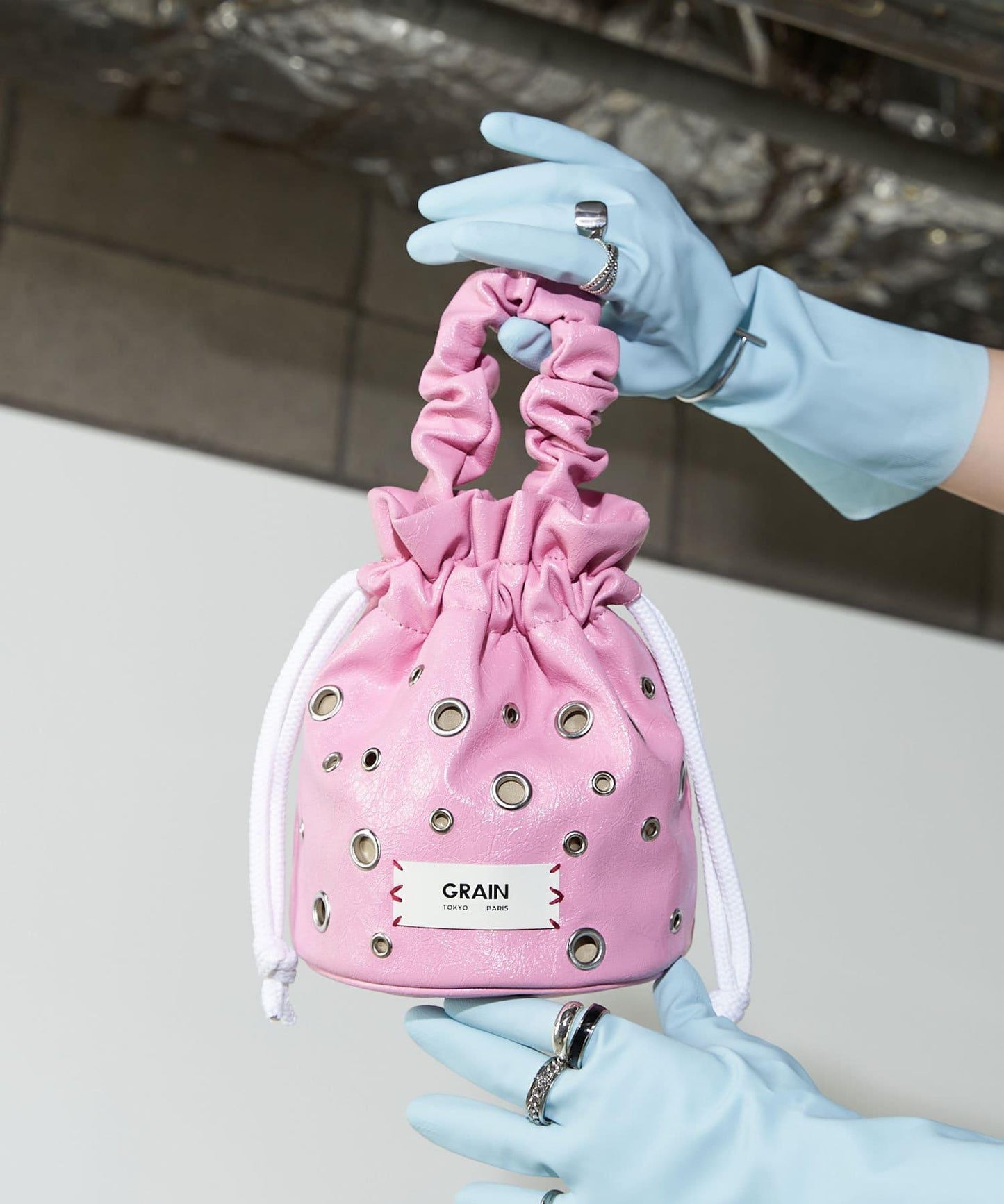 【GRAIN/穀物】鉚釘褶皺提手束口圓形包