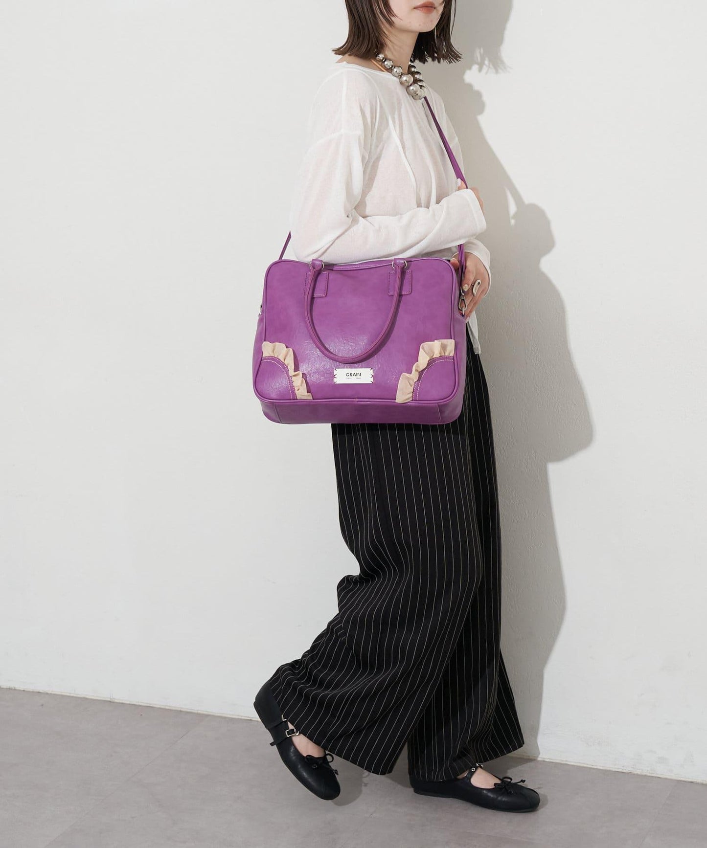 一款褶邊波士頓包,空間充裕,可愛而安全。