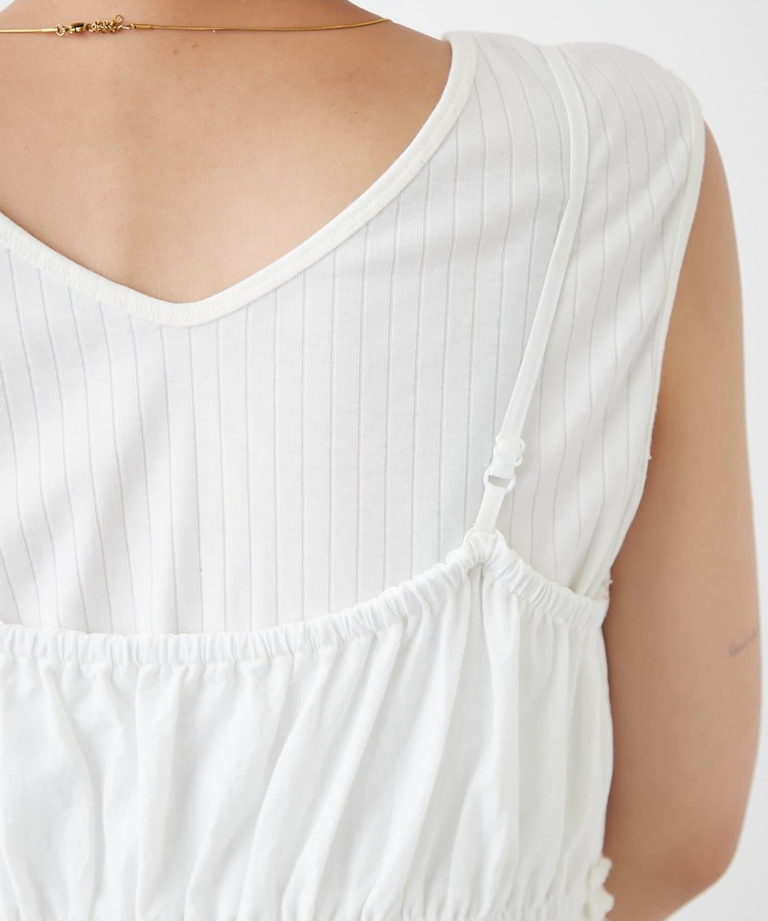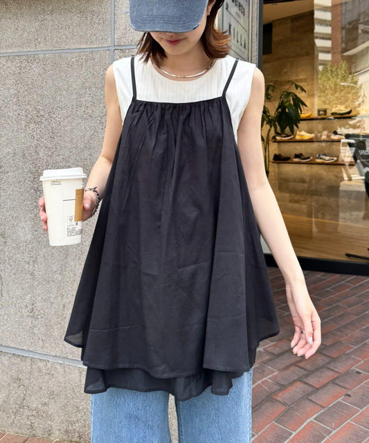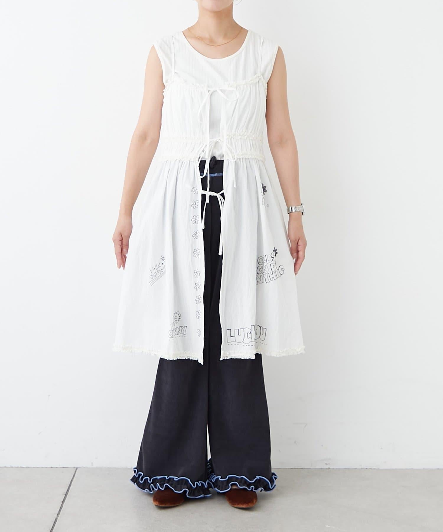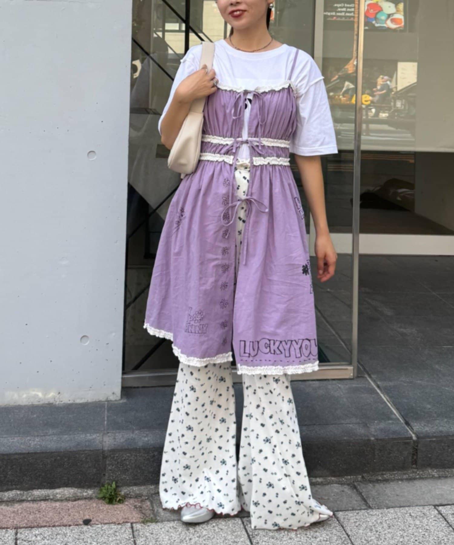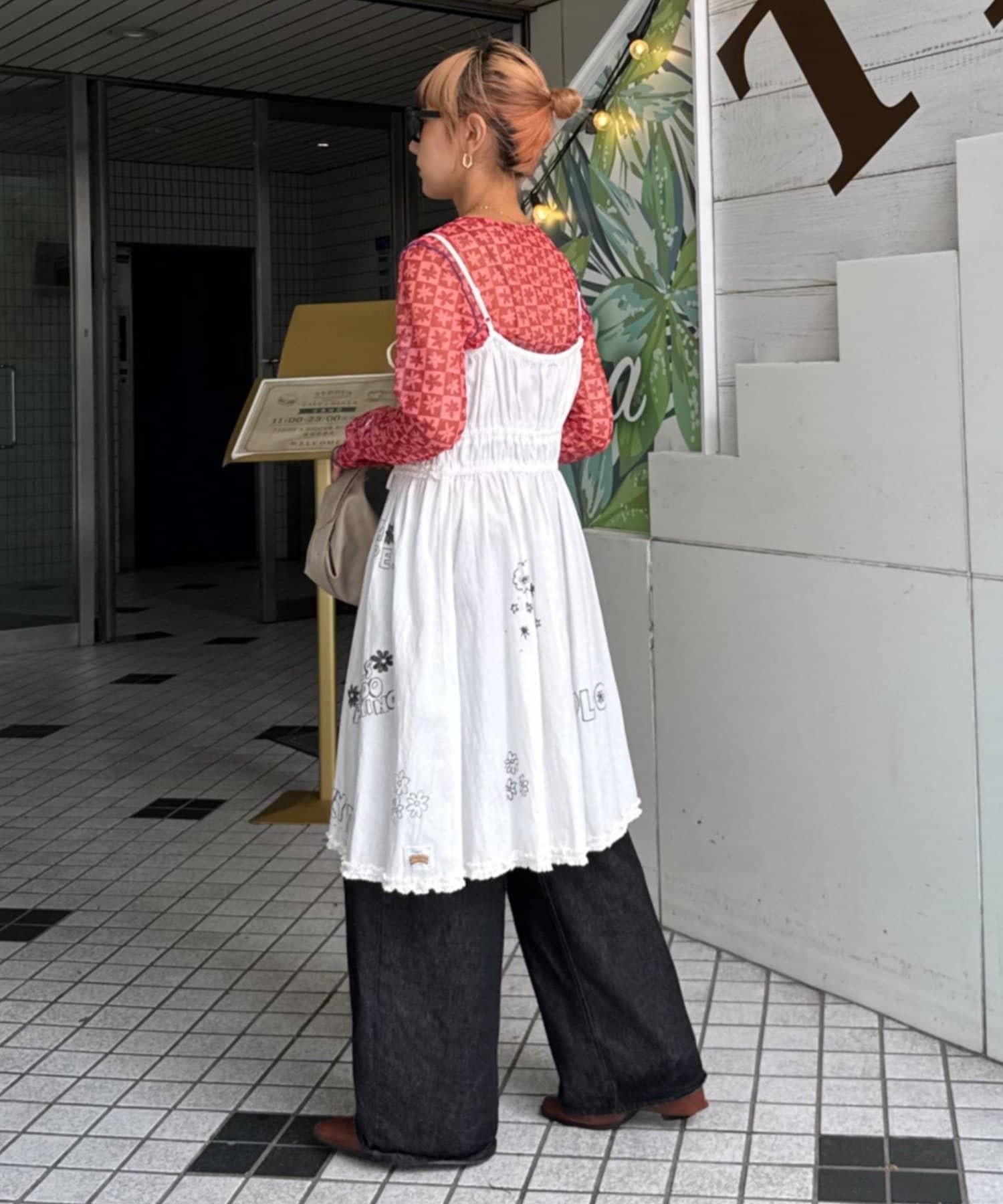 前面用絲帶繫住,因此可以通過疊穿來展現內搭和下裝,享受多種穿著風格。