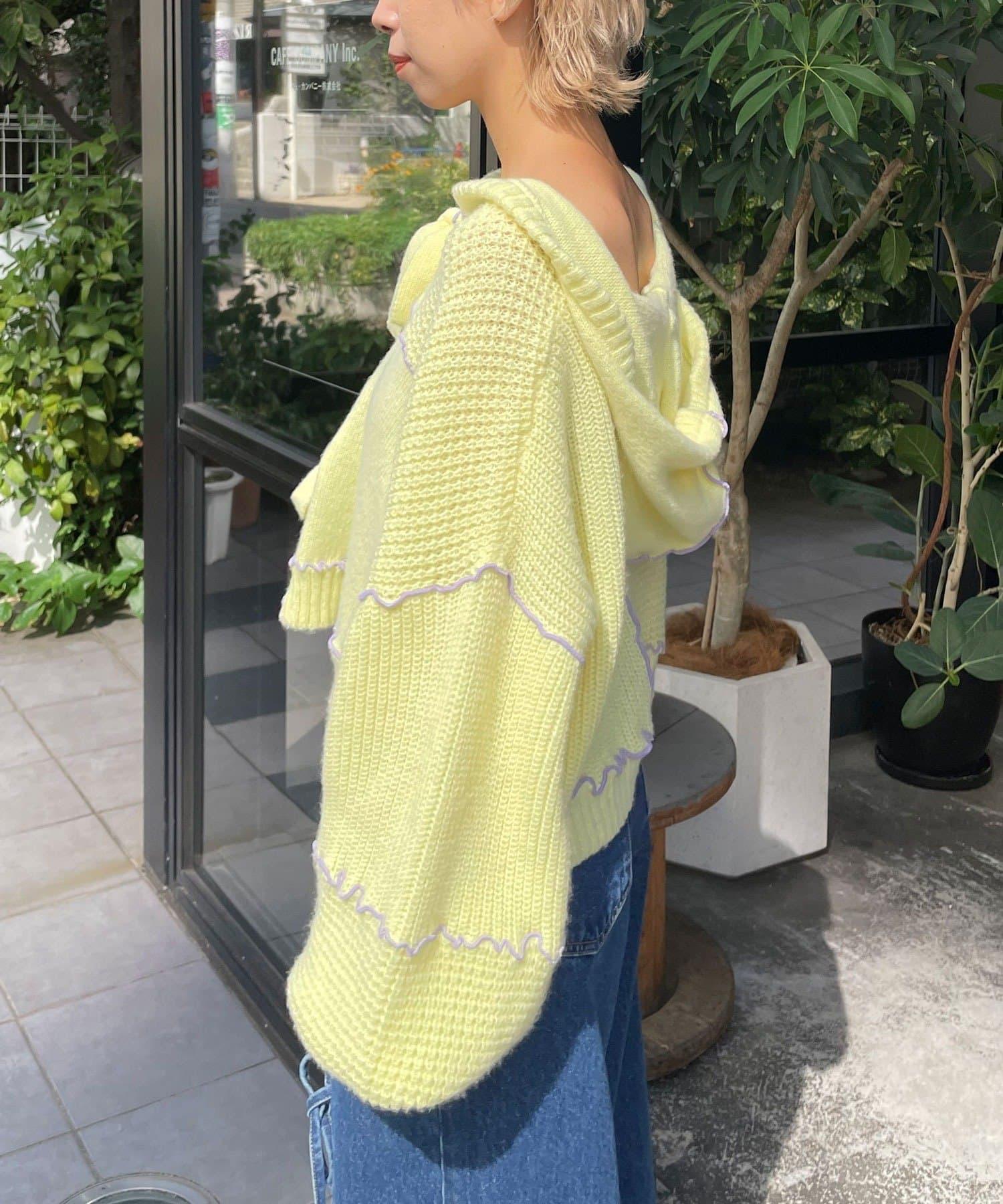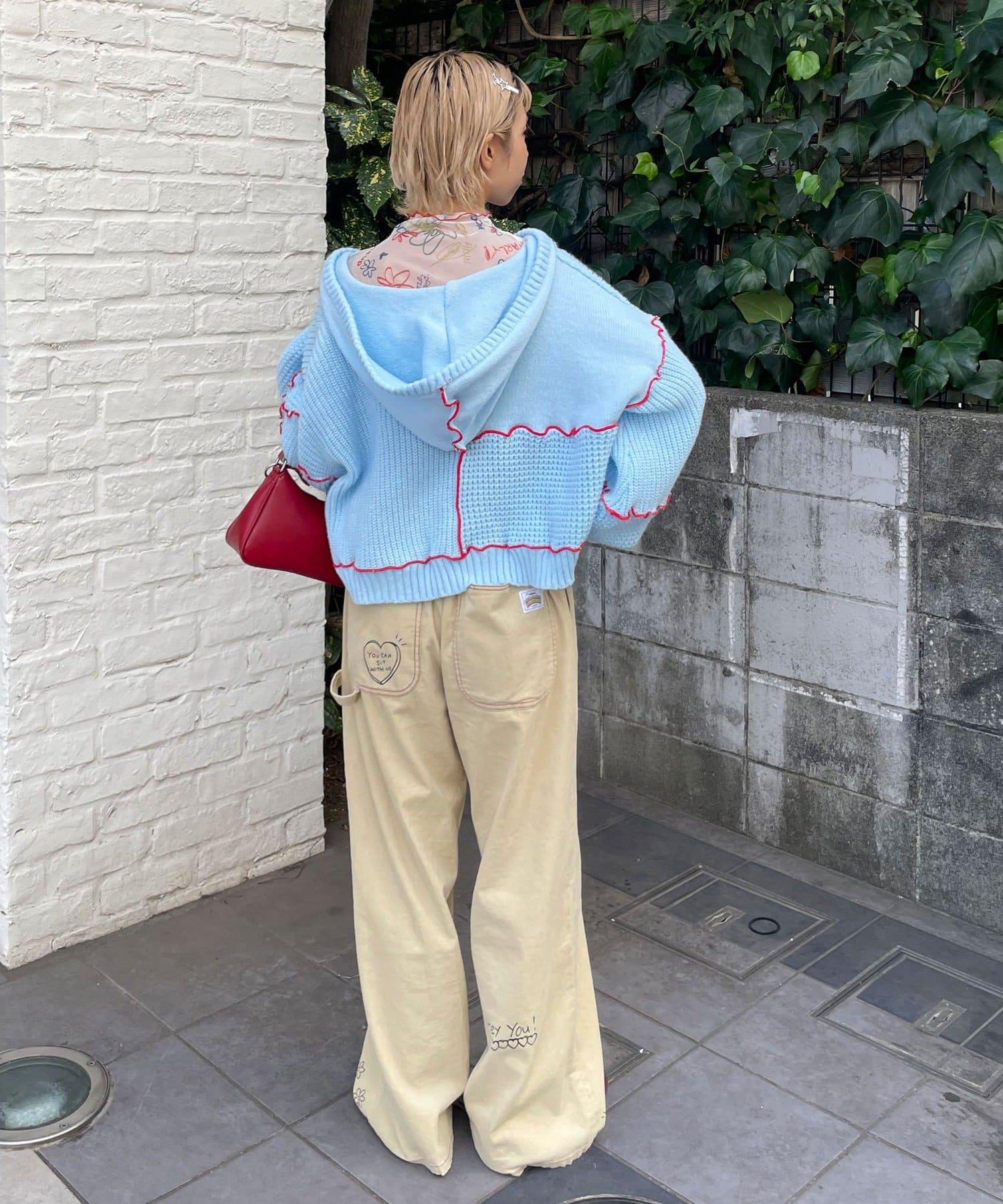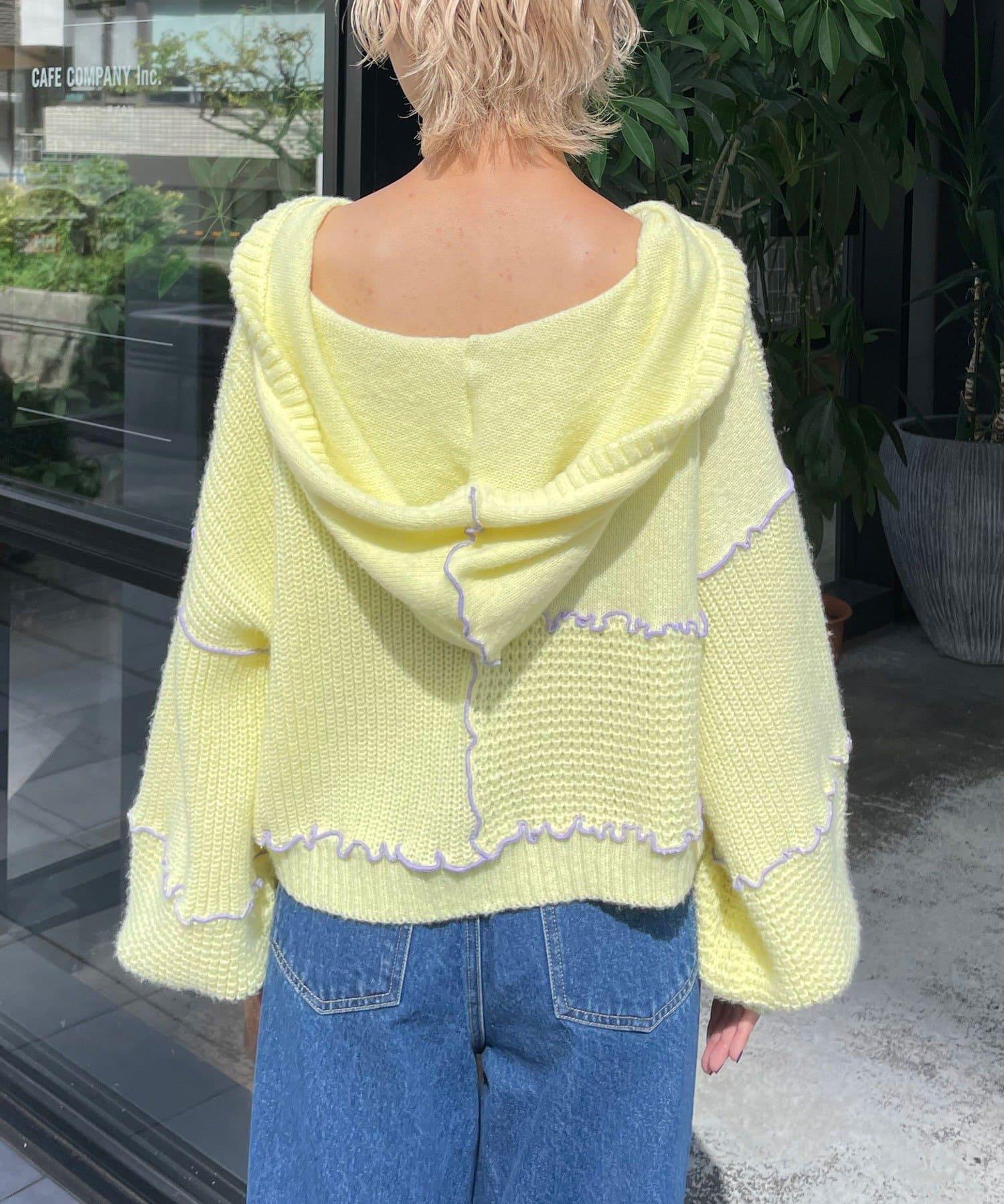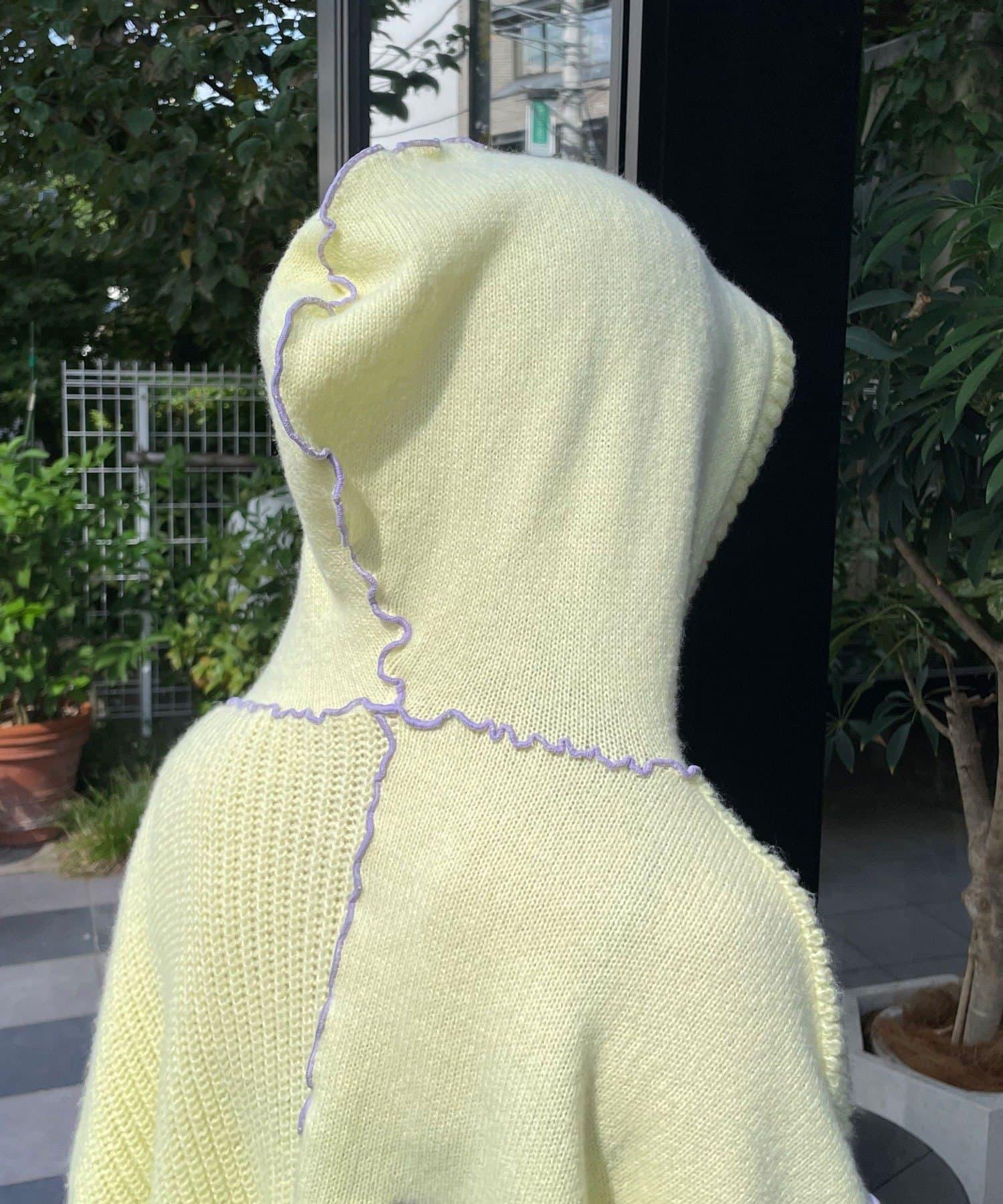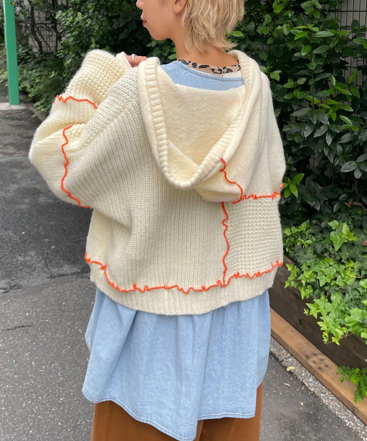 拼接式連帽開衫,色彩搭配中的圓潤設計十分搶眼。