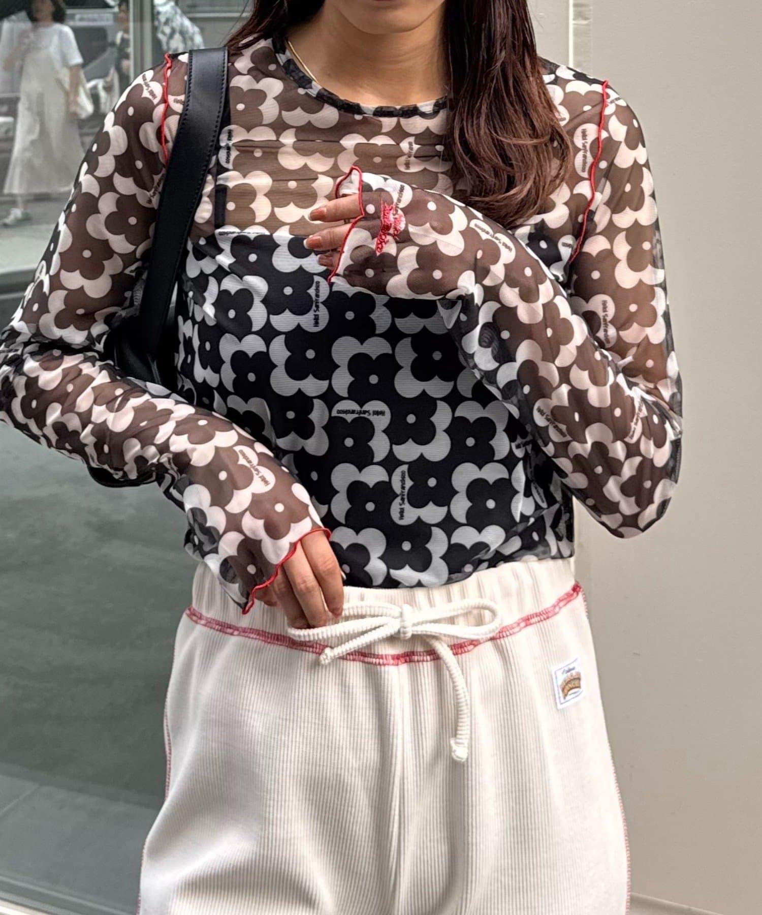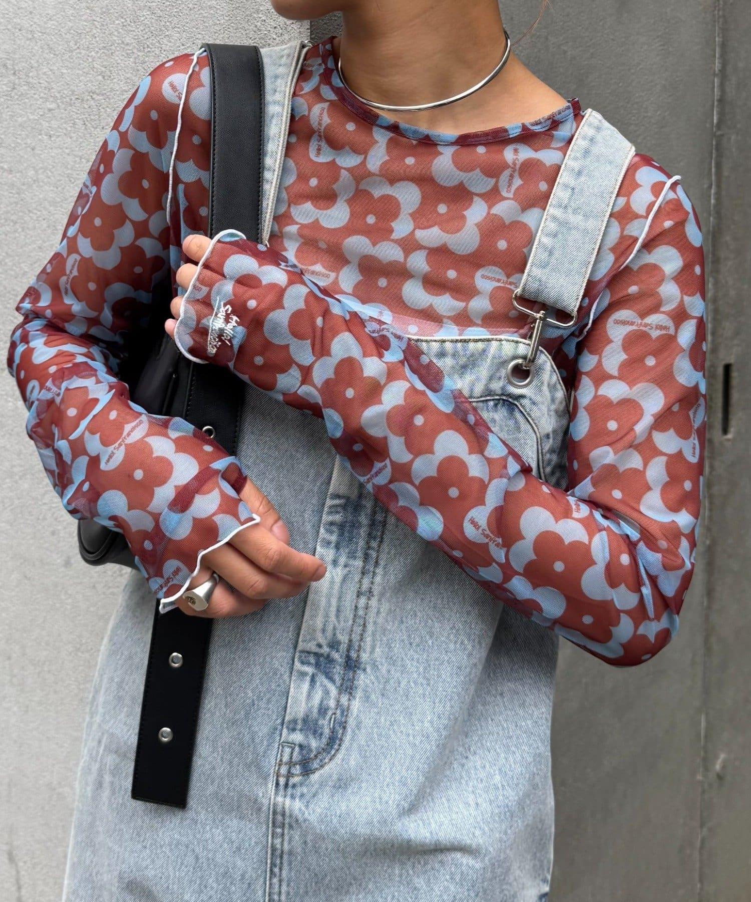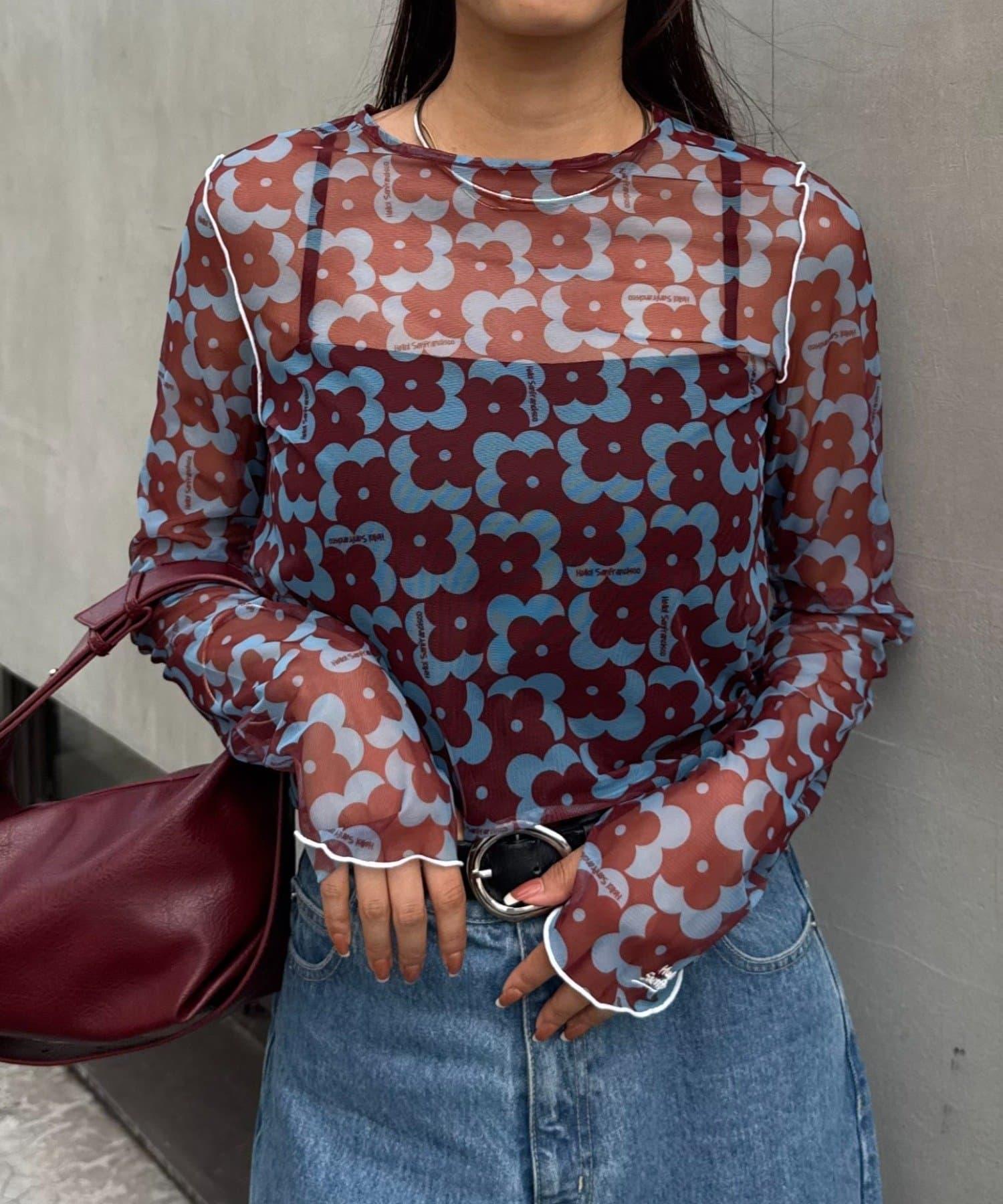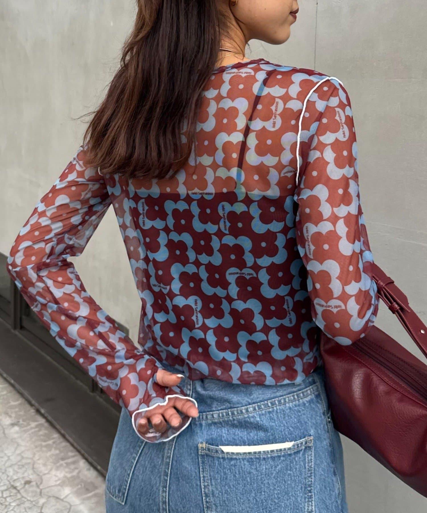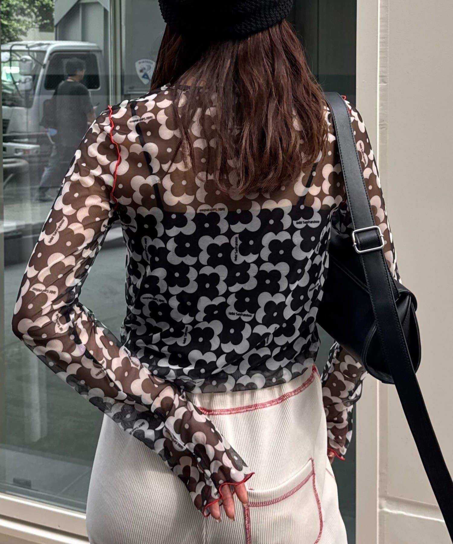 帶有可愛花朵圖案的薄紗上衣,讓層次搭配充滿樂趣。